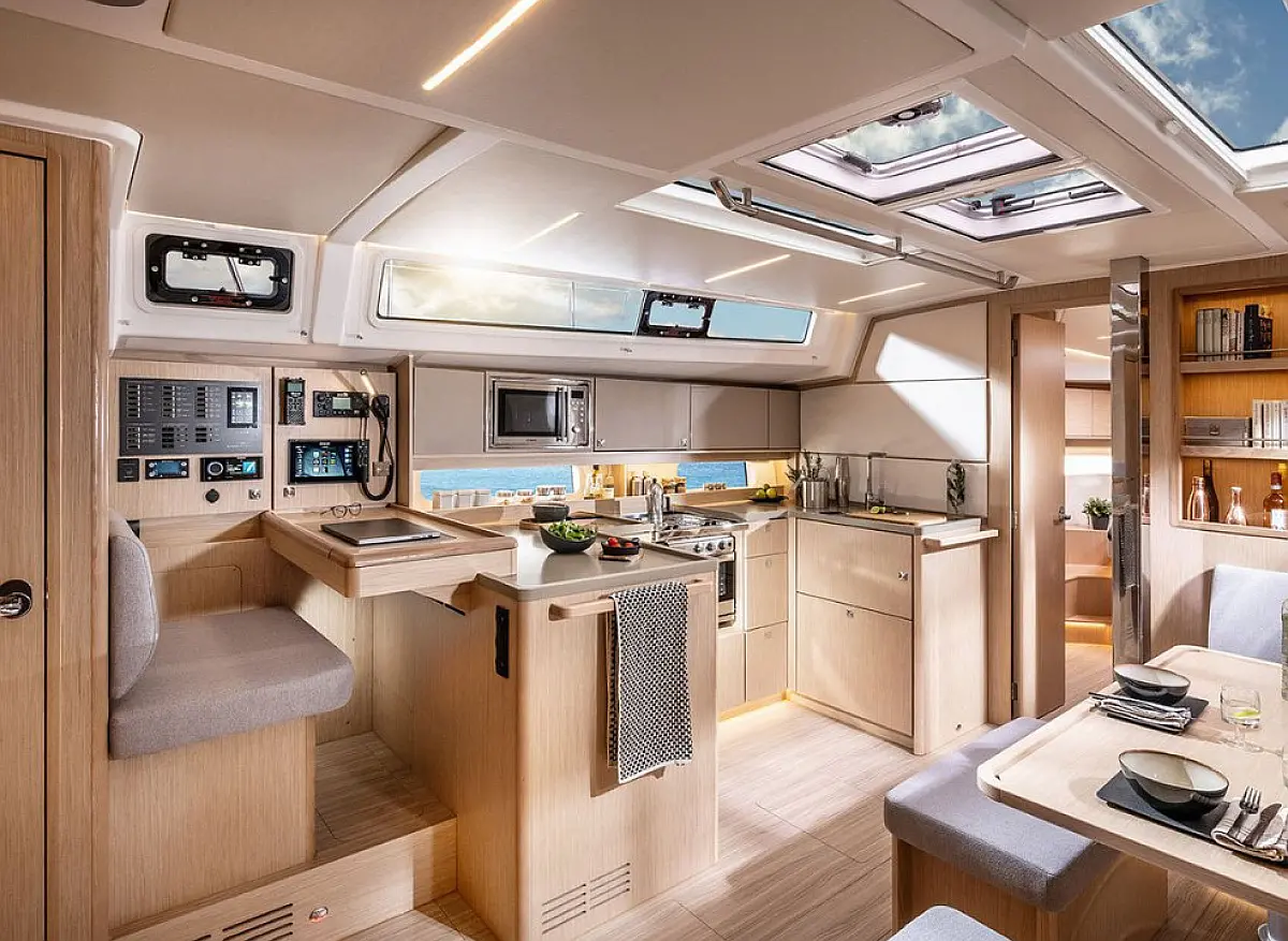 Altavoces exteriores, WC eléctrico, Depósito de aguas residuales, Bímini, Cockpit cushions, Nevera, Parrilla en carlinga, Embarcación auxiliar, Capota antirociones, Teak Cockpit, Cafetera, Aire acondicionado, Calefacción, Panel Solar