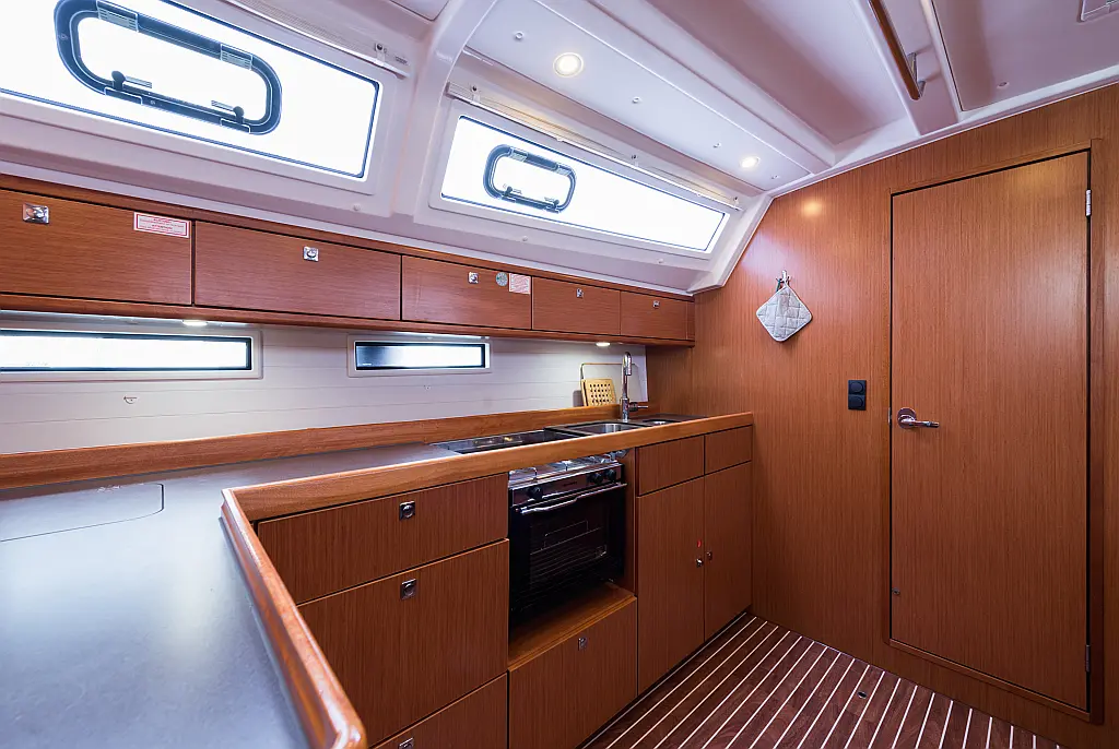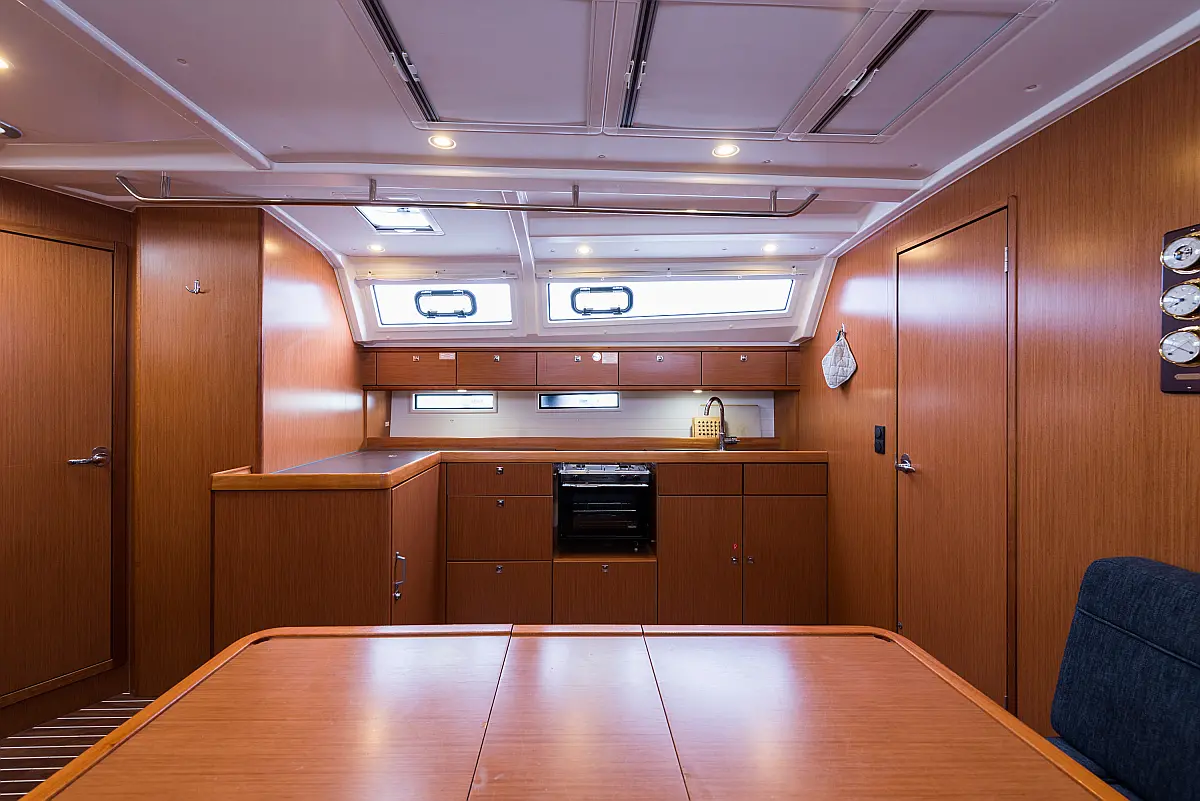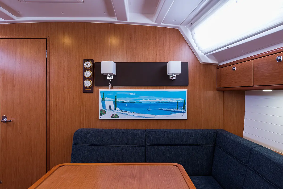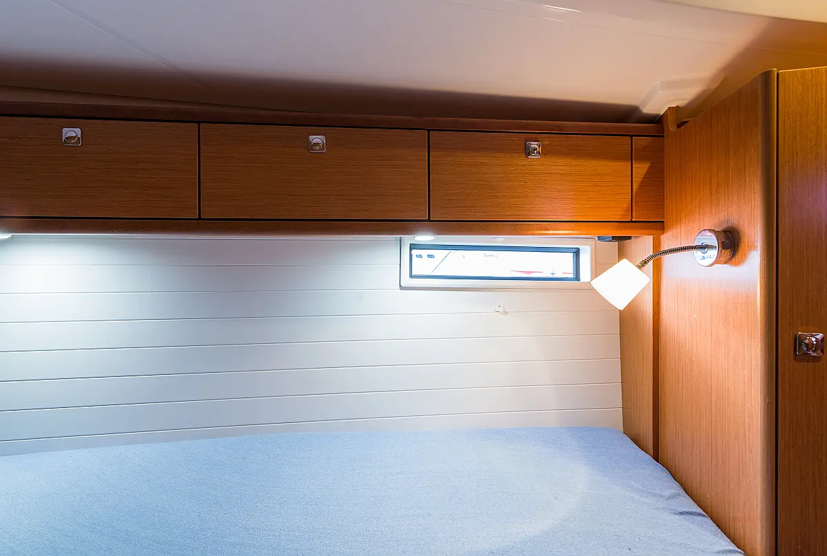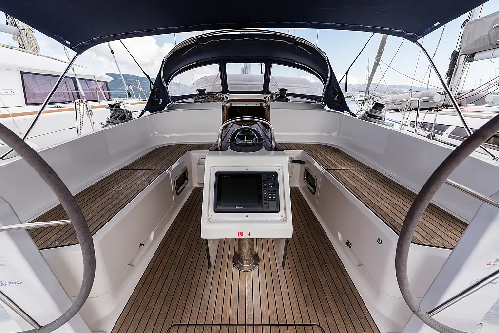 Aire acondicionado, Depósito de aguas residuales, Bímini, Capota antirociones, Embarcación auxiliar, Altavoces exteriores, Winches eléctricos, WC eléctrico, Panel Solar, Teak Cockpit