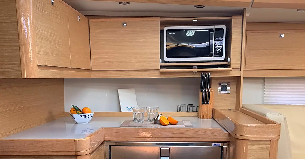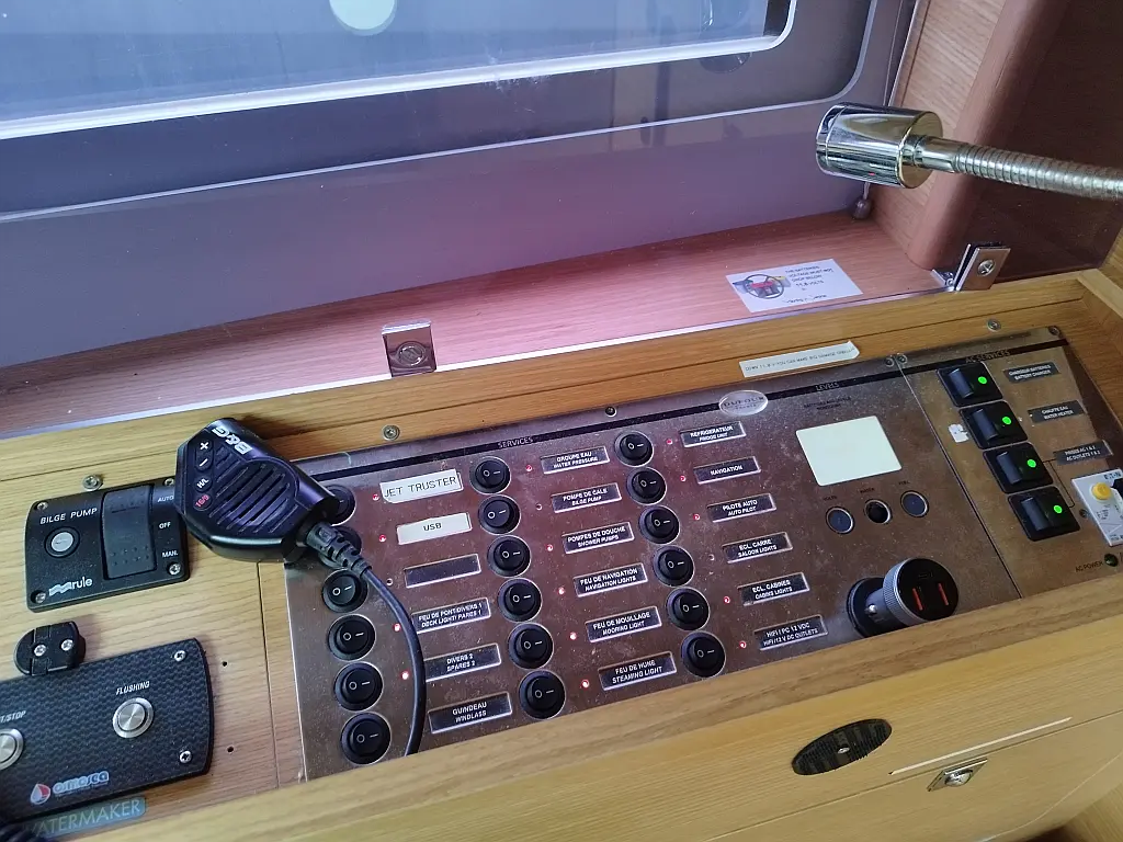 Aire acondicionado, Cockpit cushions, Parrilla en carlinga, Teak Cockpit, WC eléctrico, Wi-Fi e Internet, Desalinizadora, Winches eléctricos, Pasarela hidráulica, Convertidor, Plataforma de baño