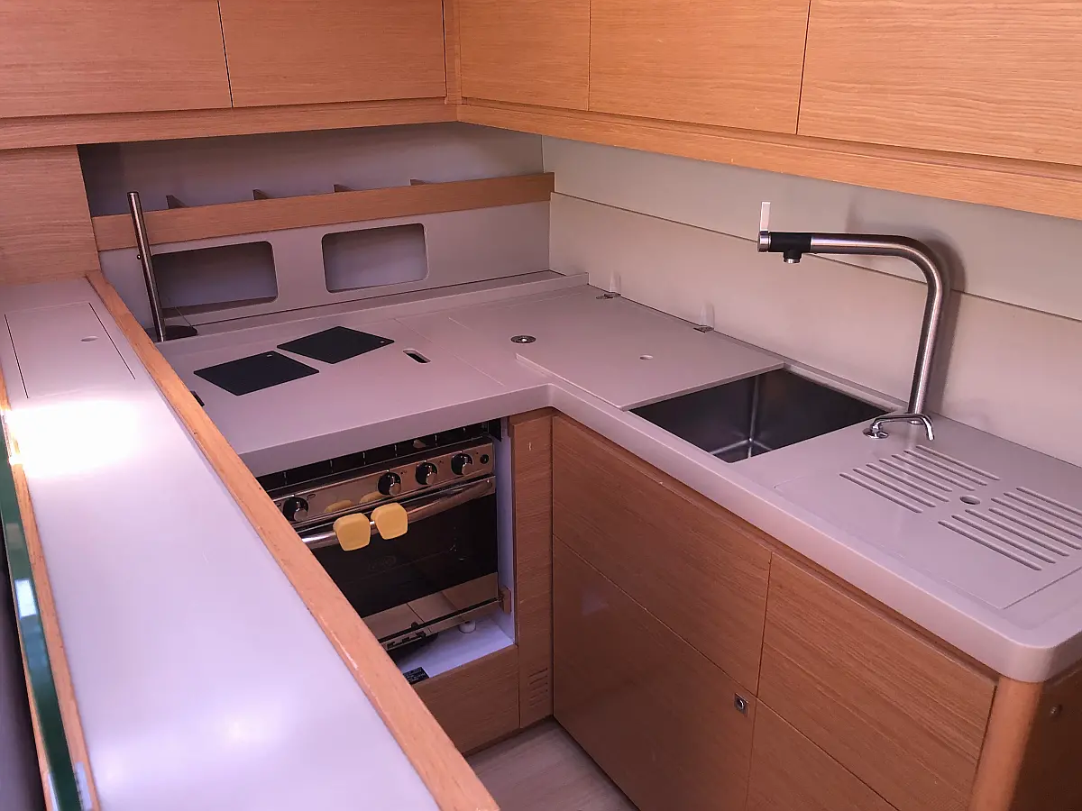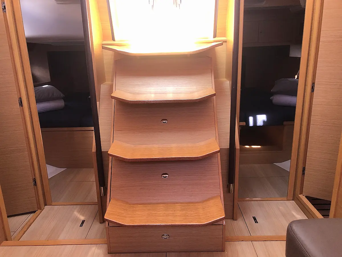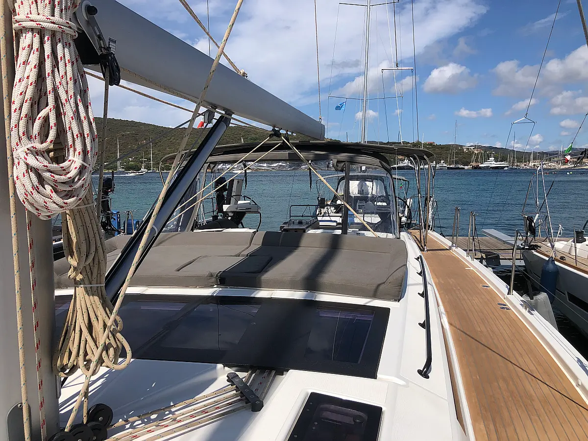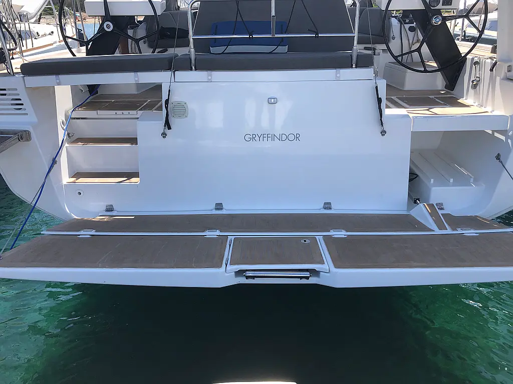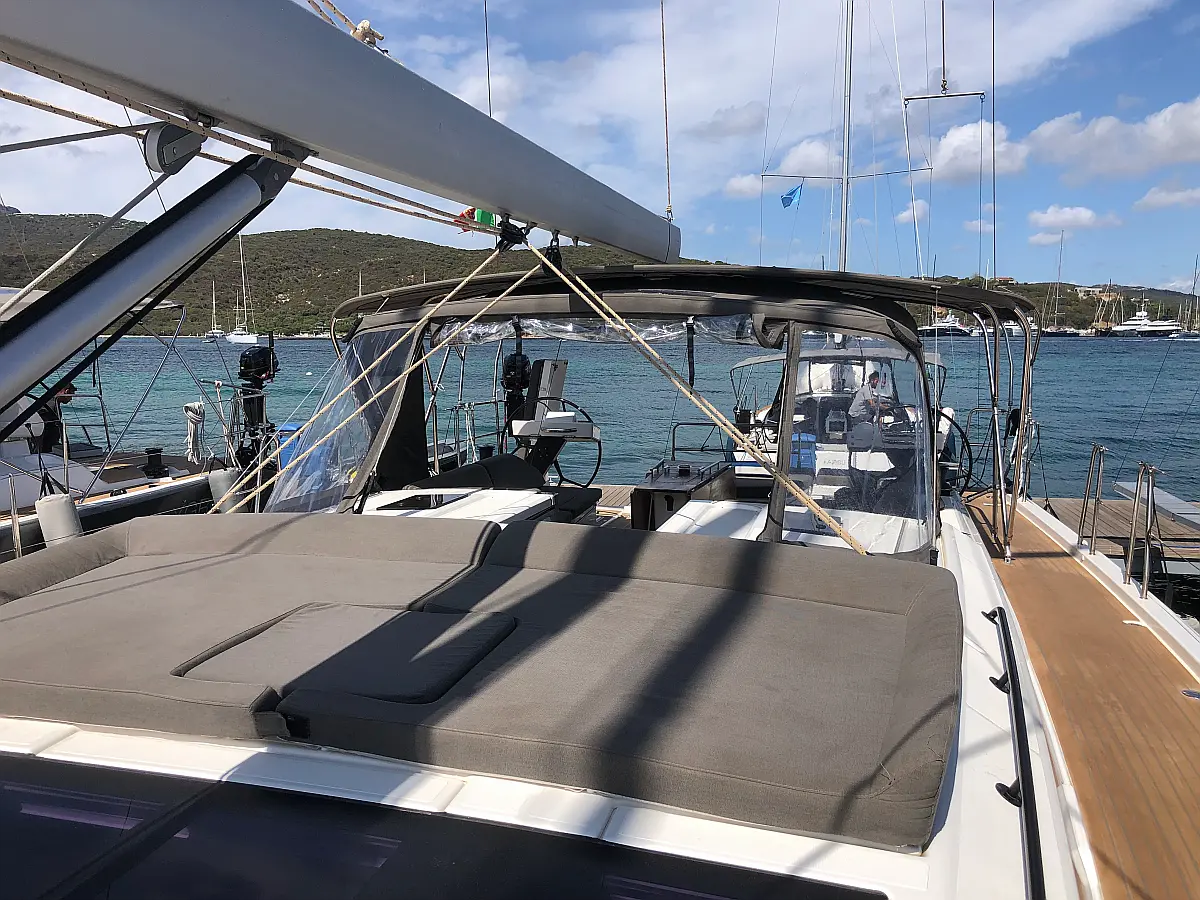 Teak Cockpit, Cockpit cushions, Parrilla en carlinga, Cubierta de teca, WC eléctrico, Nevera, Plataforma de baño, Winches eléctricos, Pasarela hidráulica, Convertidor, Panel Solar