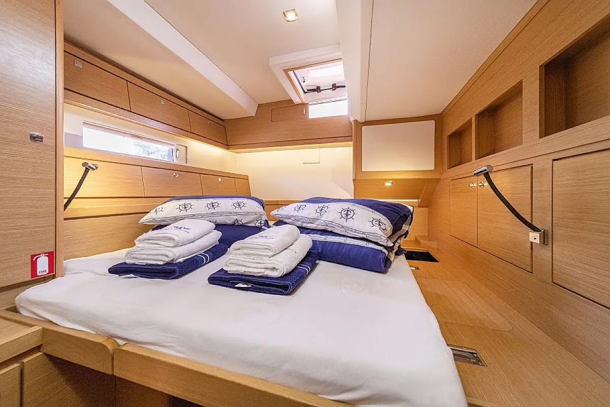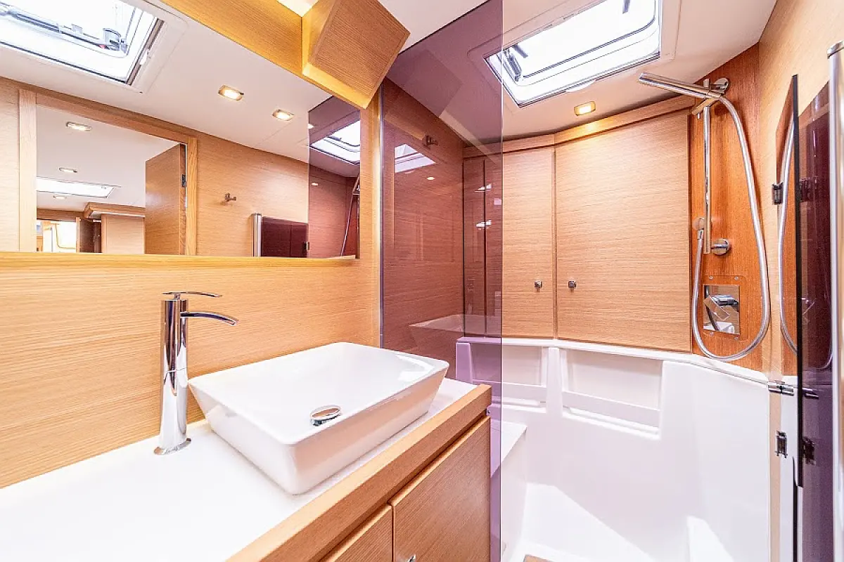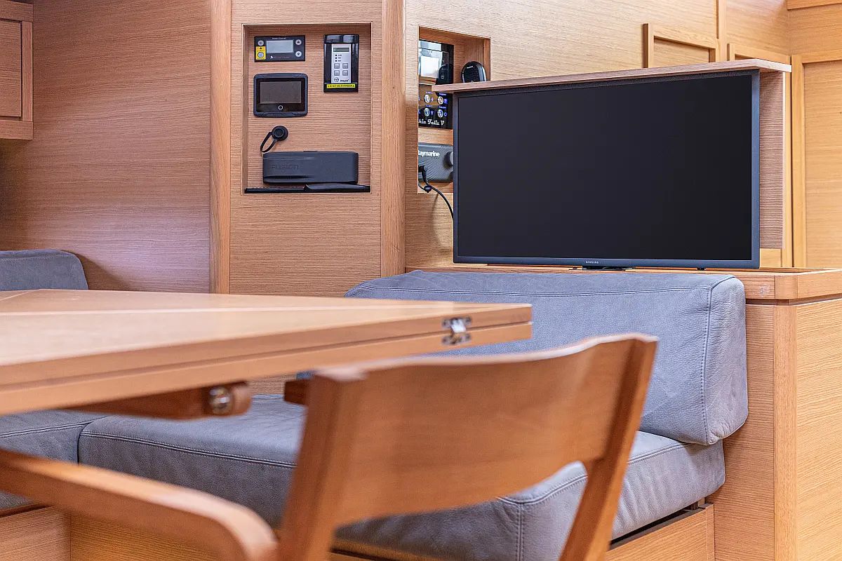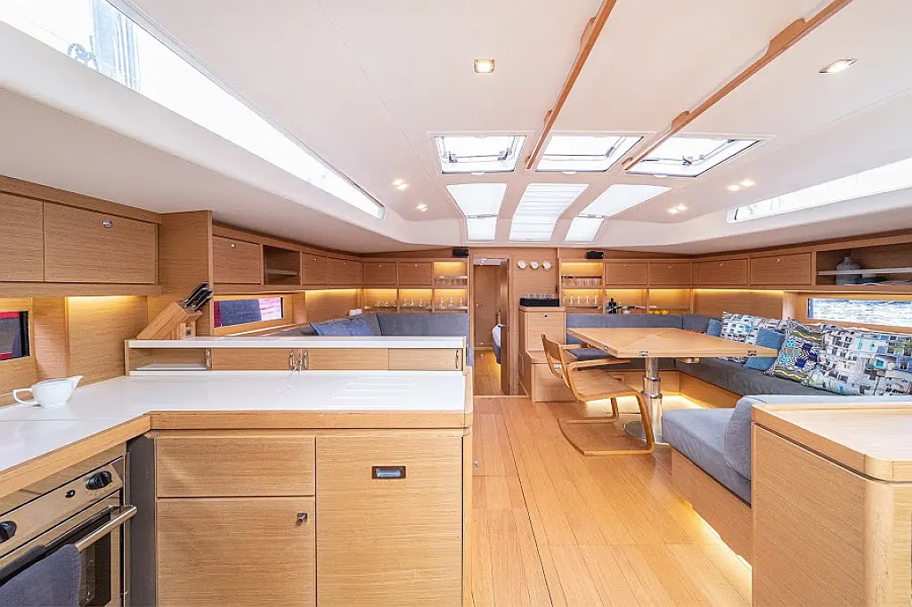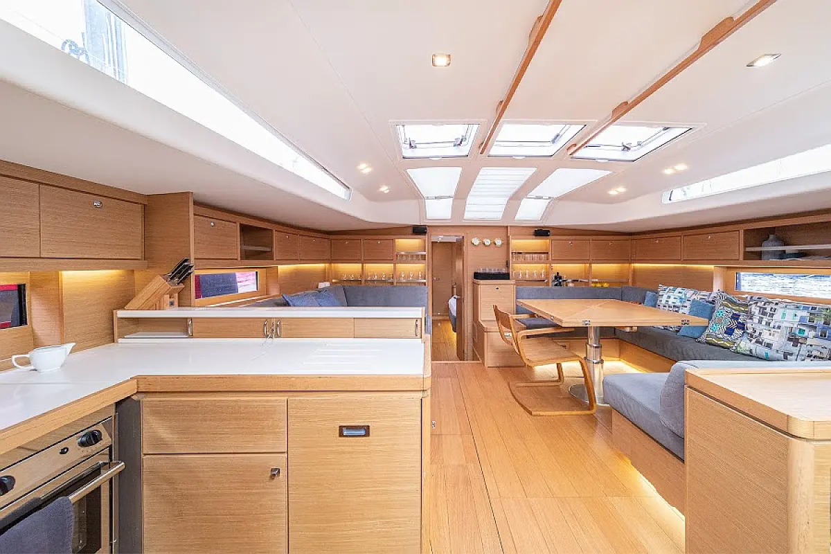 Nevera, Cafetera, Depósito de aguas residuales, Convertidor, Desalinizadora, Embarcación auxiliar, Aire acondicionado, Bímini, Cockpit cushions, Motor fueraborda, Parrilla en carlinga, Cubierta de teca, Generador, WC eléctrico, Pasarela hidráulica