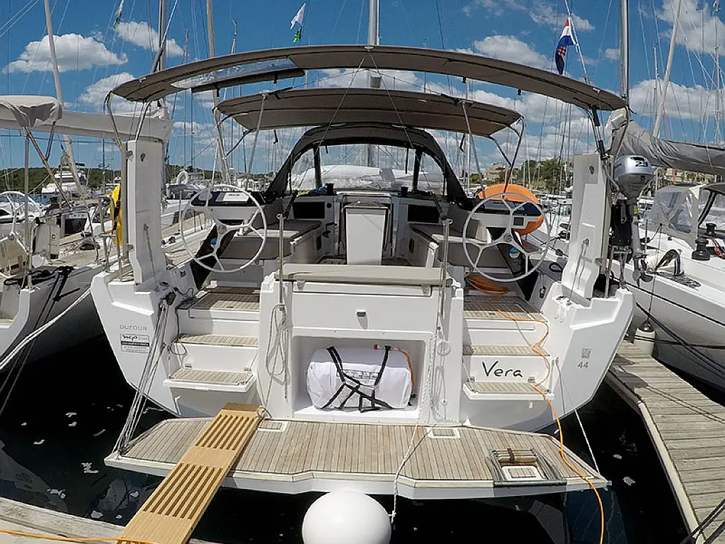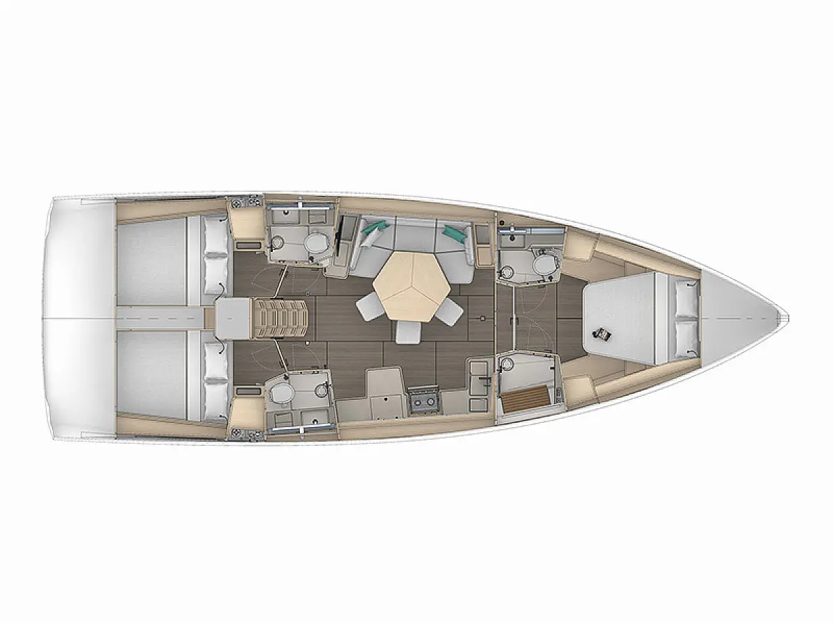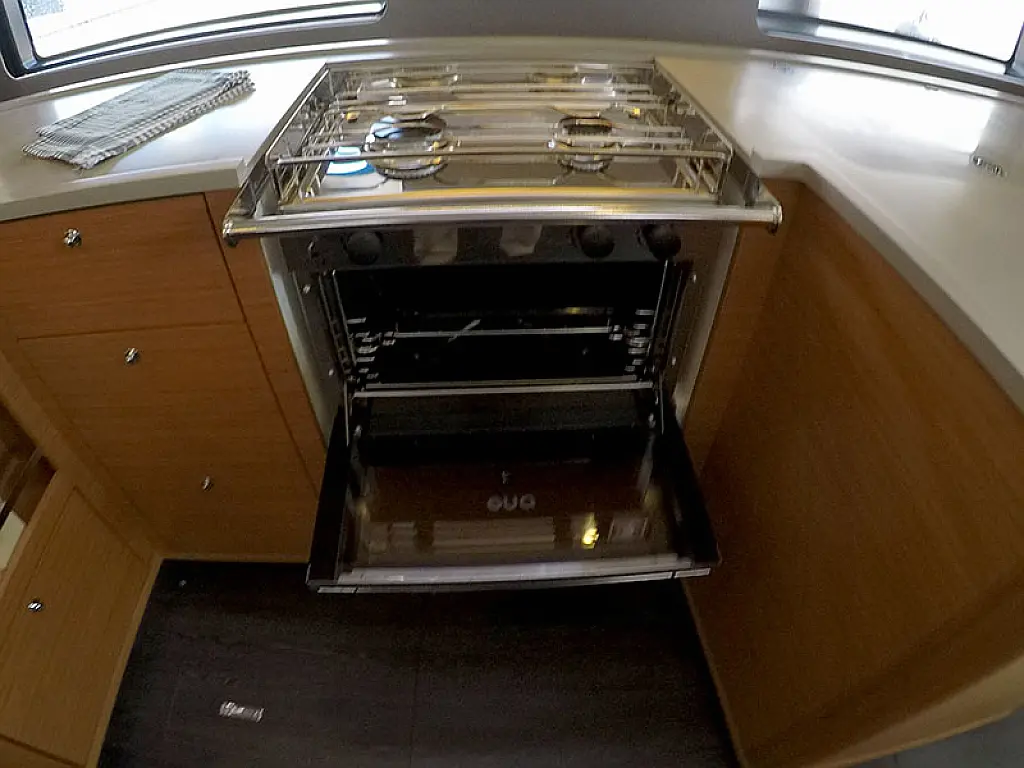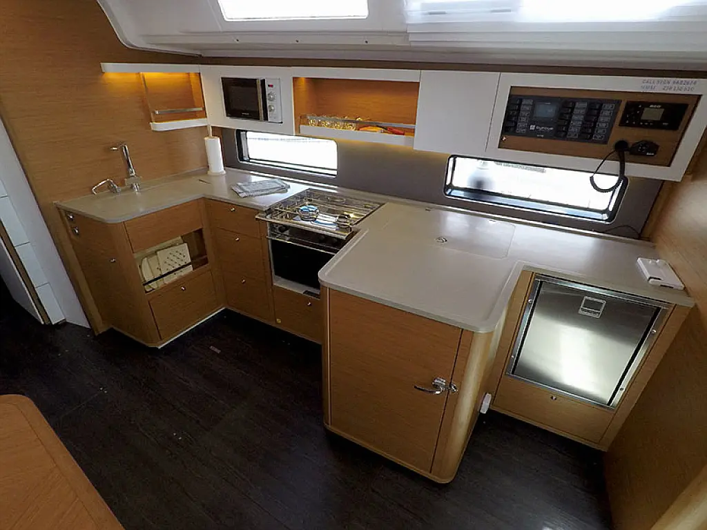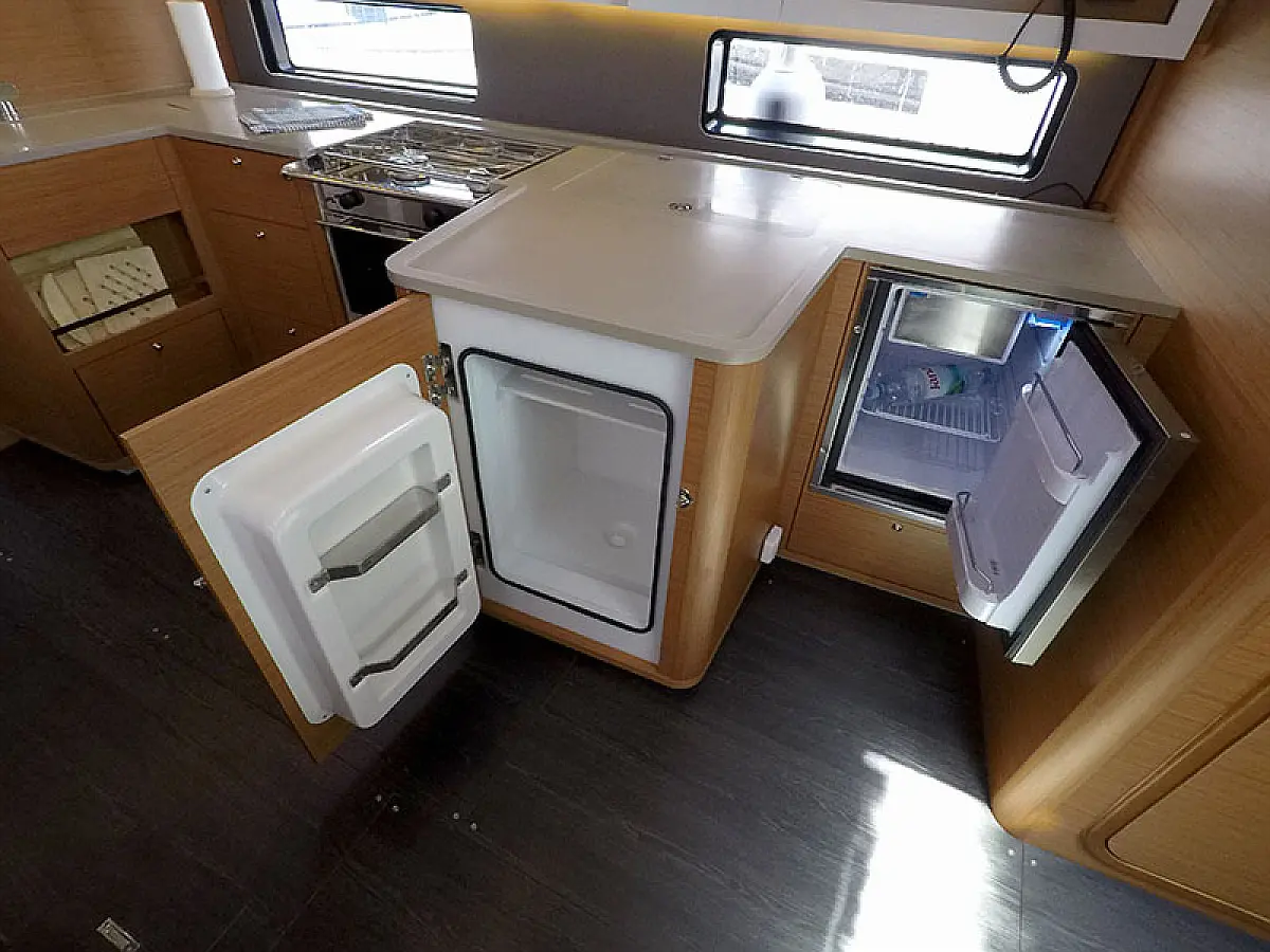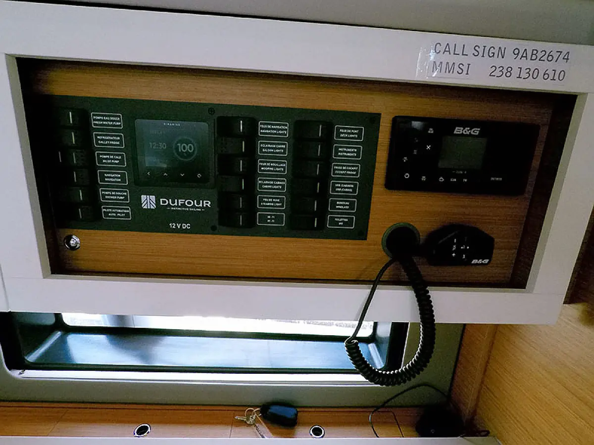 Generador, Aire acondicionado, Nevera, Parrilla en carlinga, Bímini, Cockpit cushions, Capota antirociones, Motor fueraborda, Cubierta de teca, Embarcación auxiliar, Winches eléctricos, Wi-Fi e Internet