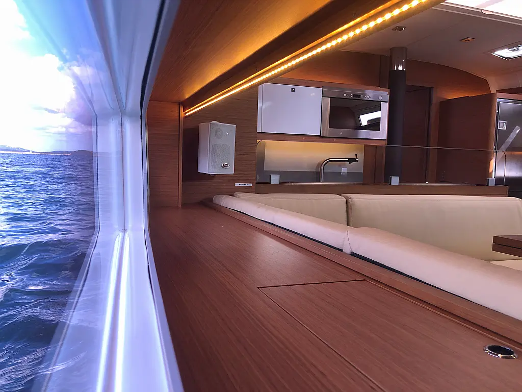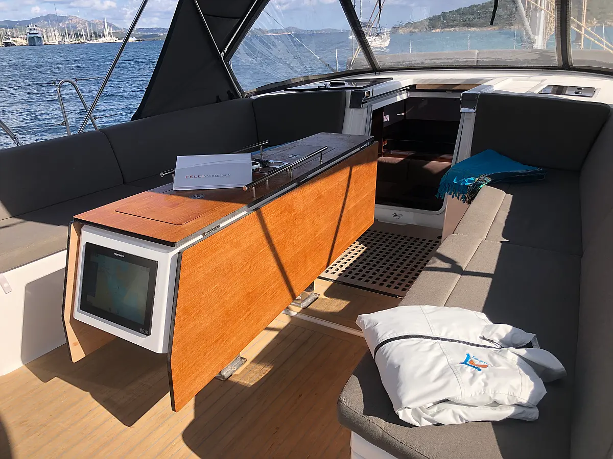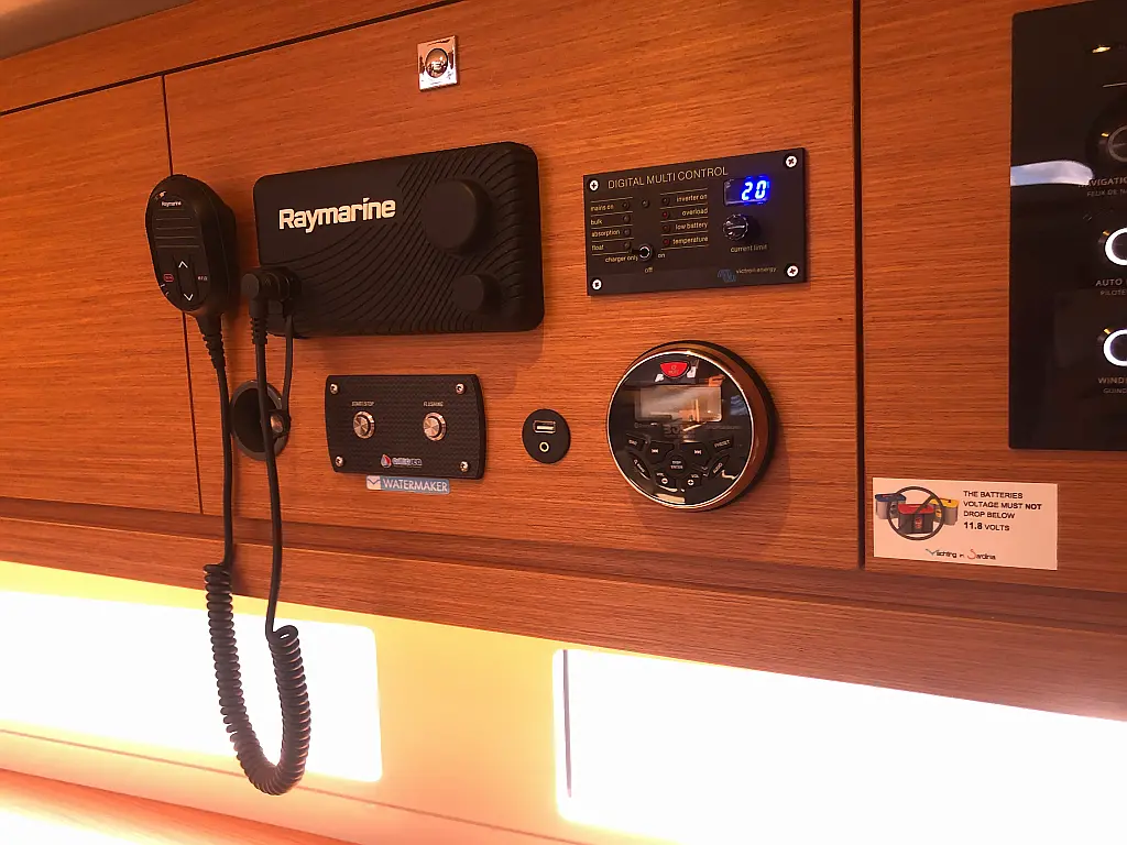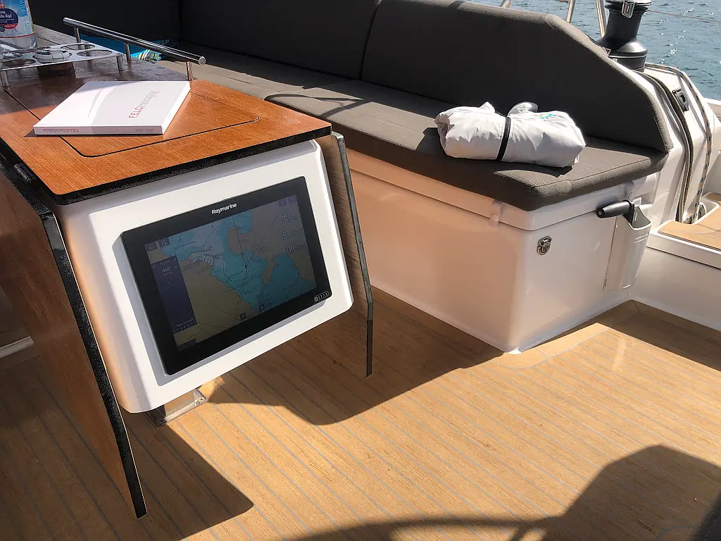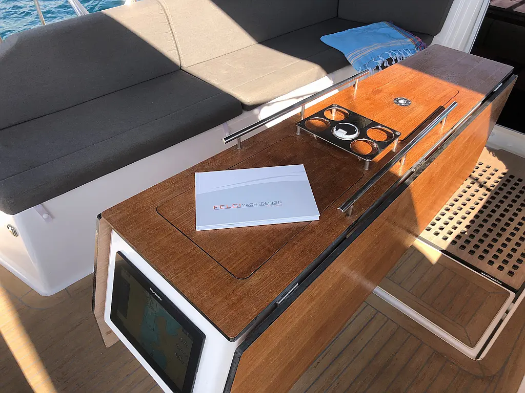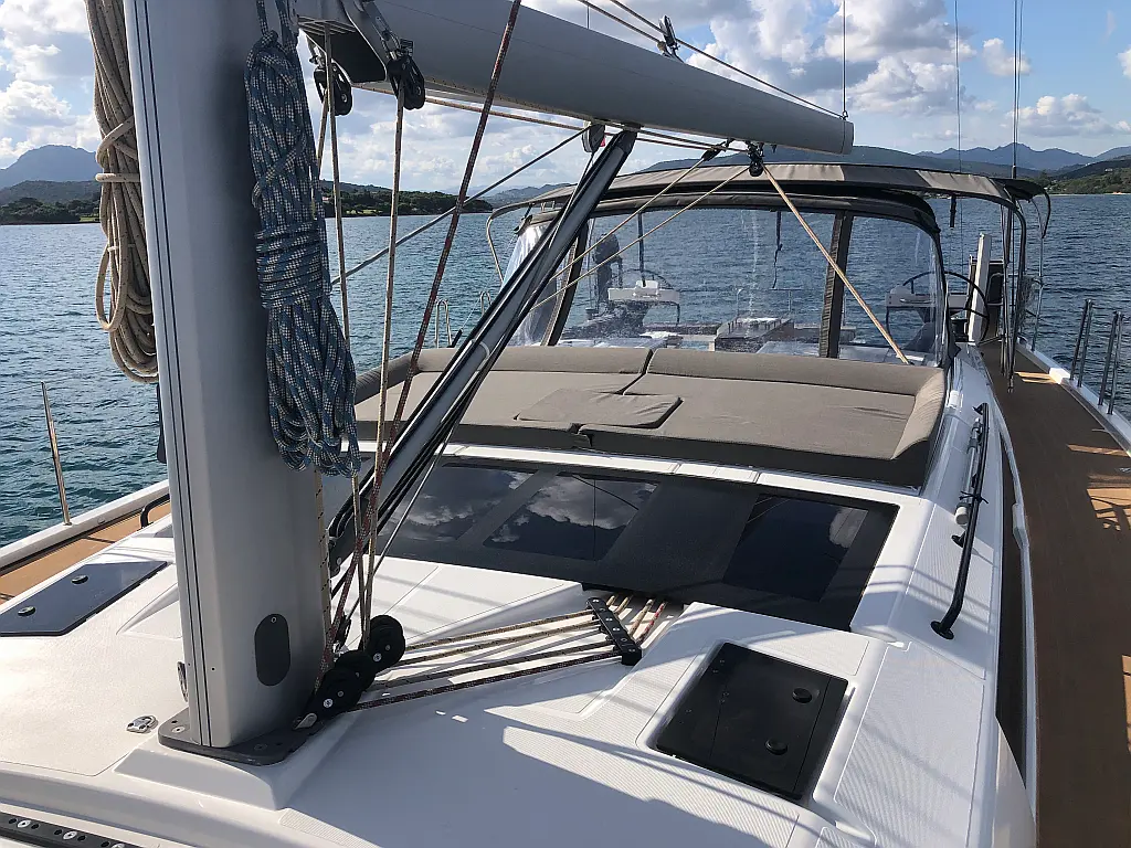 Cockpit cushions, Parrilla en carlinga, Cubierta de teca, WC eléctrico, Plataforma de baño, Winches eléctricos, Pasarela hidráulica, Convertidor, Panel Solar