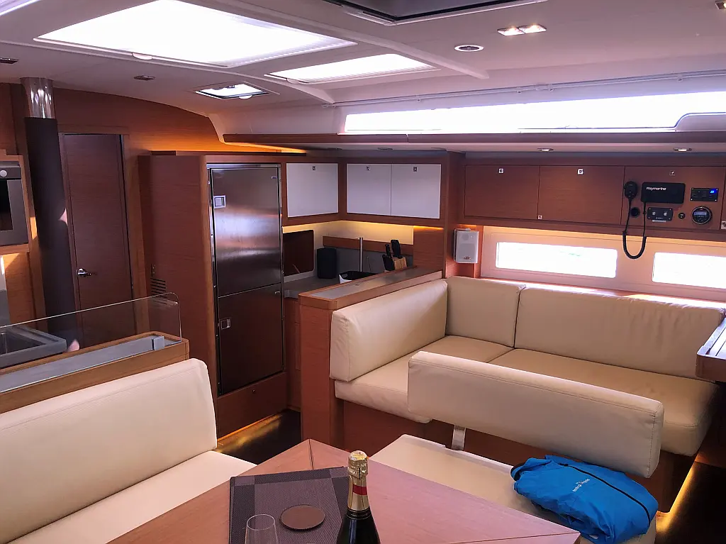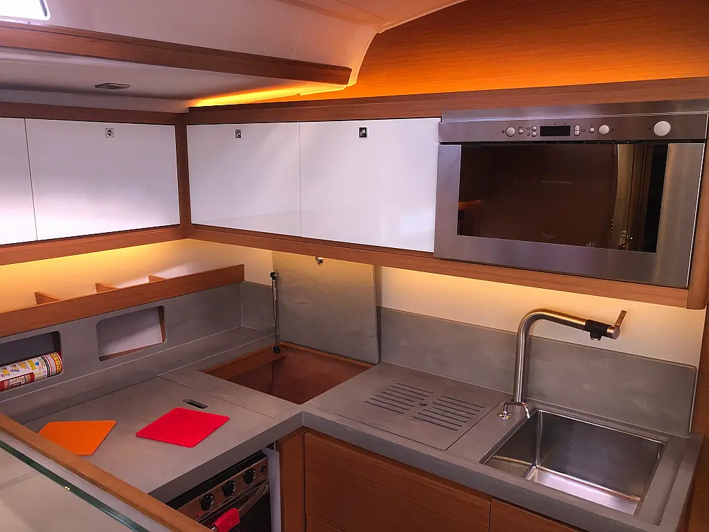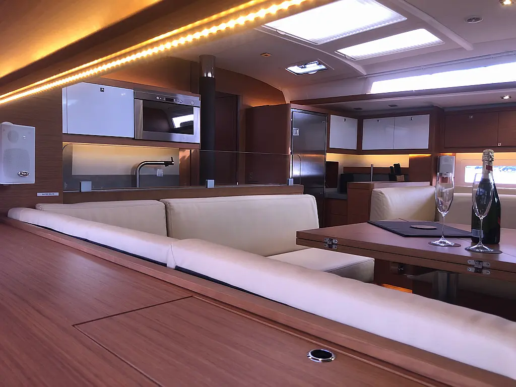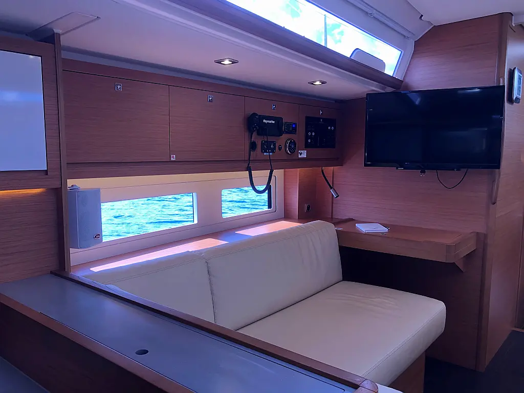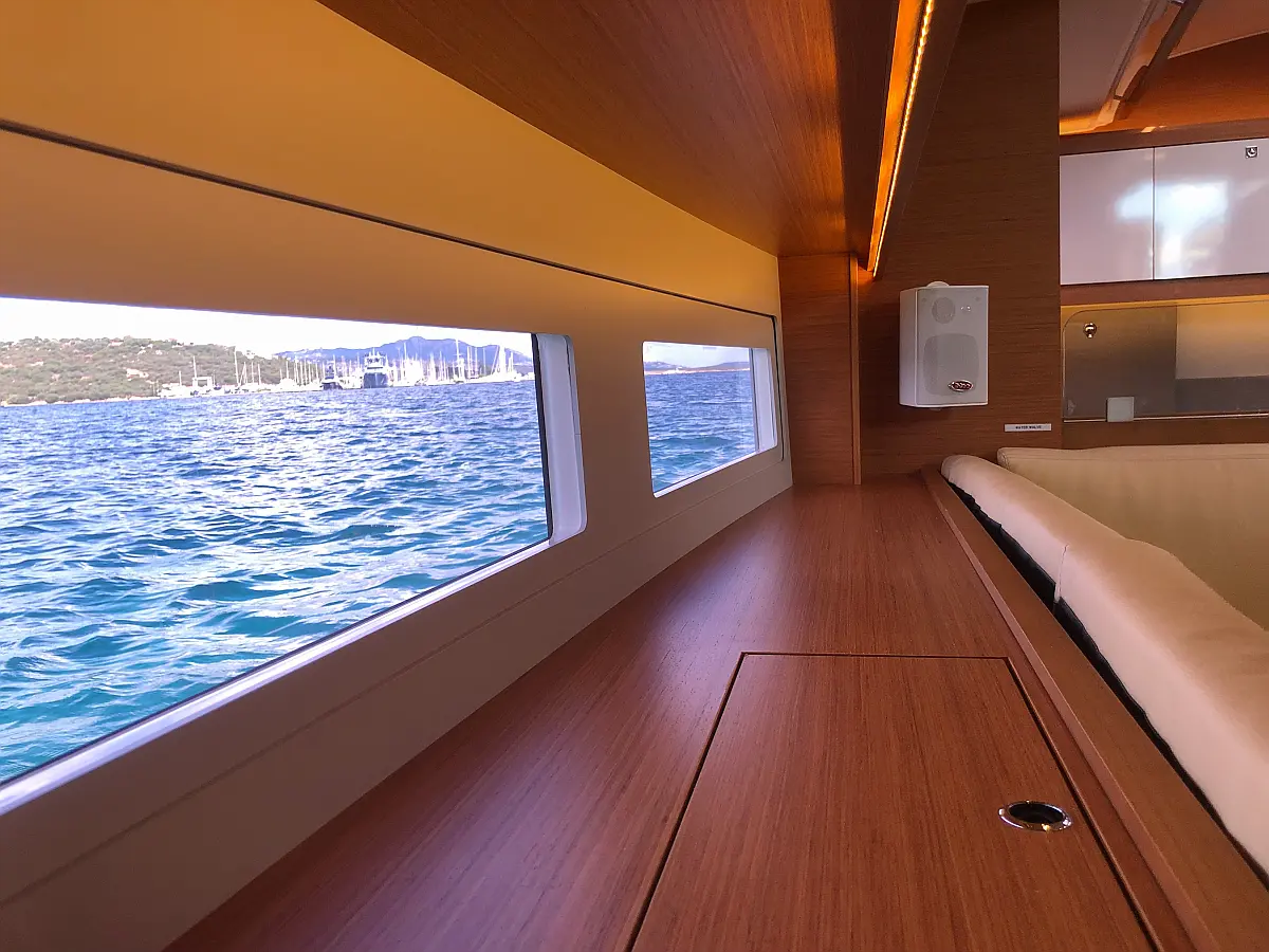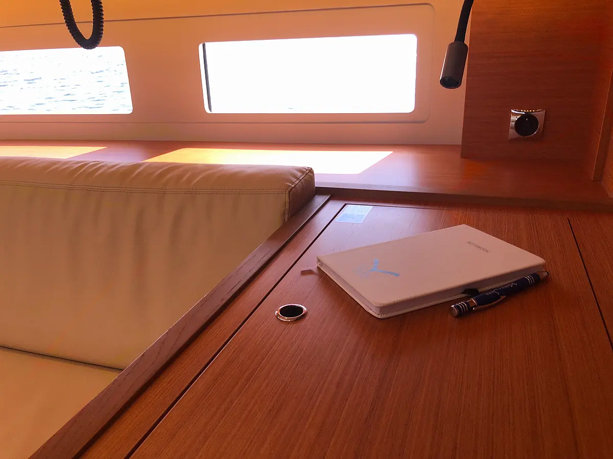Cockpit cushions, Parrilla en carlinga, Cubierta de teca, WC eléctrico, Plataforma de baño, Winches eléctricos, Pasarela hidráulica, Convertidor, Panel Solar