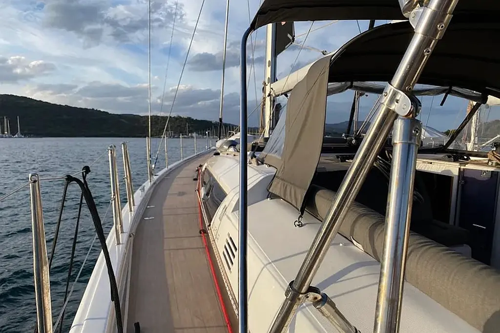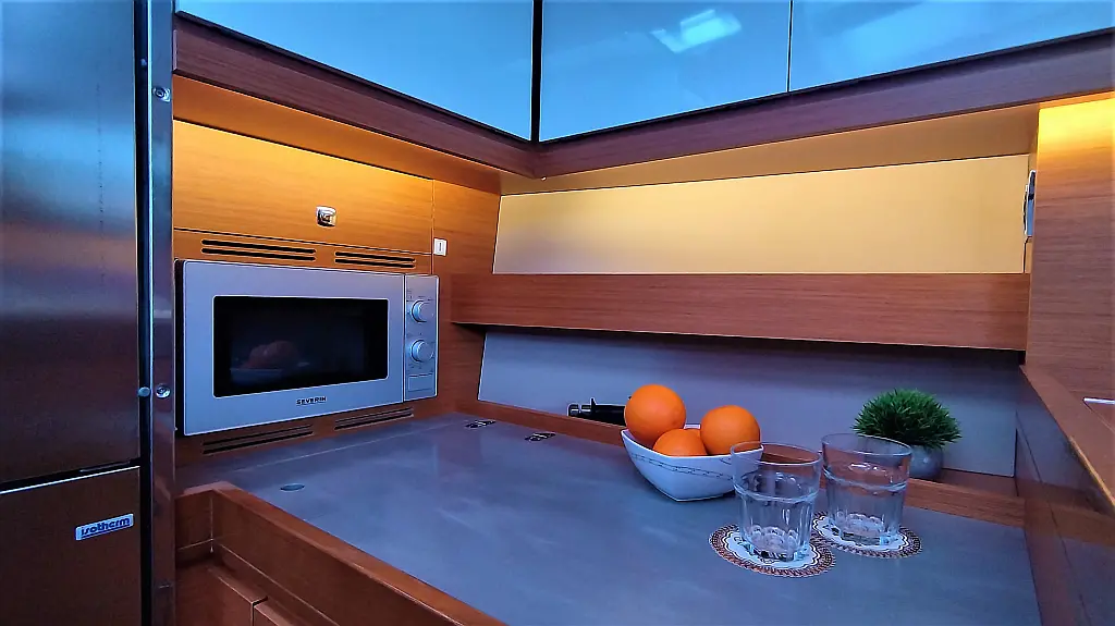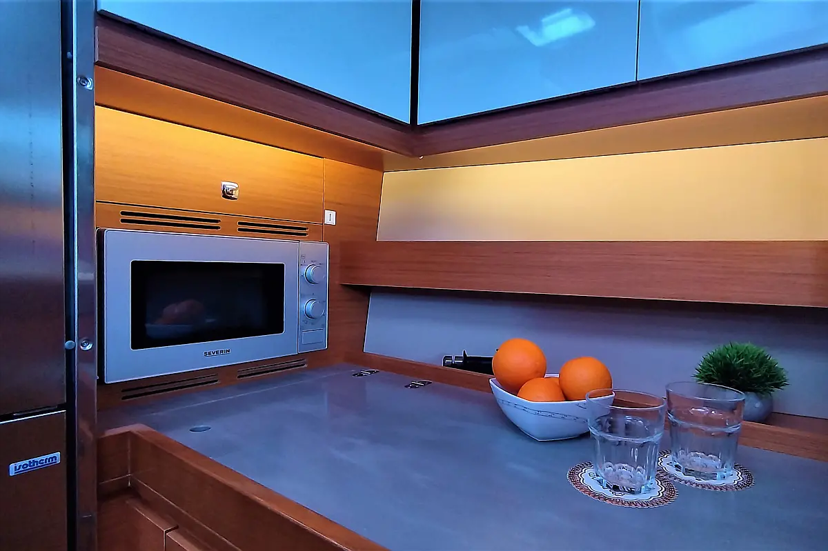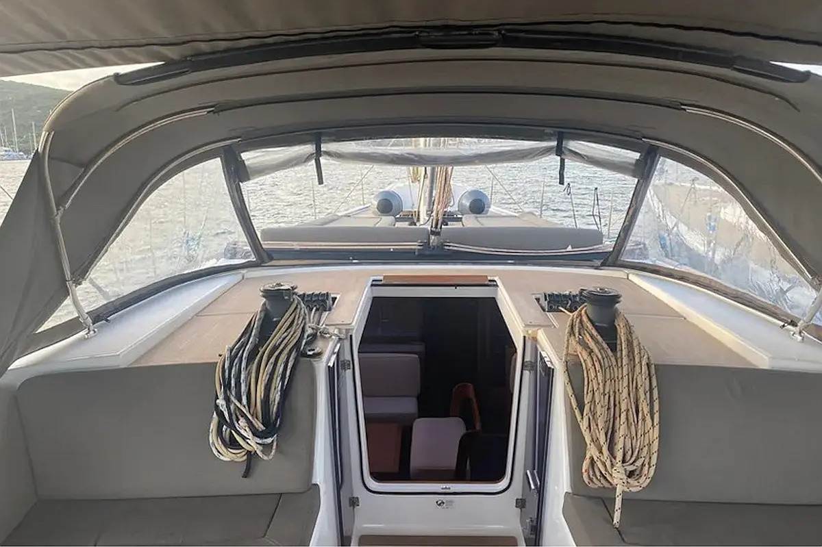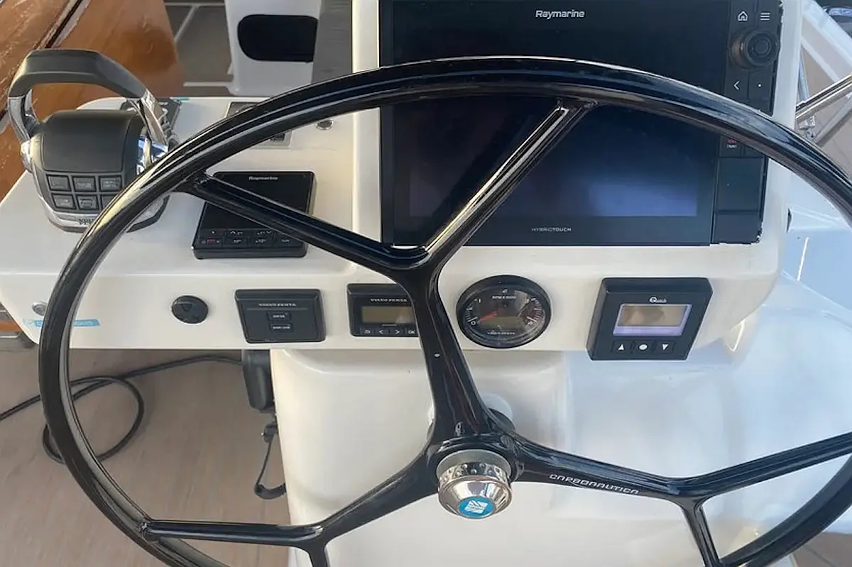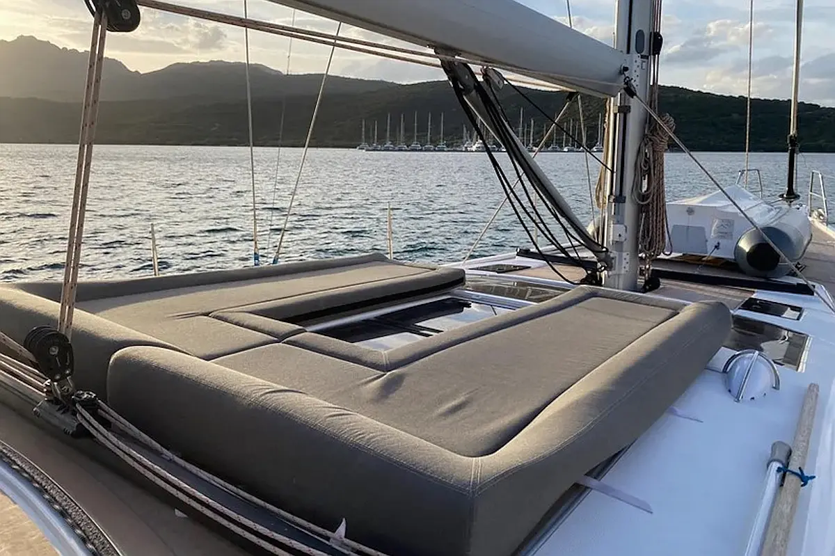 Cockpit cushions, Parrilla en carlinga, Cubierta de teca, WC eléctrico, Nevera, Plataforma de baño, Winches eléctricos, Pasarela hidráulica, Convertidor, Panel Solar