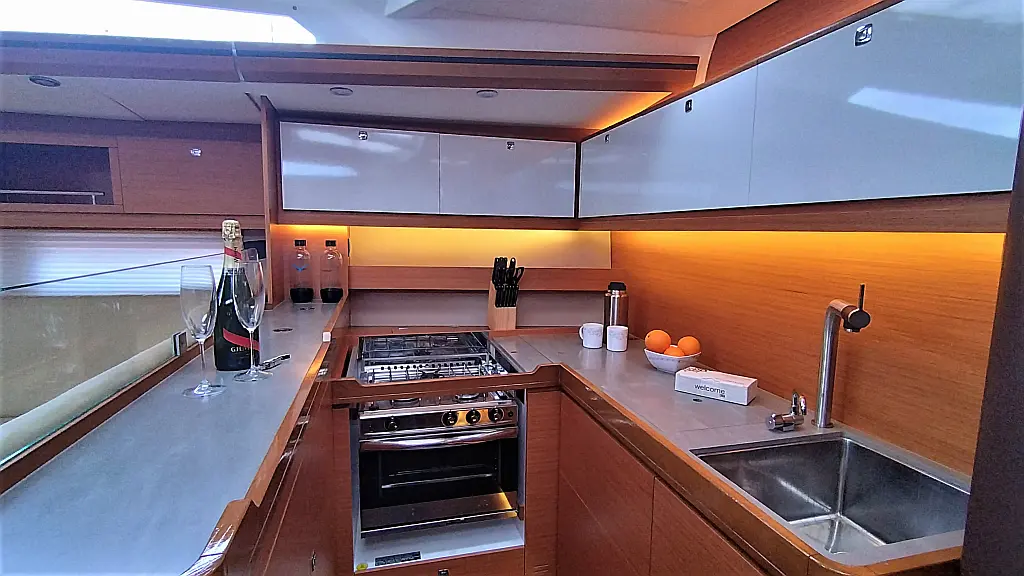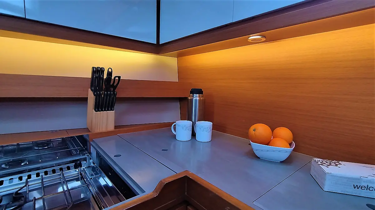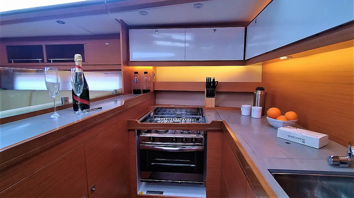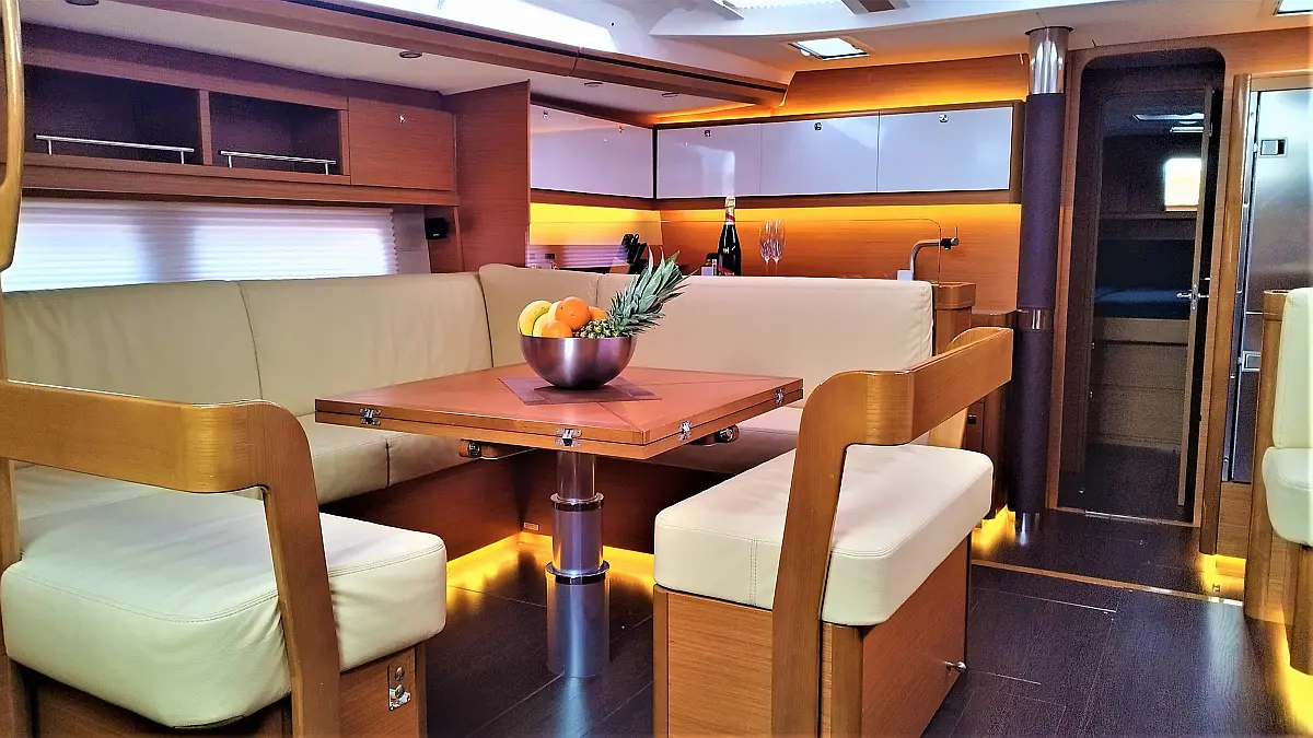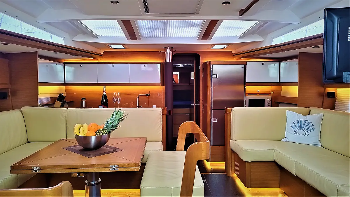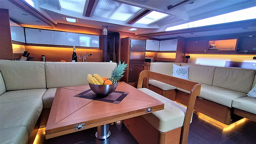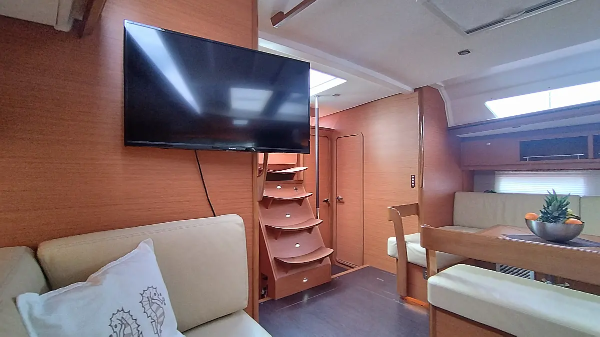 Cockpit cushions, Parrilla en carlinga, Cubierta de teca, WC eléctrico, Nevera, Plataforma de baño, Winches eléctricos, Pasarela hidráulica, Convertidor, Panel Solar
