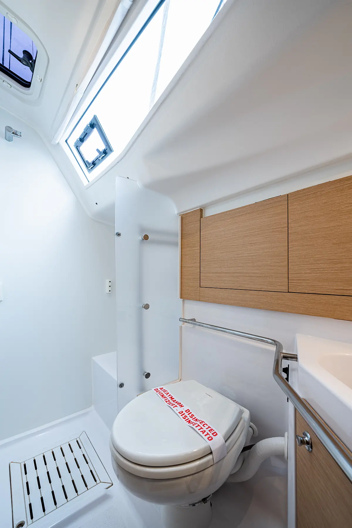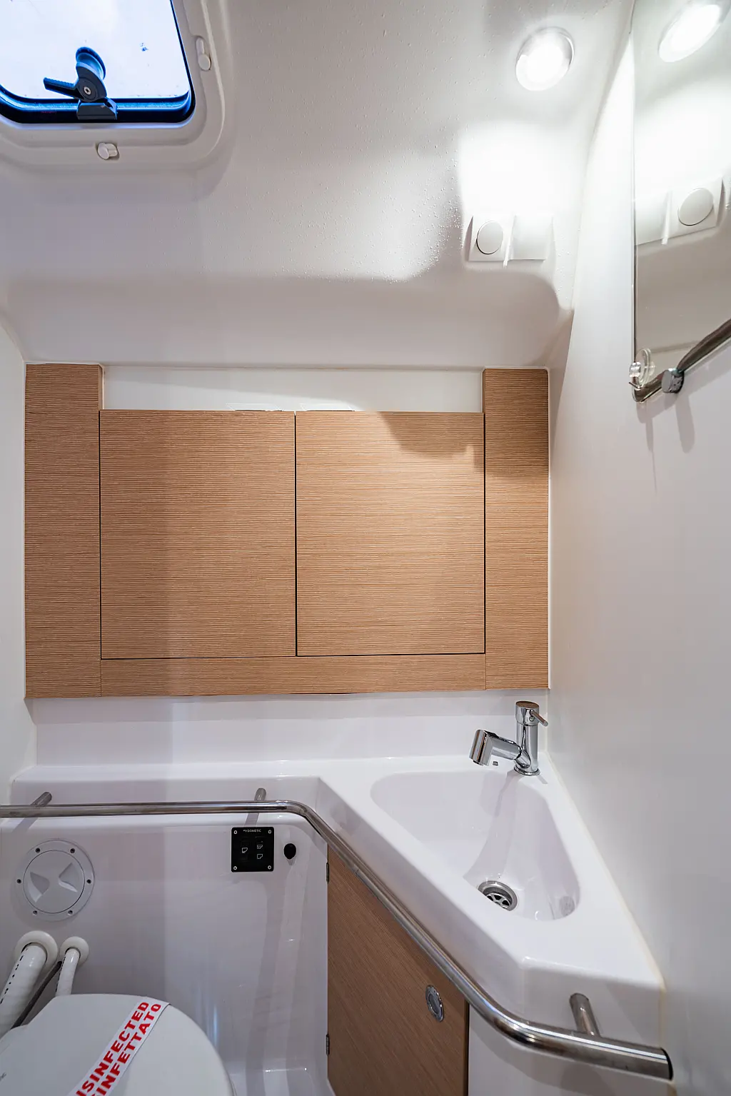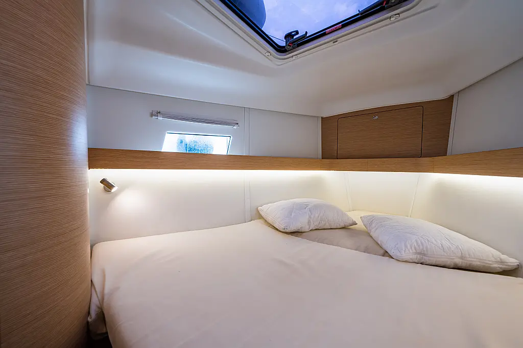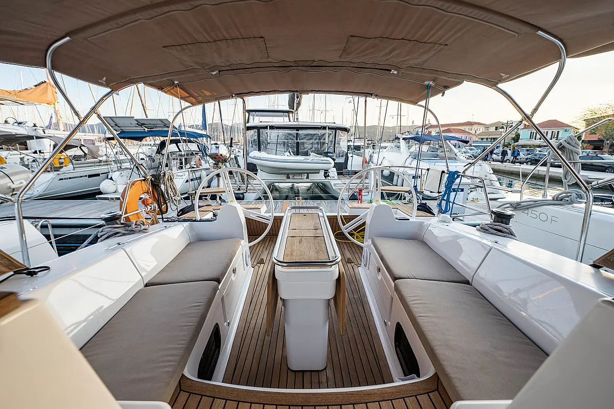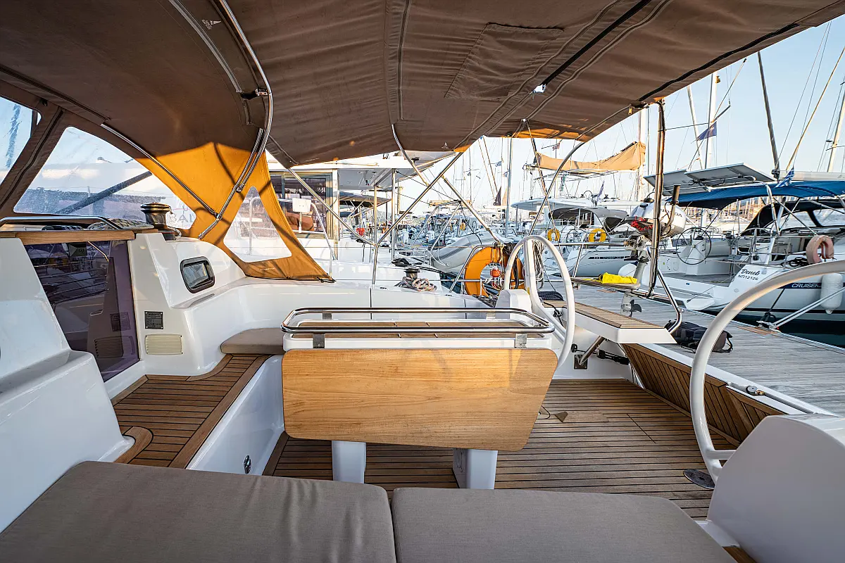 Capota antirociones, Depósito de aguas residuales, Embarcación auxiliar, Altavoces exteriores, WC eléctrico, Panel Solar, Cockpit cushions, Teak Cockpit