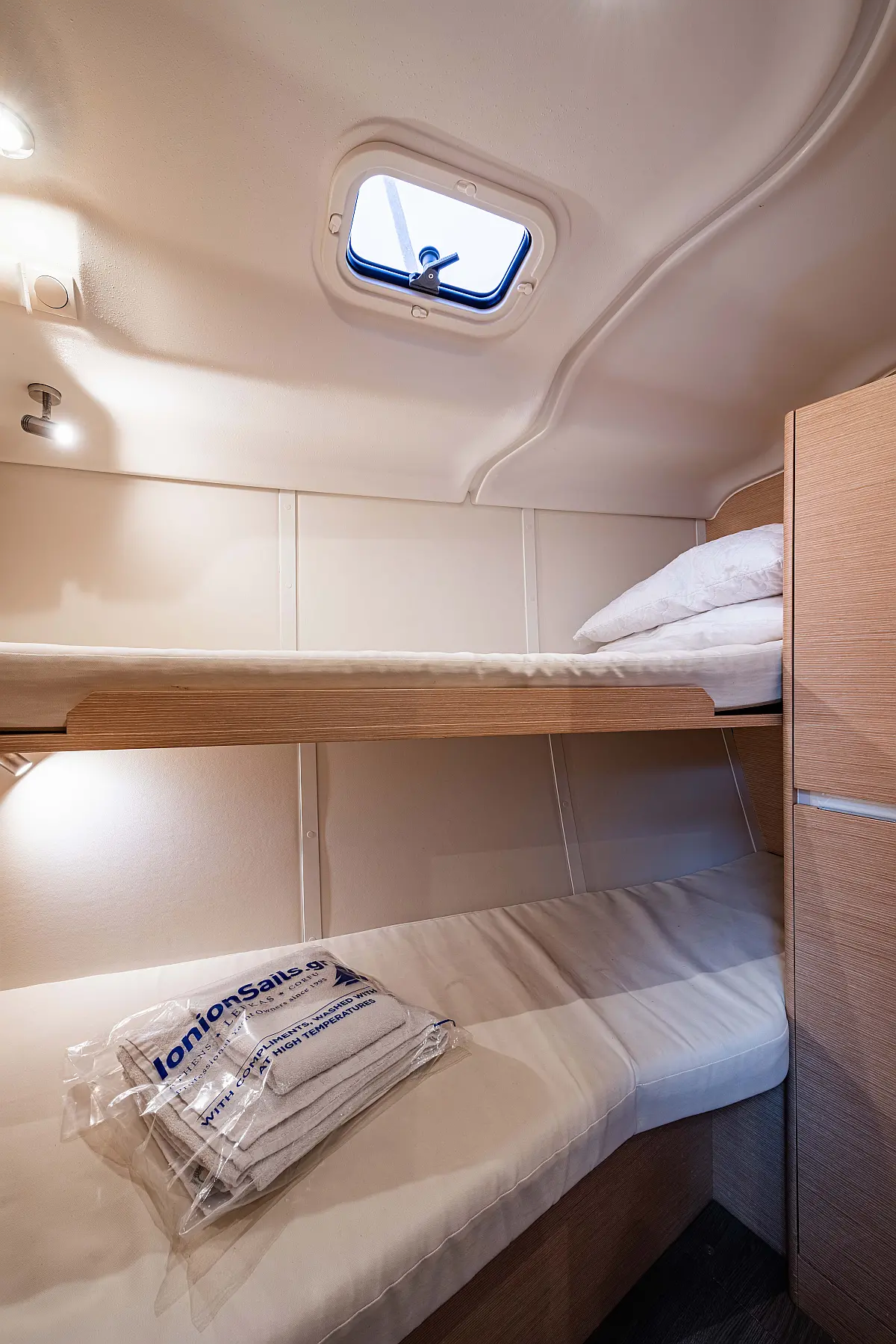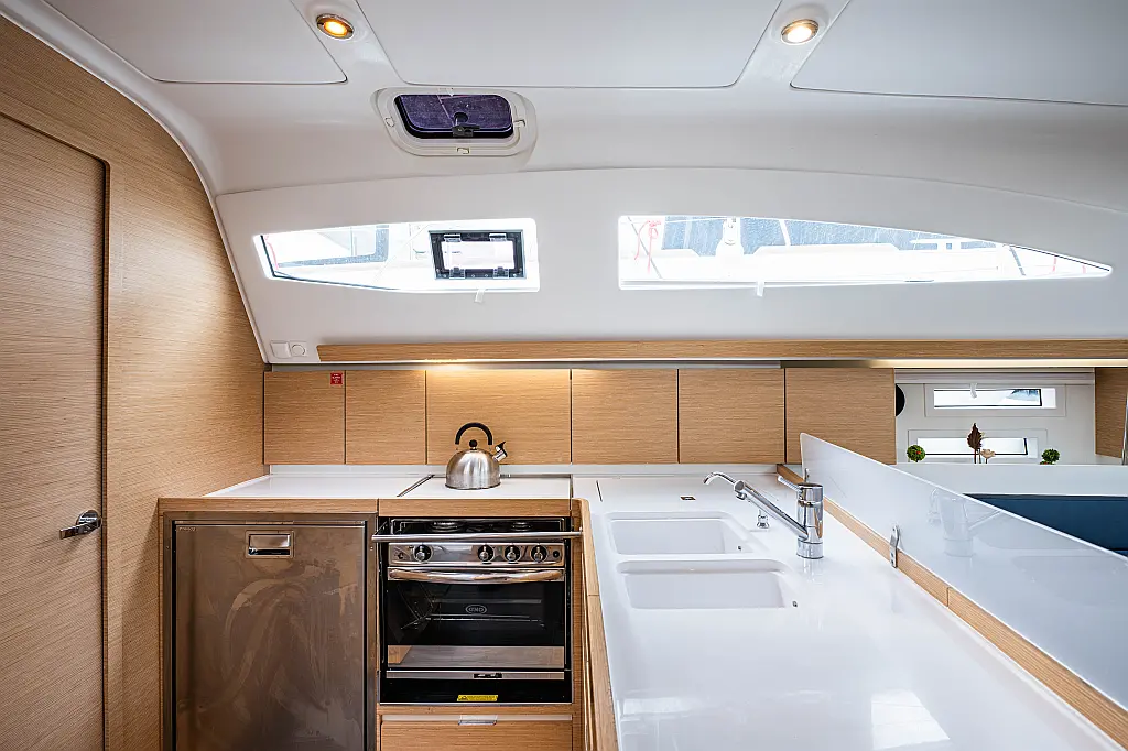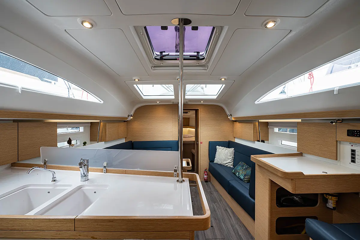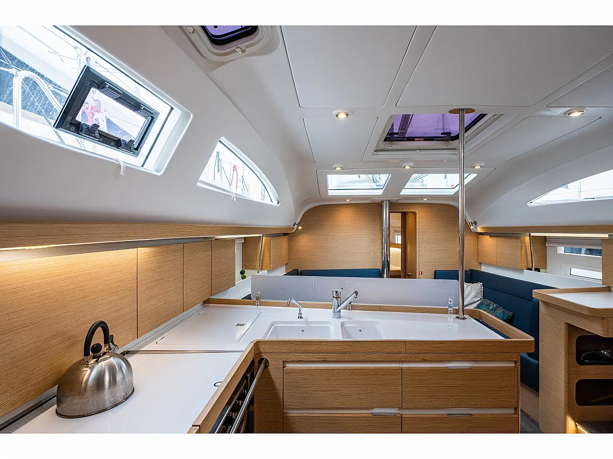 Capota antirociones, Depósito de aguas residuales, Embarcación auxiliar, Altavoces exteriores, WC eléctrico, Panel Solar, Cockpit cushions, Teak Cockpit