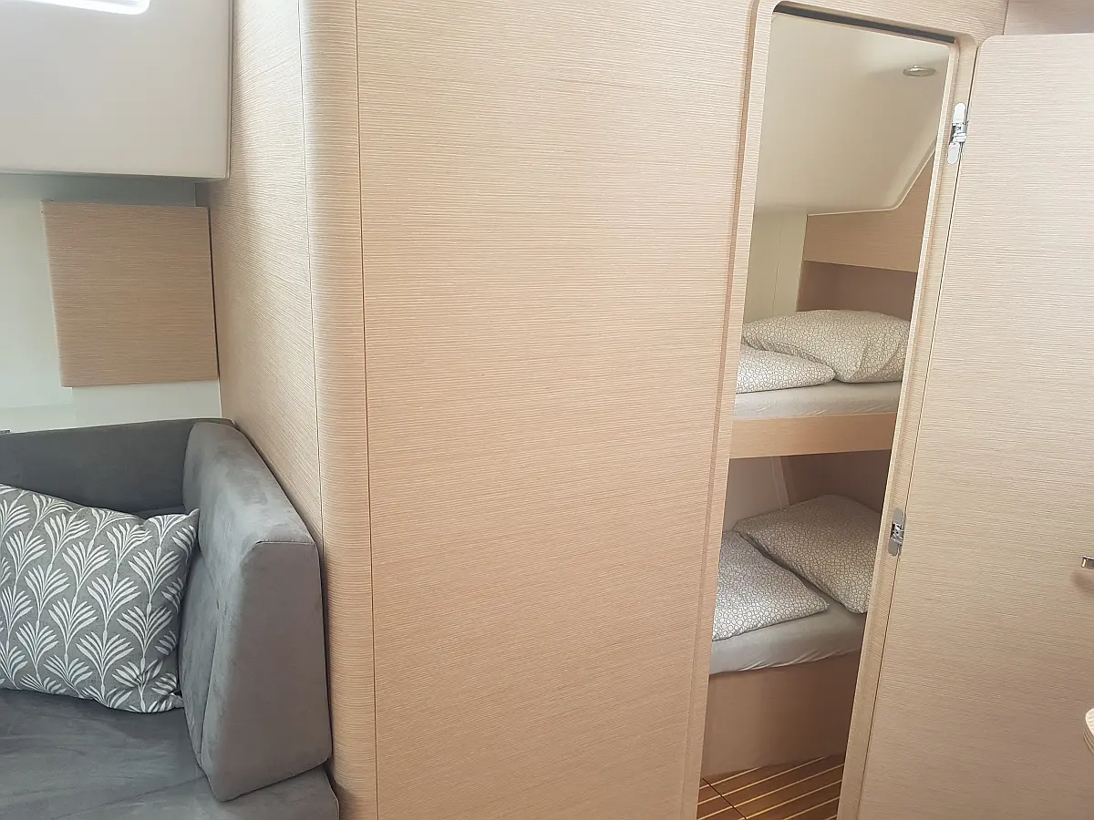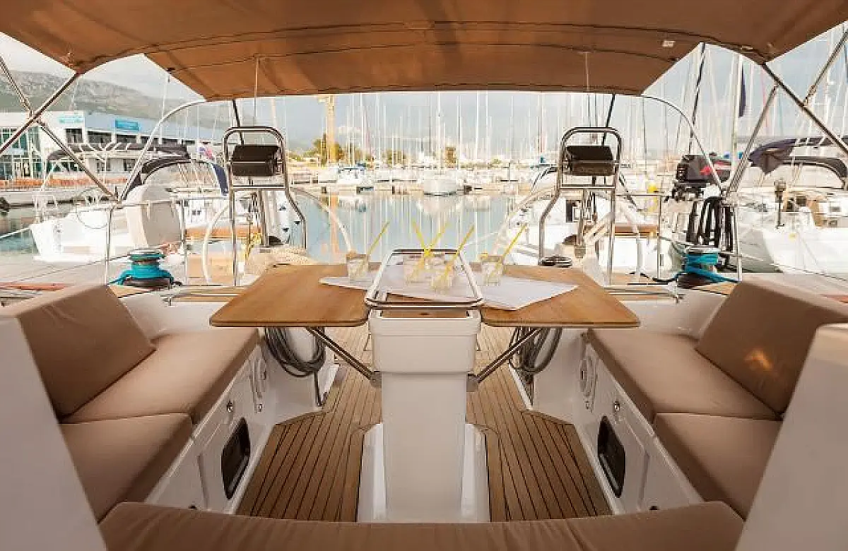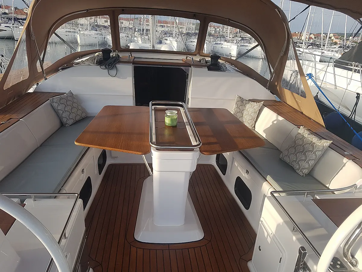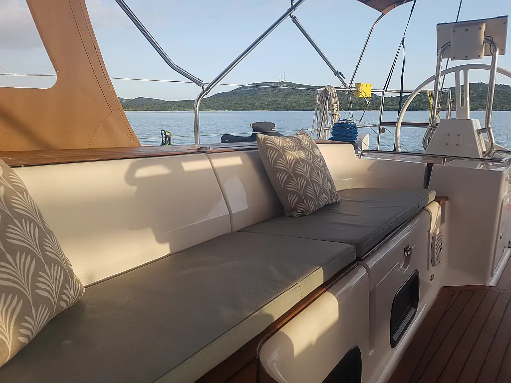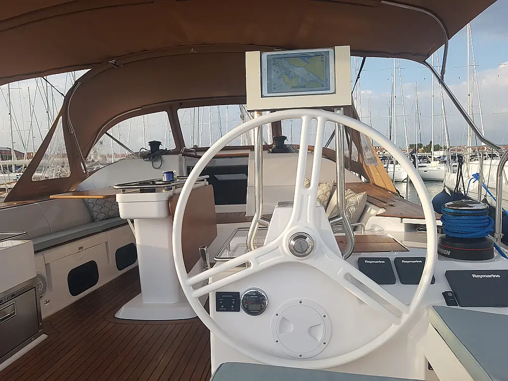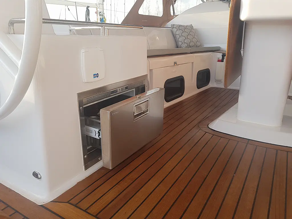 Bímini, Altavoces exteriores, Embarcación auxiliar, Capota antirociones, Teak Cockpit, Panel Solar, Nevera, Aire acondicionado