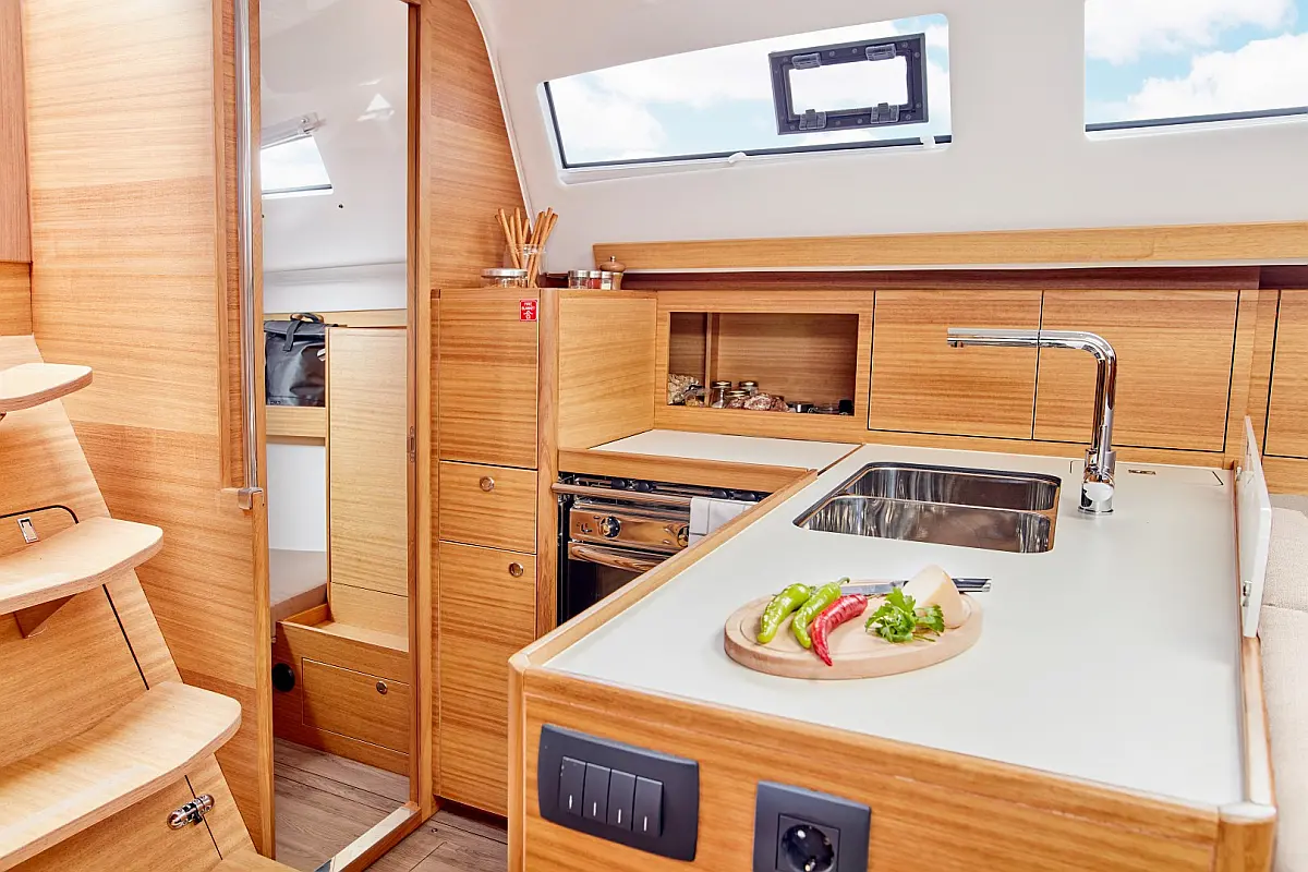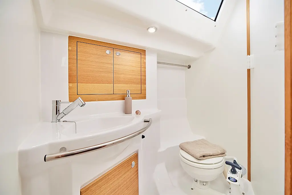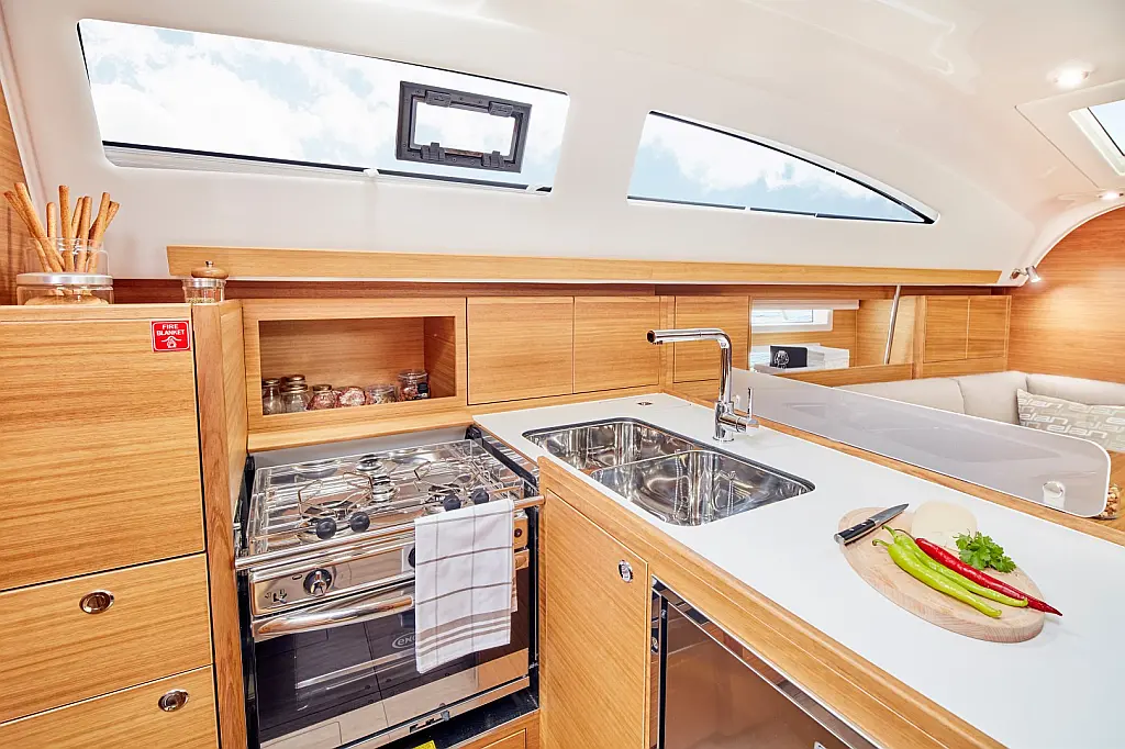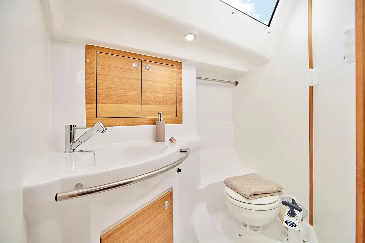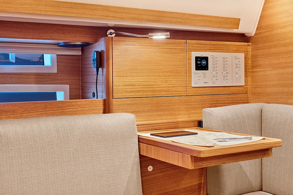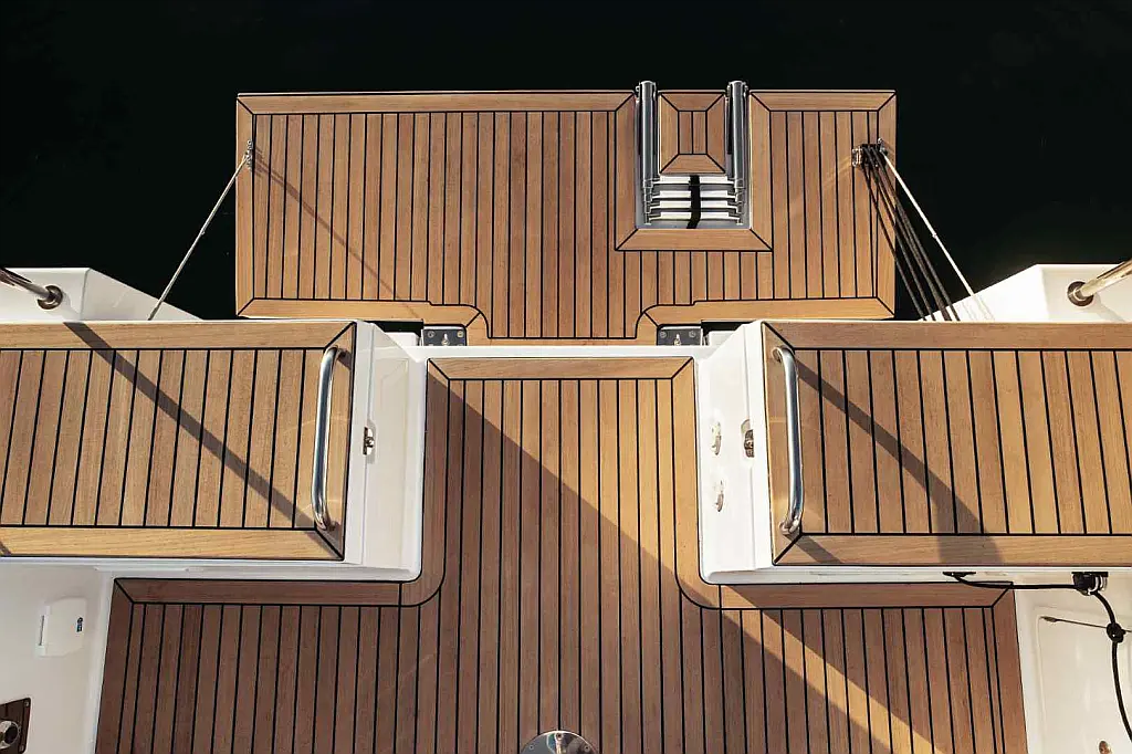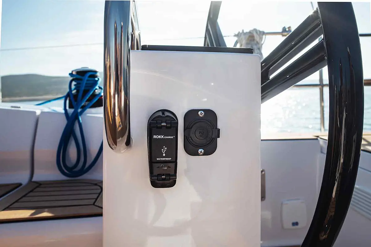 Panel Solar, Teak Cockpit, Depósito de aguas residuales, Bímini, Capota antirociones, Altavoces exteriores, Embarcación auxiliar, Cockpit cushions