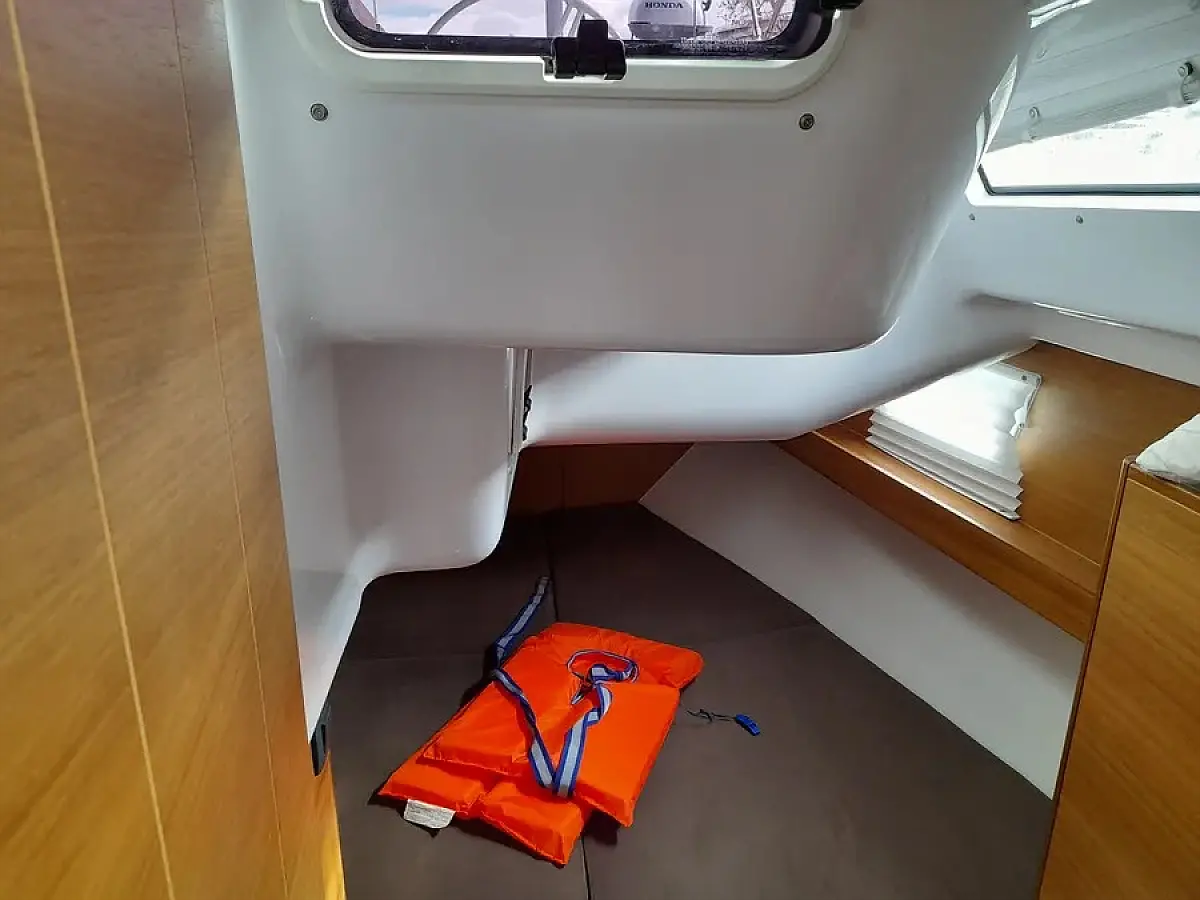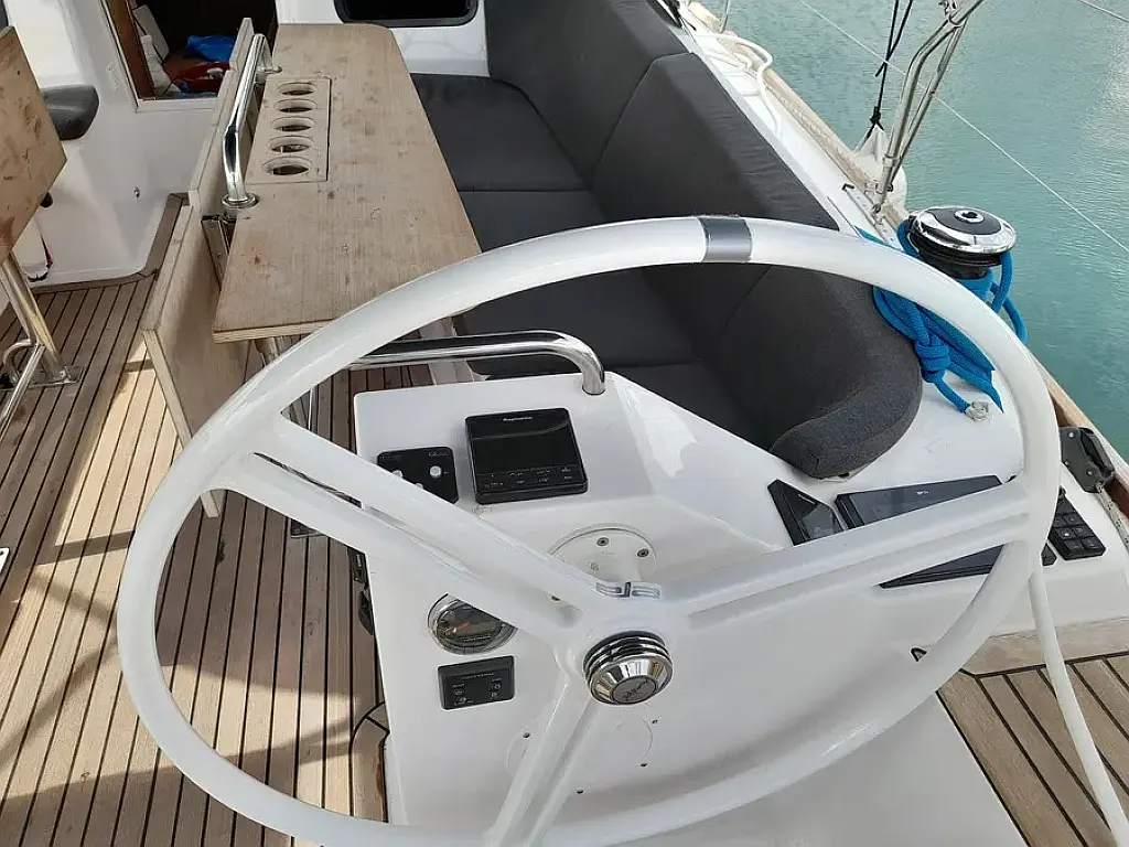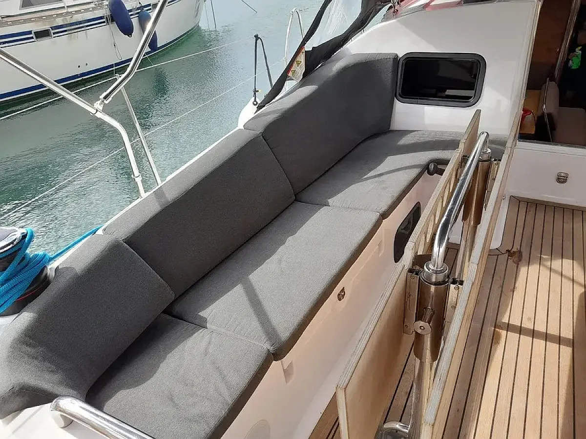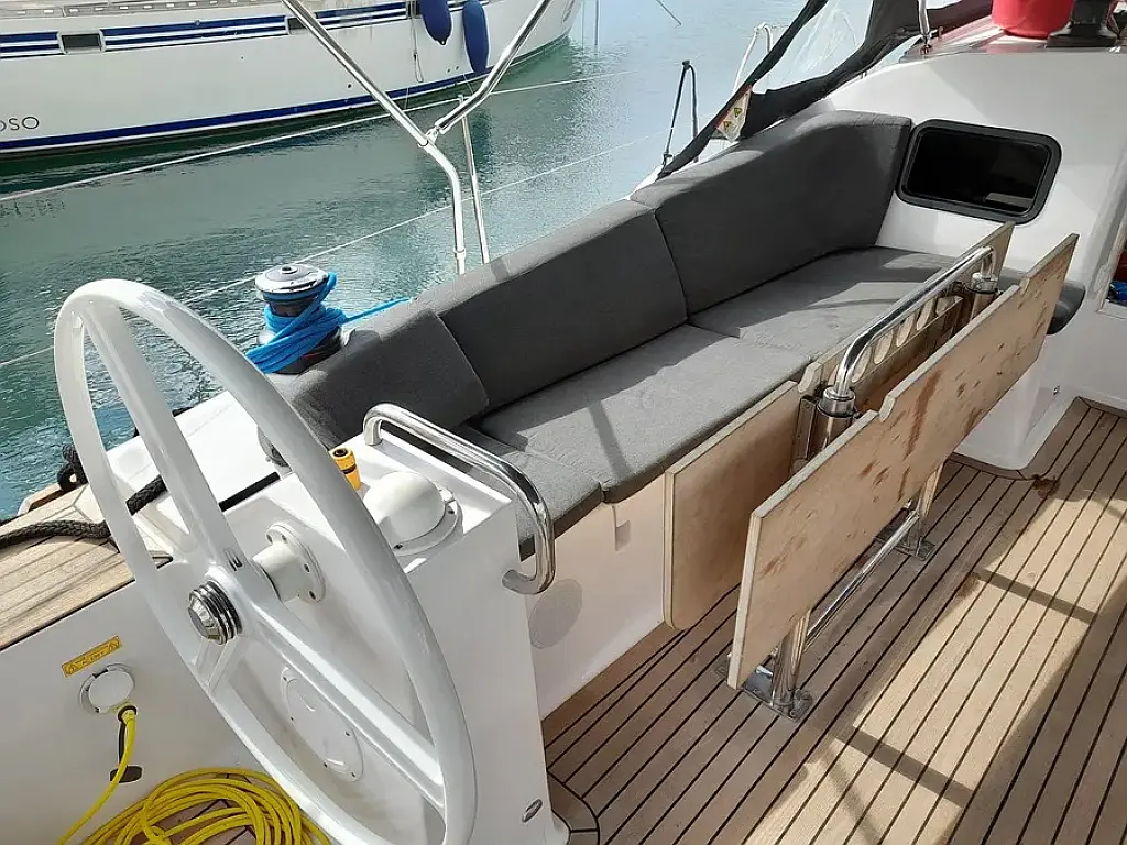Panel Solar, Depósito de aguas residuales, Bímini, Capota antirociones, Altavoces exteriores, Embarcación auxiliar, Nevera, Cockpit cushions