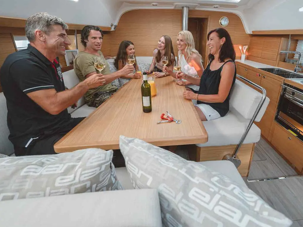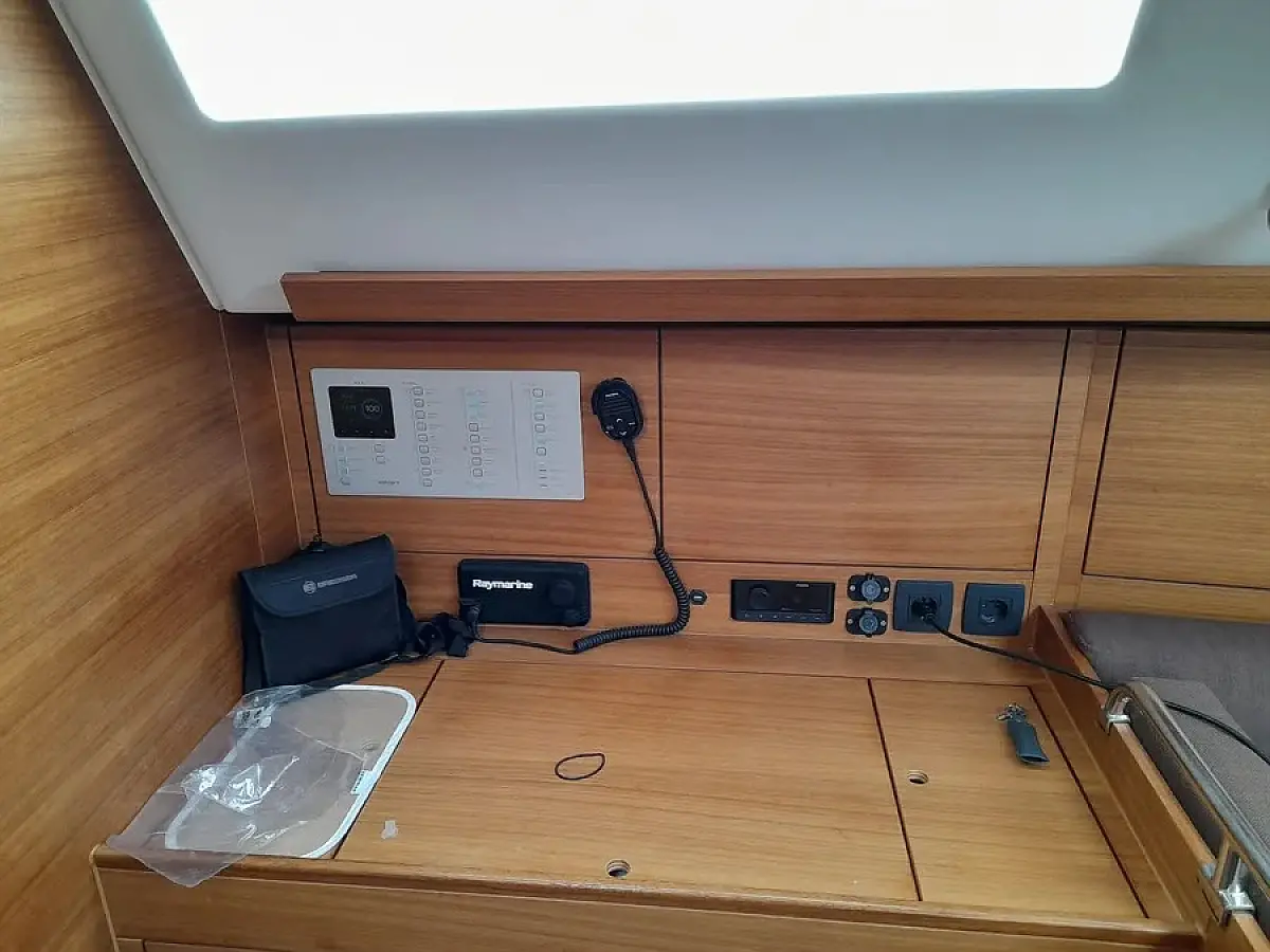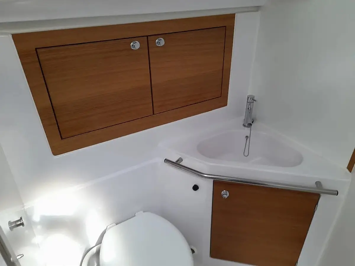 Panel Solar, Depósito de aguas residuales, Bímini, Capota antirociones, Altavoces exteriores, Embarcación auxiliar, Nevera, Cockpit cushions