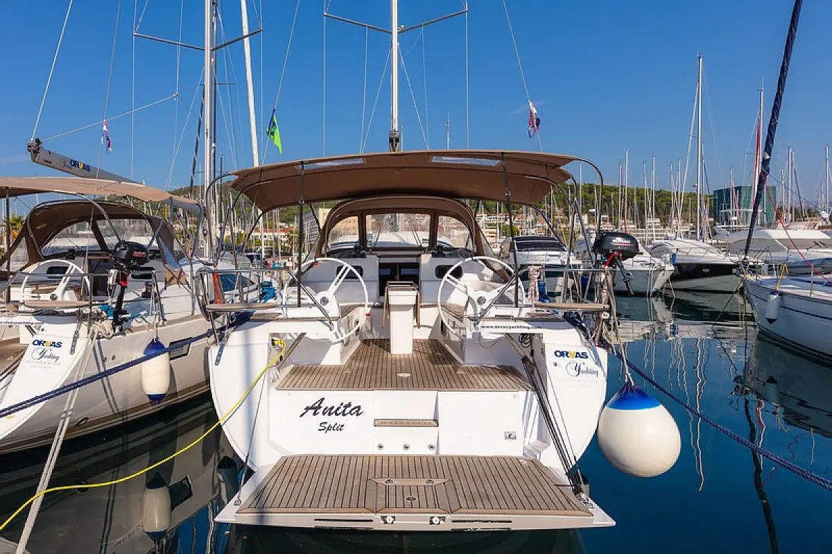 Capota antirociones, Teak Cockpit, Embarcación auxiliar, Motor fueraborda, Bímini, Panel Solar, Wi-Fi e Internet, Nevera, Depósito de aguas residuales