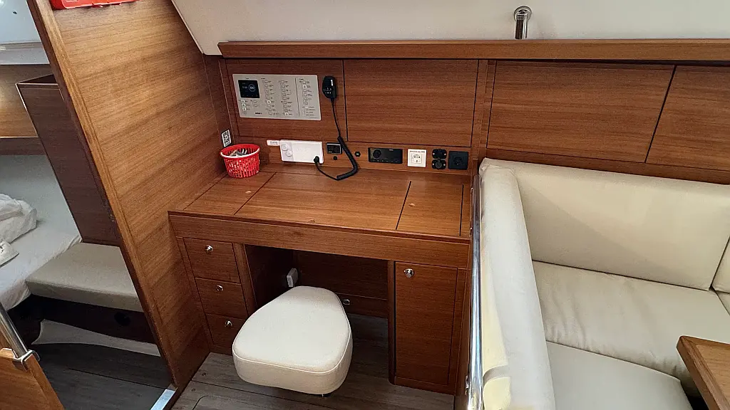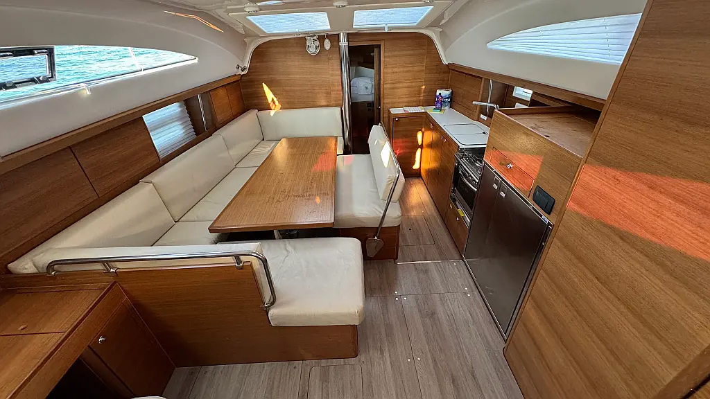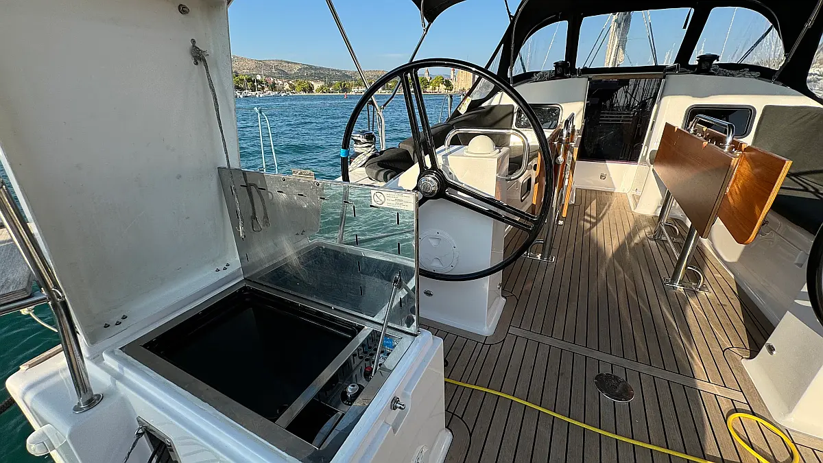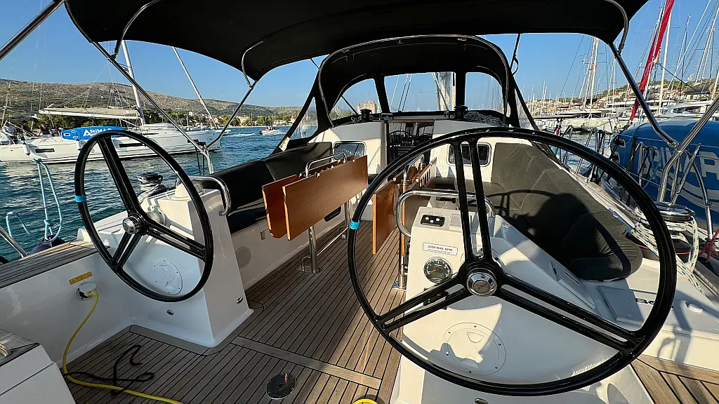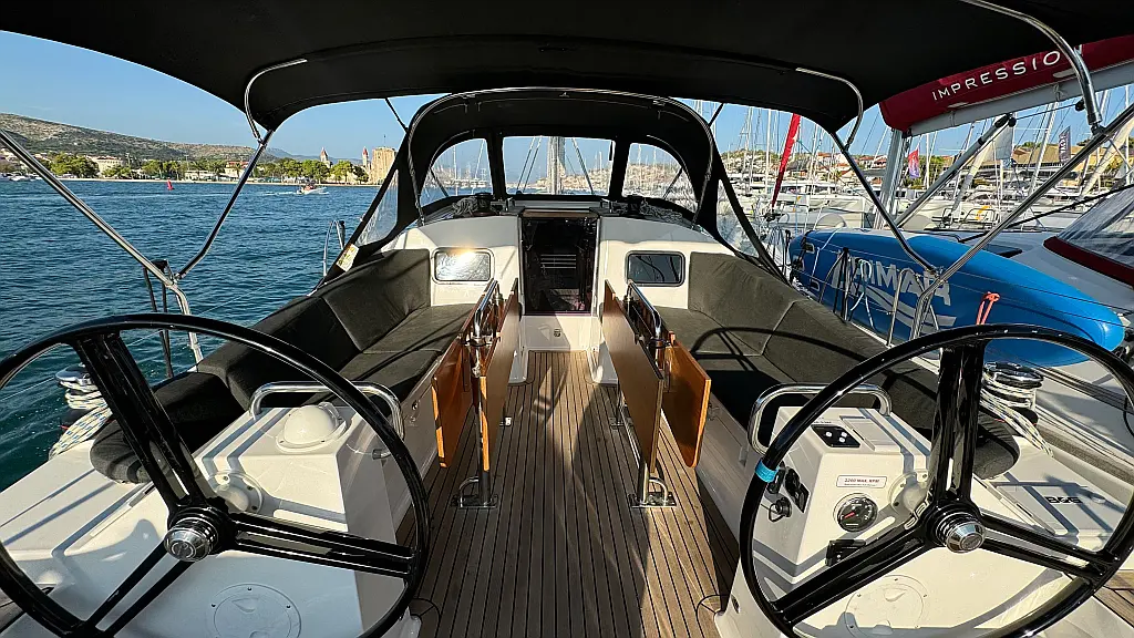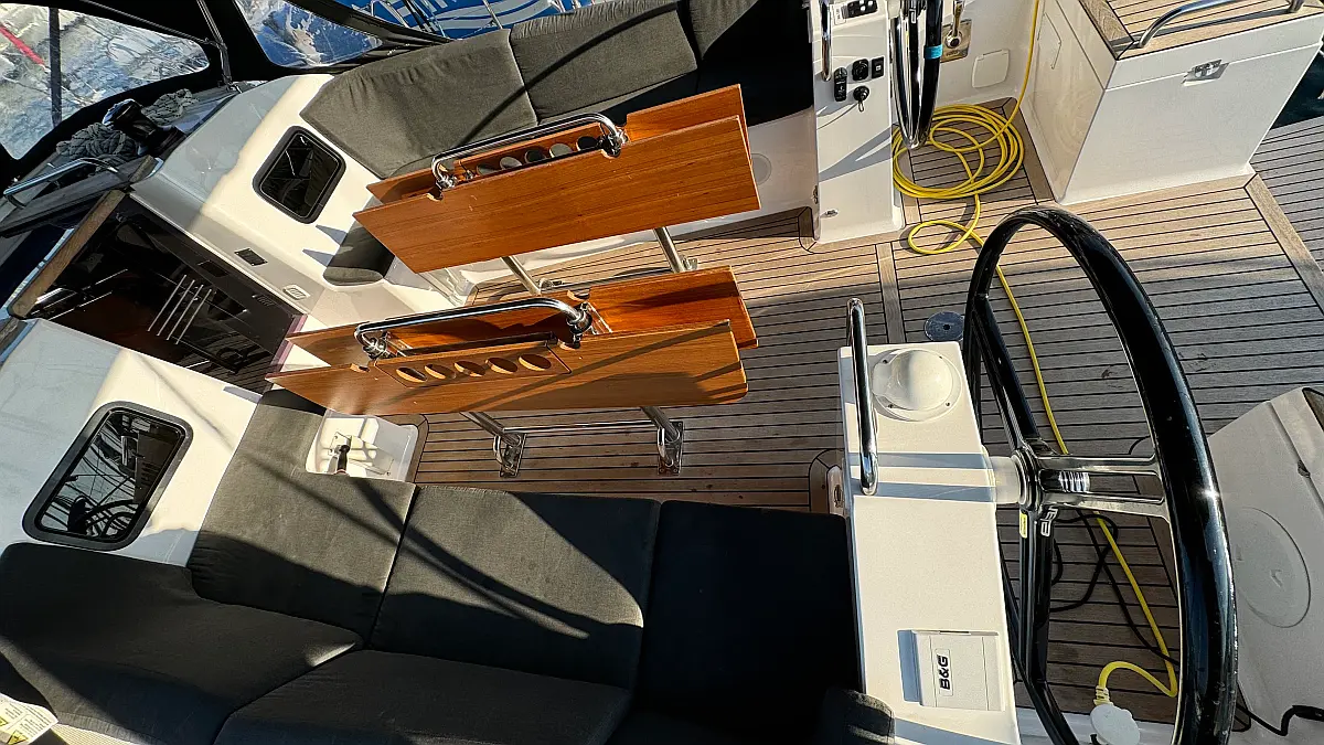 Cockpit cushions, Teak Cockpit, Capota antirociones, Bímini, Nevera, Winches eléctricos, Wi-Fi e Internet