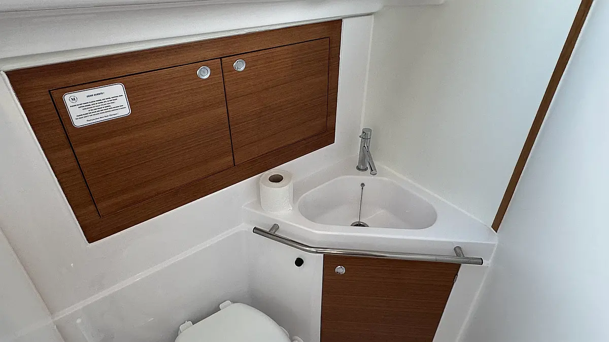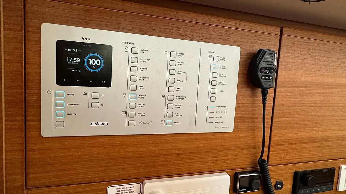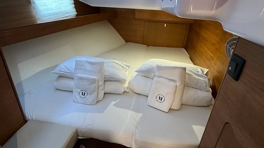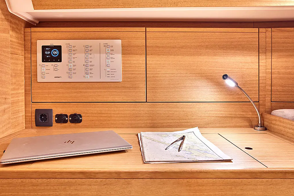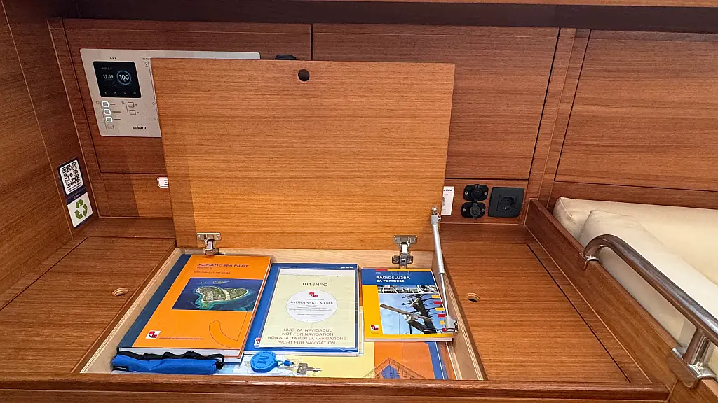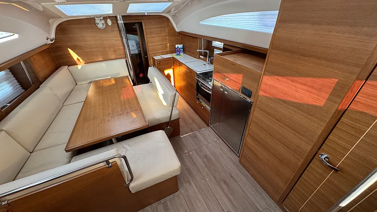 Cockpit cushions, Teak Cockpit, Capota antirociones, Bímini, Nevera, Winches eléctricos, Wi-Fi e Internet