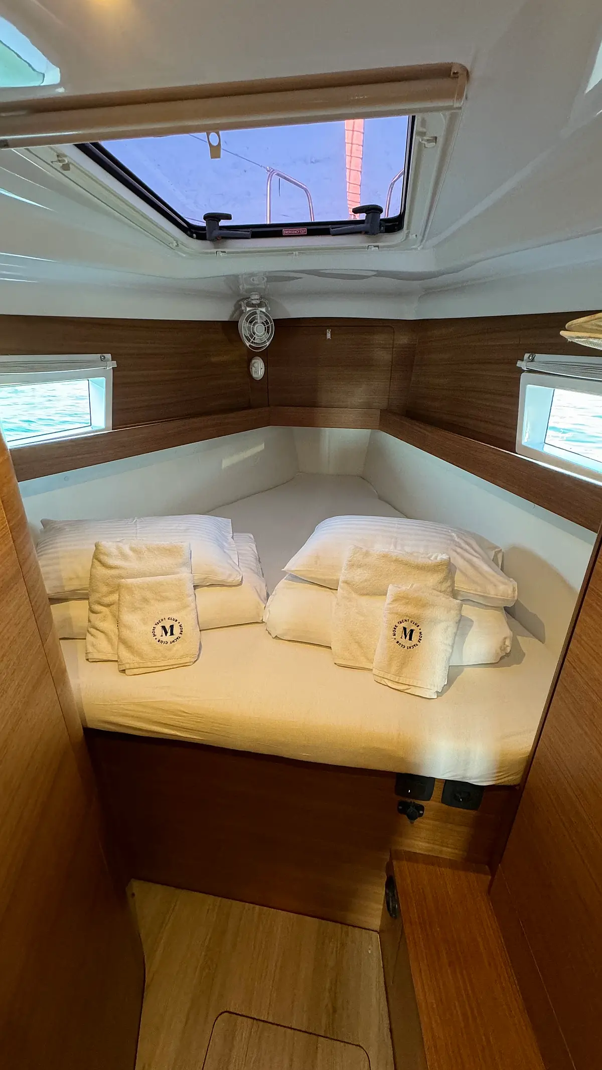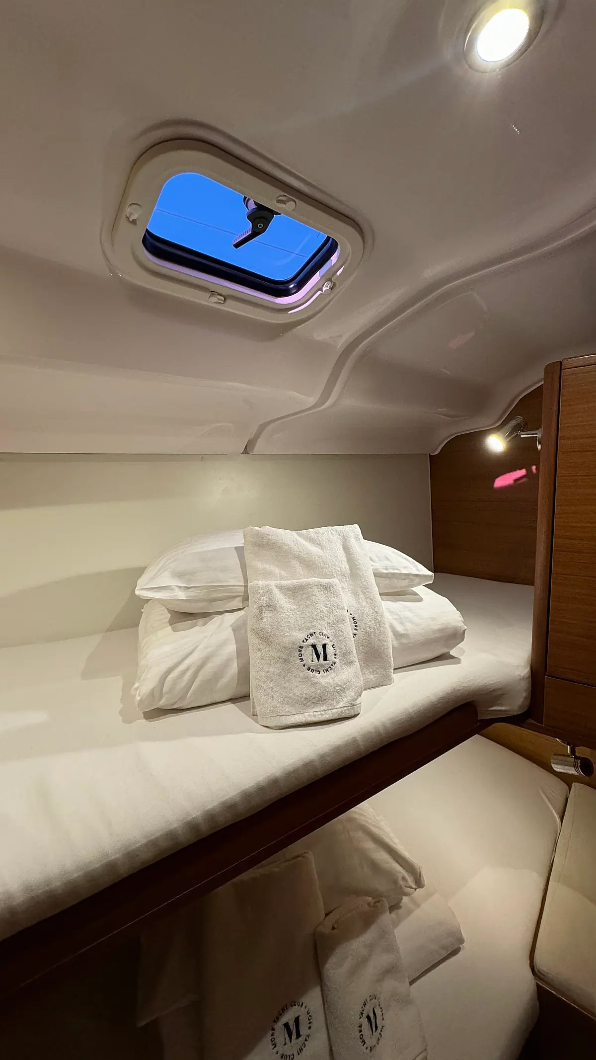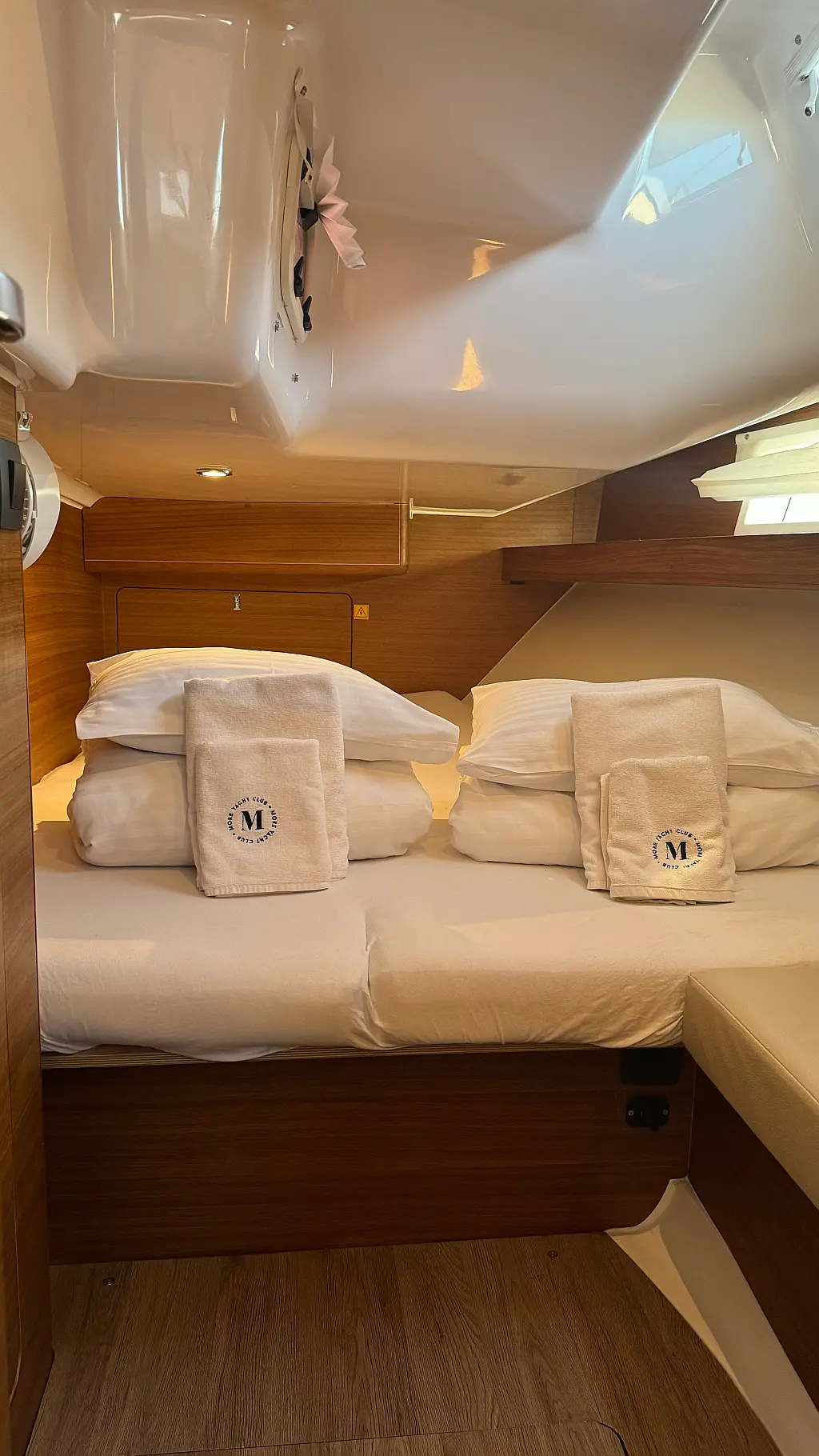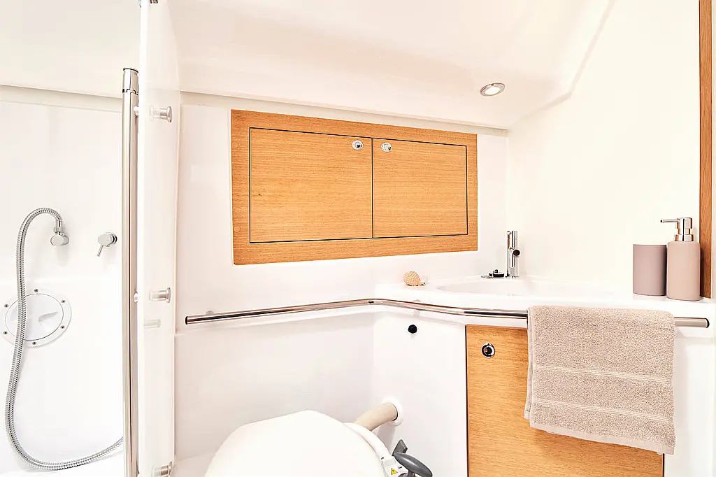 Cockpit cushions, Teak Cockpit, Capota antirociones, Bímini, Nevera, Winches eléctricos, Wi-Fi e Internet