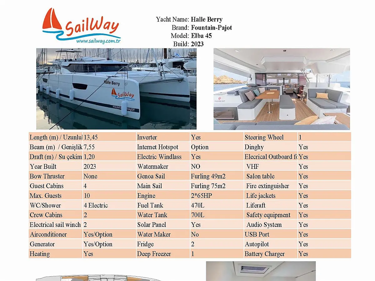 Panel Solar, Motor fueraborda, Nevera, Embarcación auxiliar, Convertidor, WC eléctrico, Calefacción, Winches eléctricos