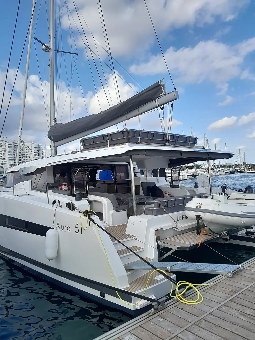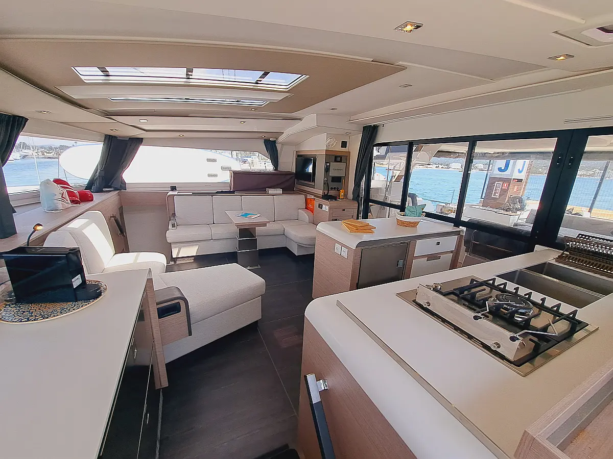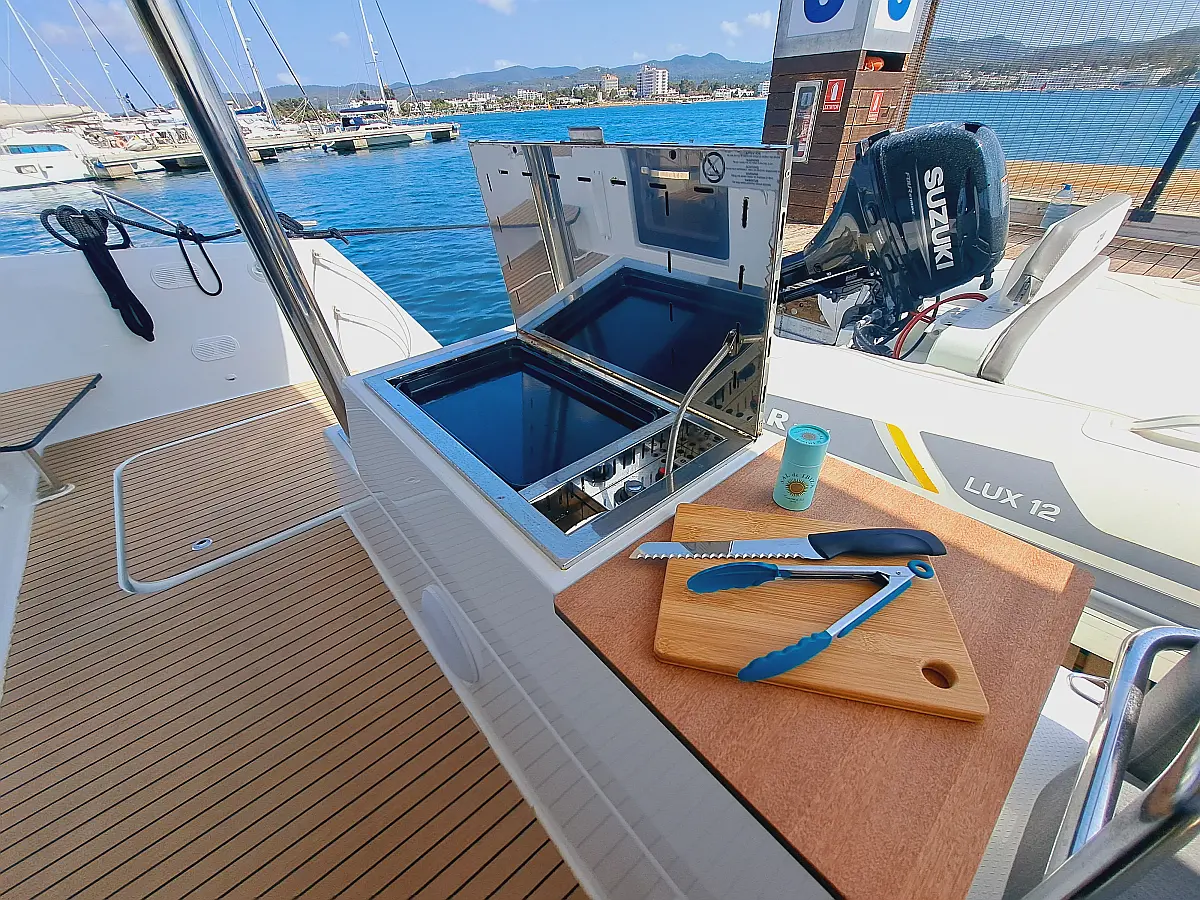 Generador, Desalinizadora, Winches eléctricos, Aire acondicionado, Altavoces exteriores, Cockpit cushions, WC eléctrico, Embarcación auxiliar, Nevera