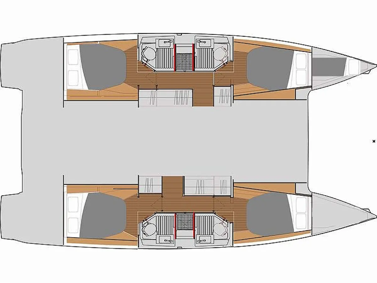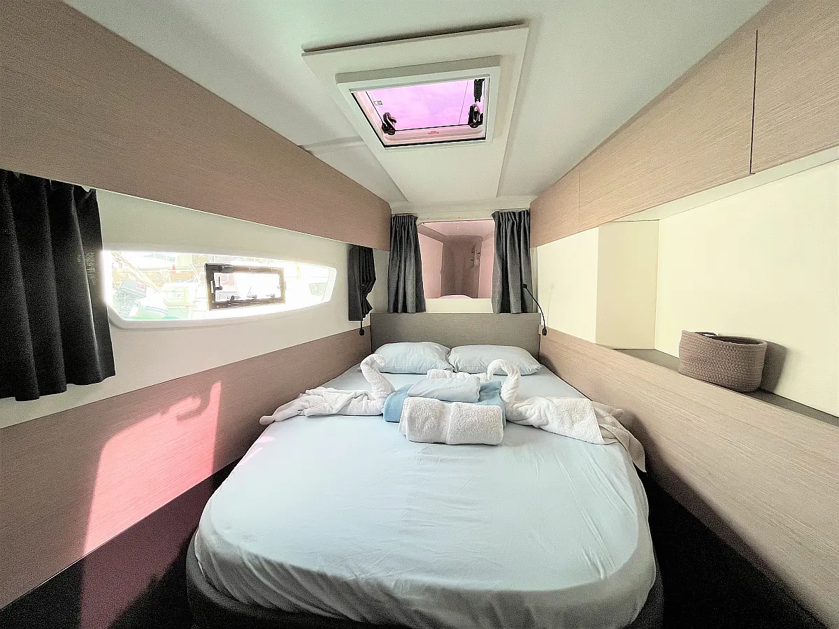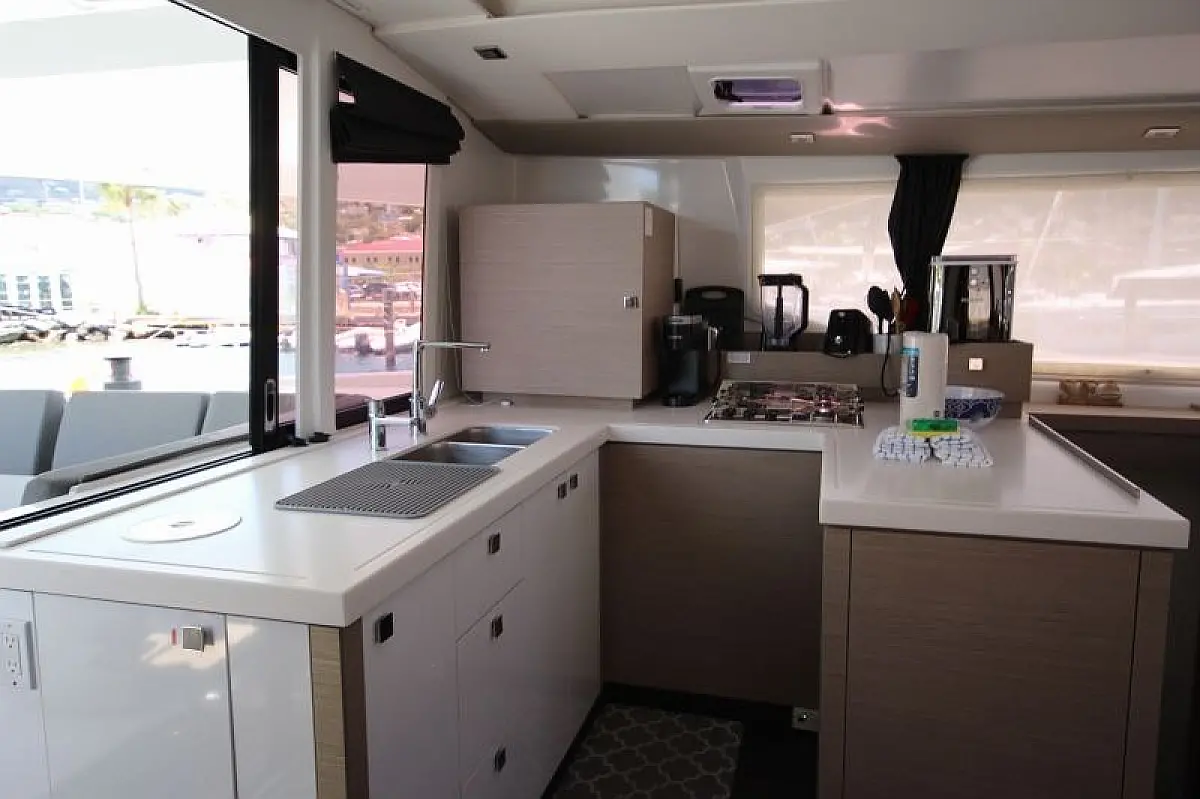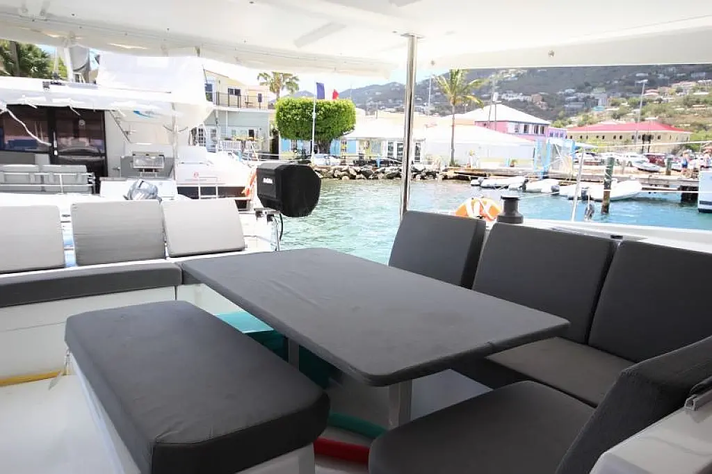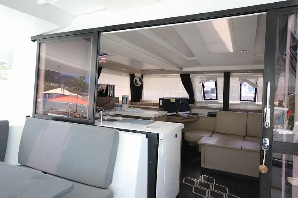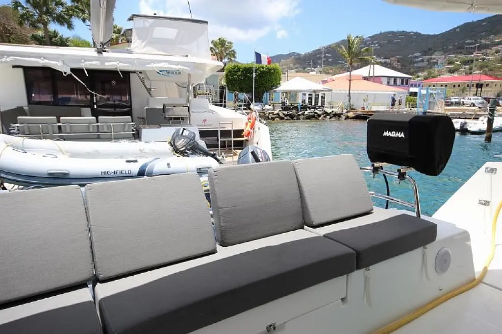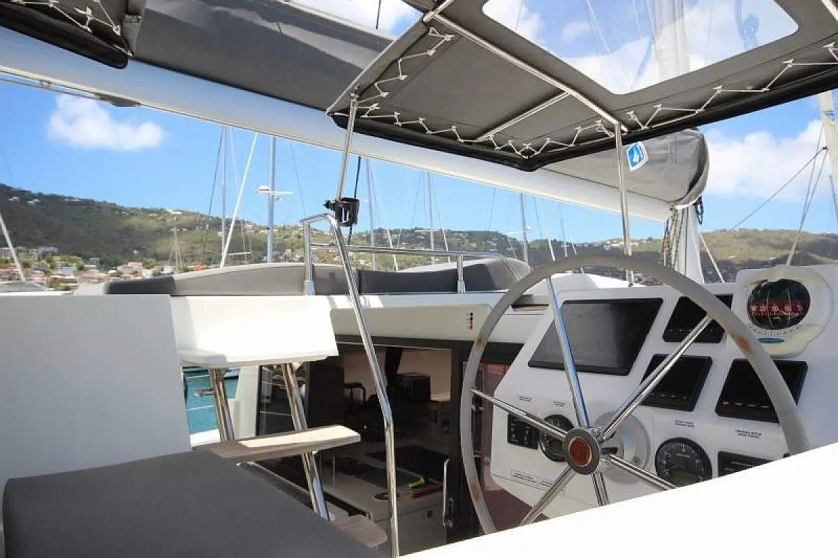 Cafetera, Nevera, Wi-Fi e Internet, Convertidor, Embarcación auxiliar, WC eléctrico, Aire acondicionado, Generador, Cockpit cushions, Panel Solar, Altavoces exteriores, Bímini