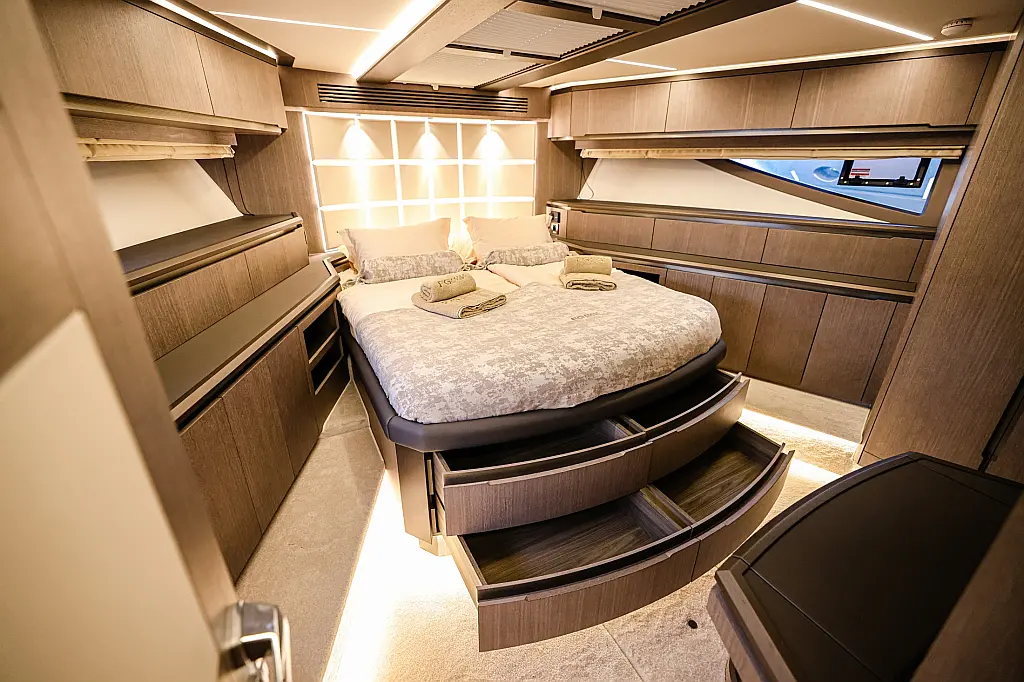 Wi-Fi e Internet, Embarcación auxiliar, Bímini, WC eléctrico, Generador, Convertidor, Desalinizadora, Teak Cockpit, Cubierta de teca, Parrilla en carlinga, Máquina de hielo, Cafetera, Nevera