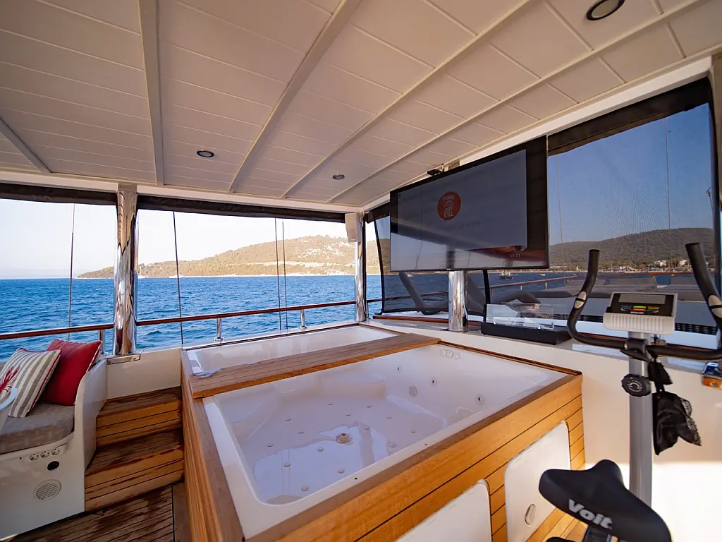 Generador, Aire acondicionado, Wi-Fi e Internet, Lavavajillas, Cafetera, Máquina de hielo, Cubierta de teca, Embarcación auxiliar