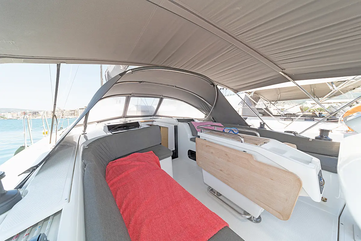 Capota antirociones, Bímini, Embarcación auxiliar, WC eléctrico, Nevera, Cockpit cushions, Panel Solar, Altavoces exteriores