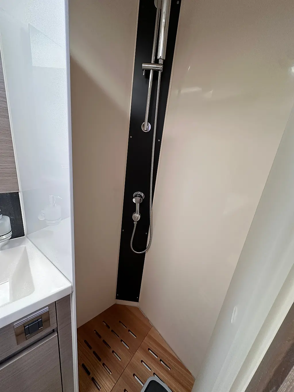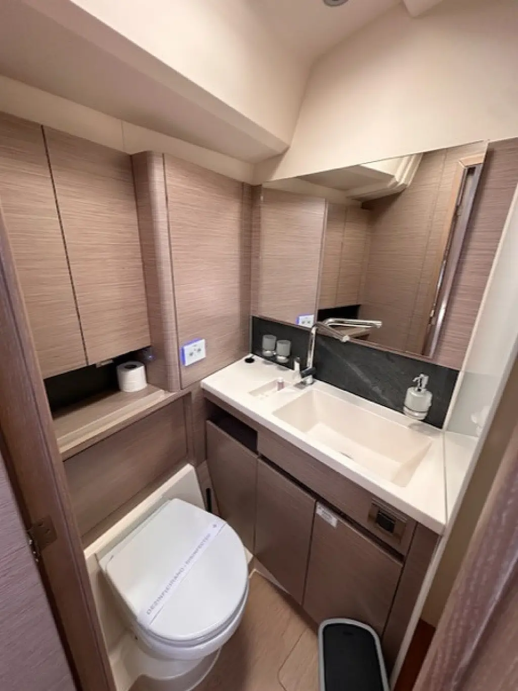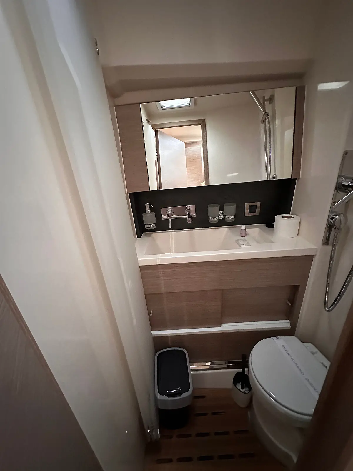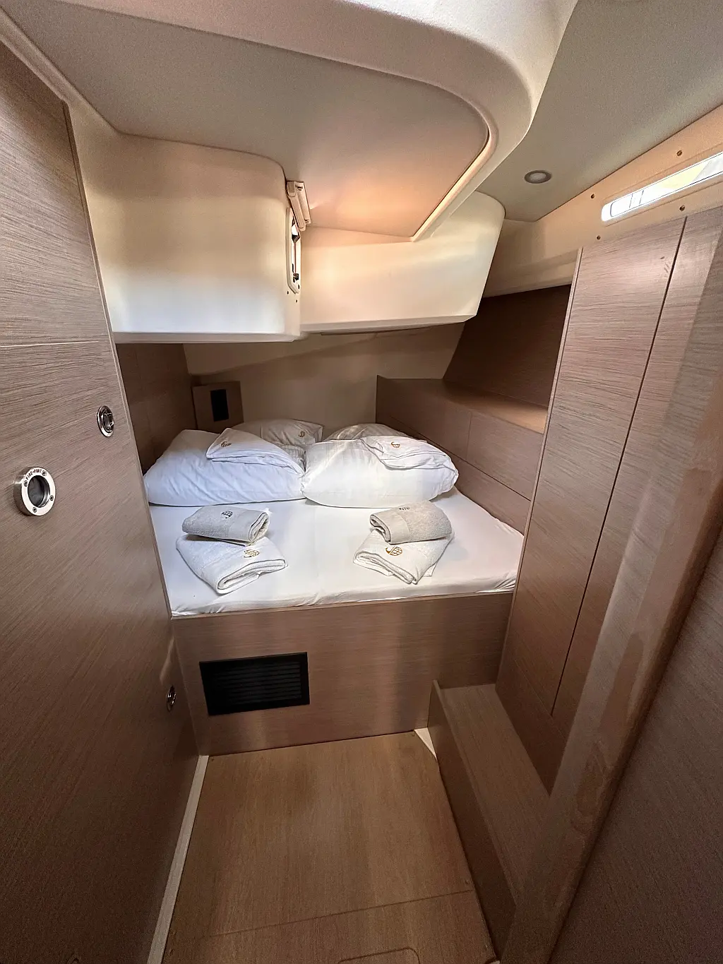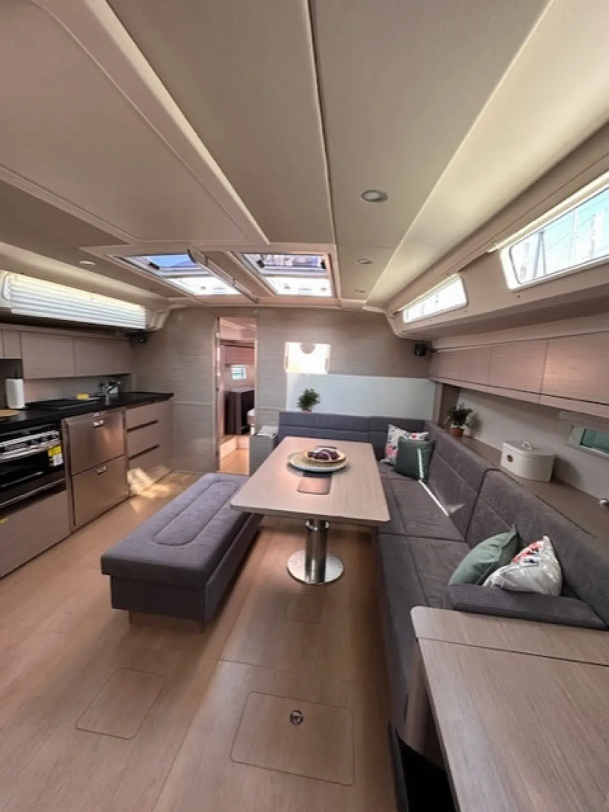 Cockpit cushions, Bímini, Embarcación auxiliar, Capota antirociones, Wi-Fi e Internet, Nevera, Cafetera, WC eléctrico, Generador, Convertidor, Calefacción, Aire acondicionado