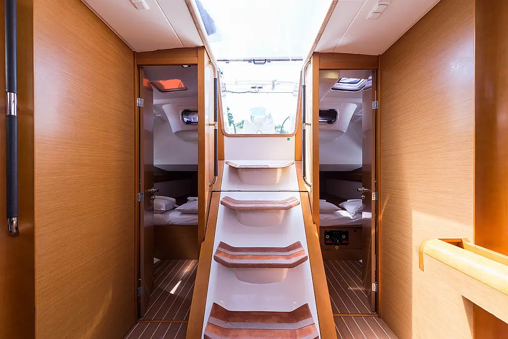 Depósito de aguas residuales, Capota antirociones, Embarcación auxiliar, Altavoces exteriores, WC eléctrico, Panel Solar, Cockpit cushions, Teak Cockpit
