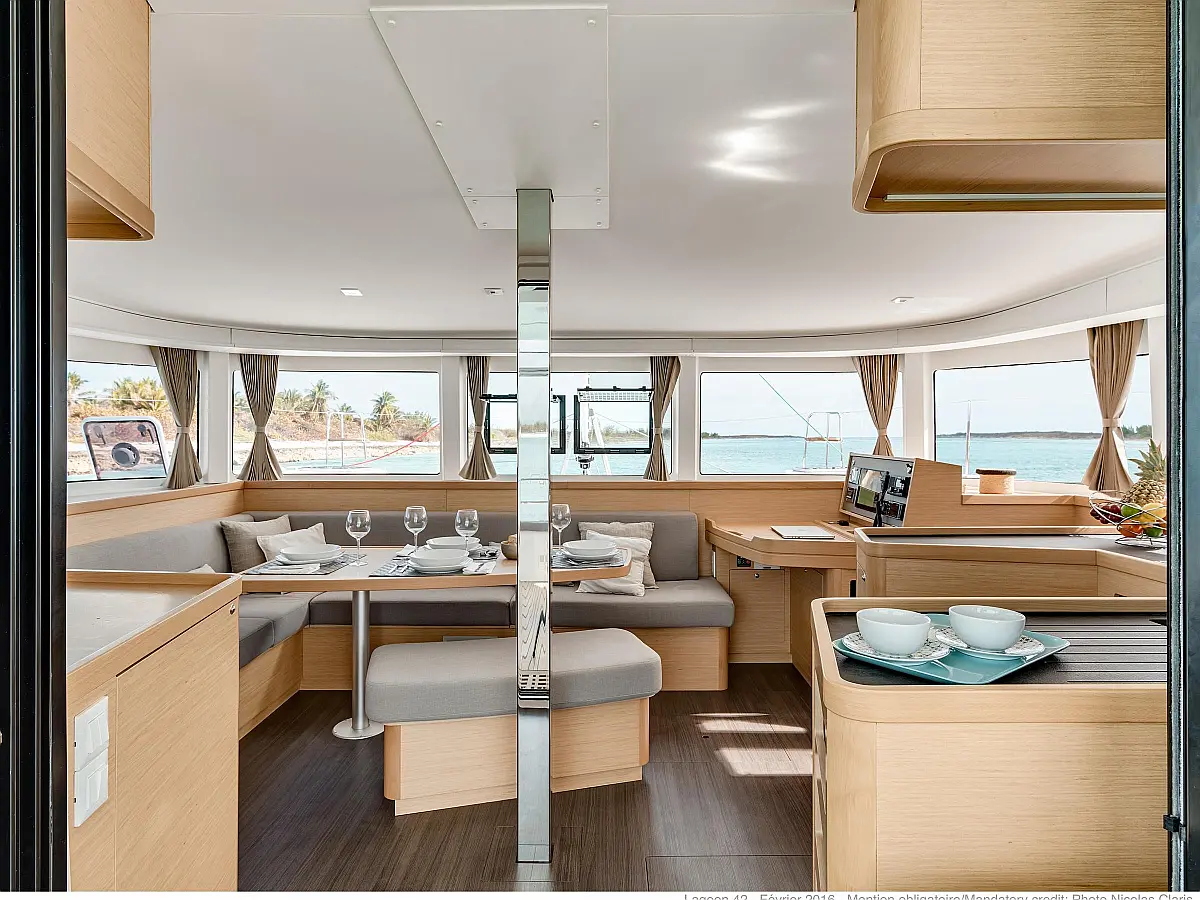 Nevera, Desalinizadora, Bímini, Embarcación auxiliar, Motor fueraborda, Cubierta de teca, Panel Solar