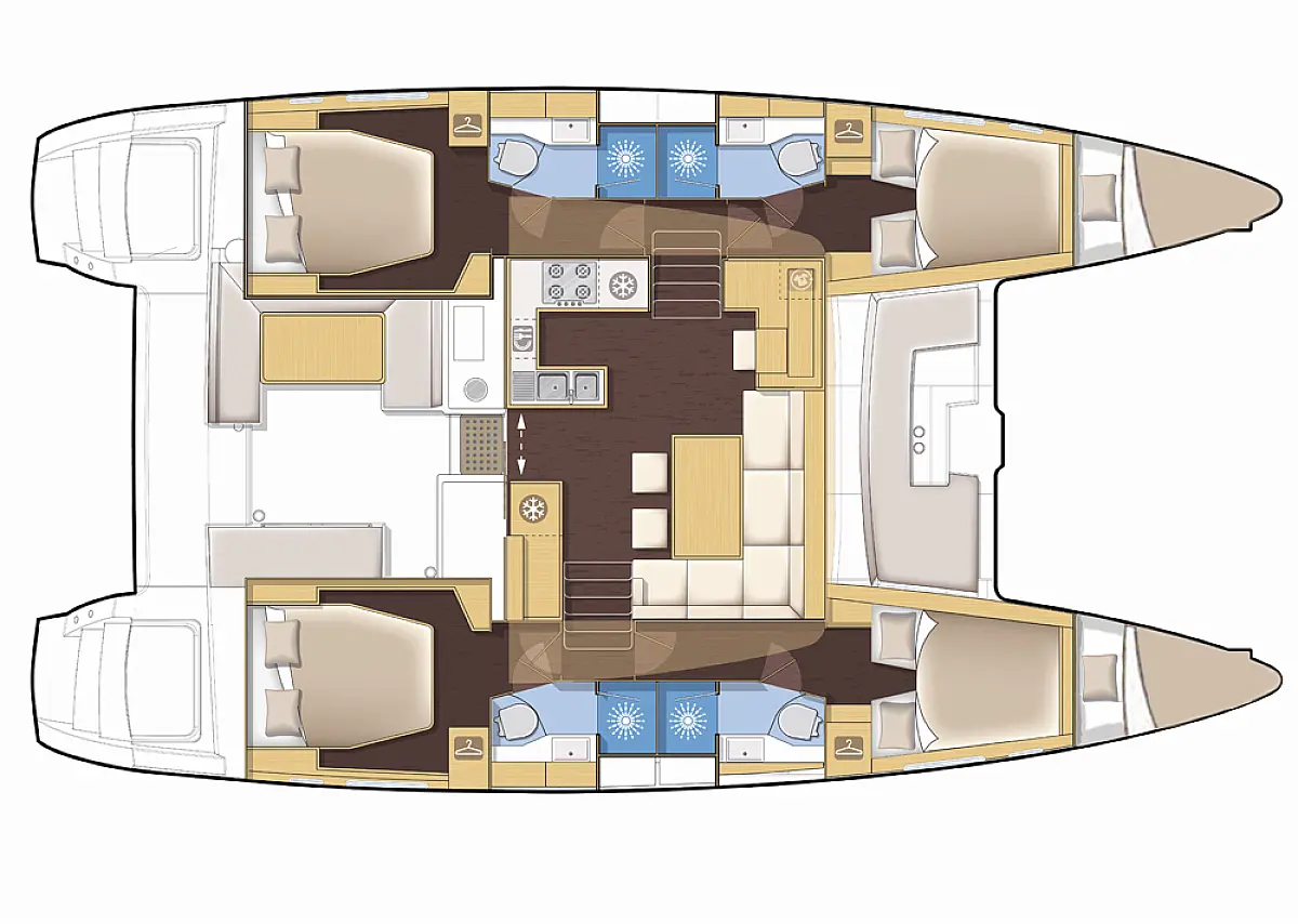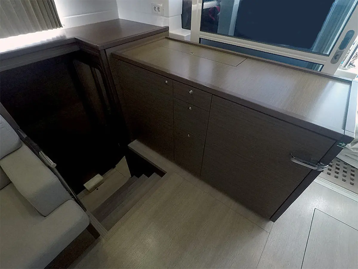 Generador, Calefacción, Desalinizadora, Aire acondicionado, Nevera, Bímini, Cockpit cushions, Motor fueraborda, Embarcación auxiliar, Wi-Fi e Internet
