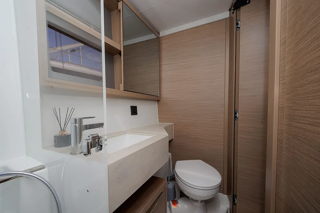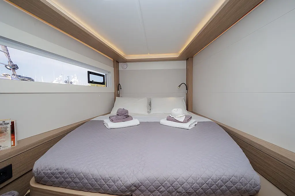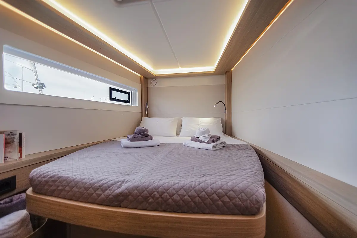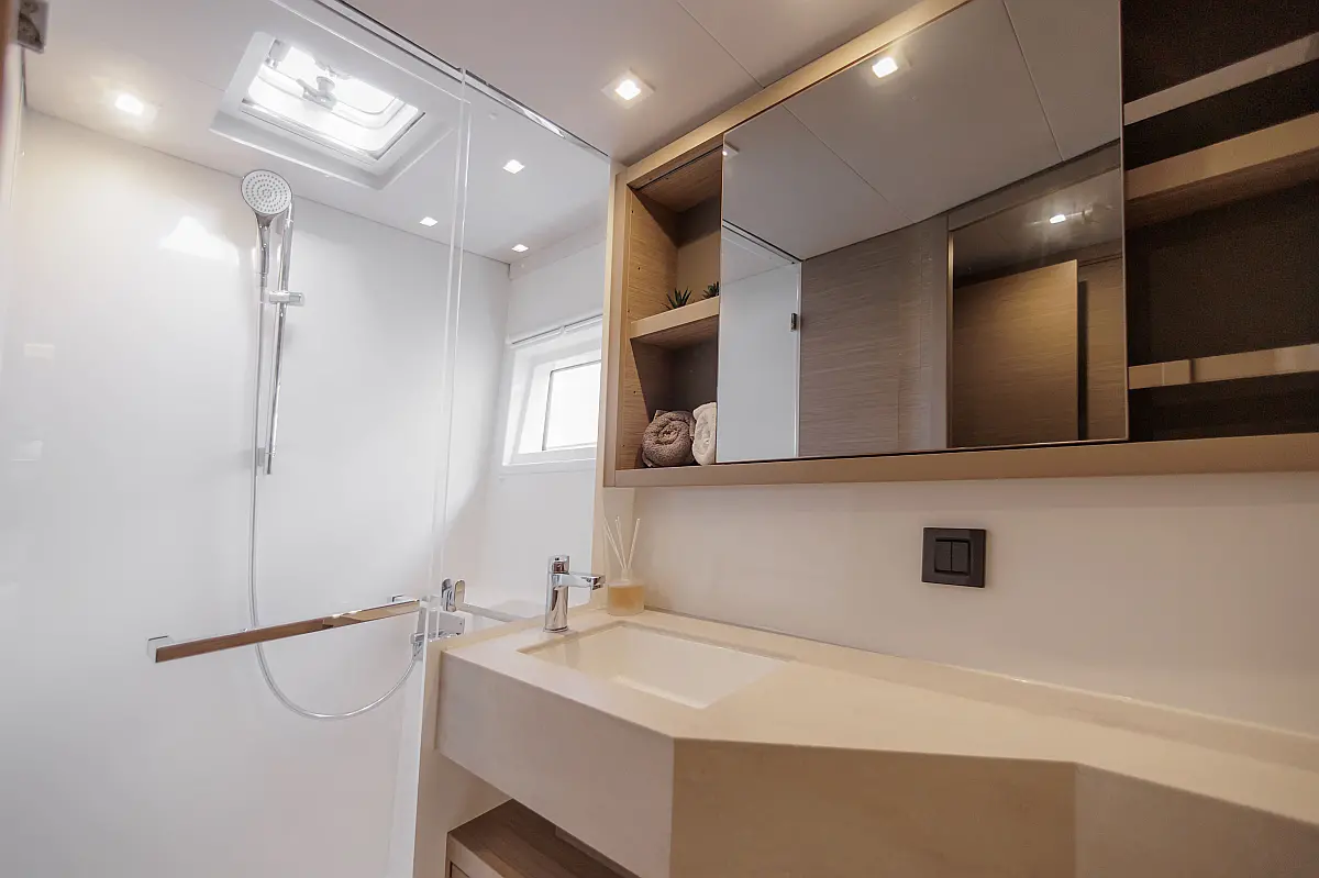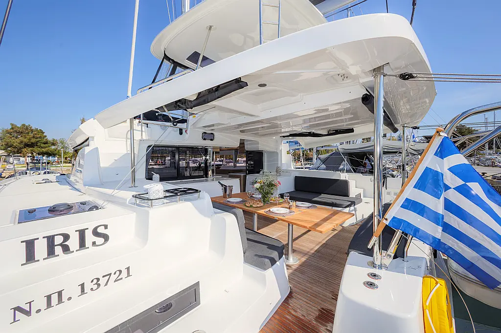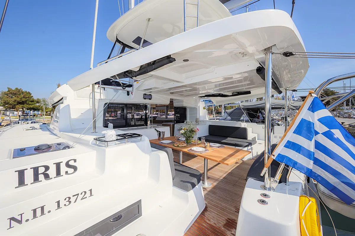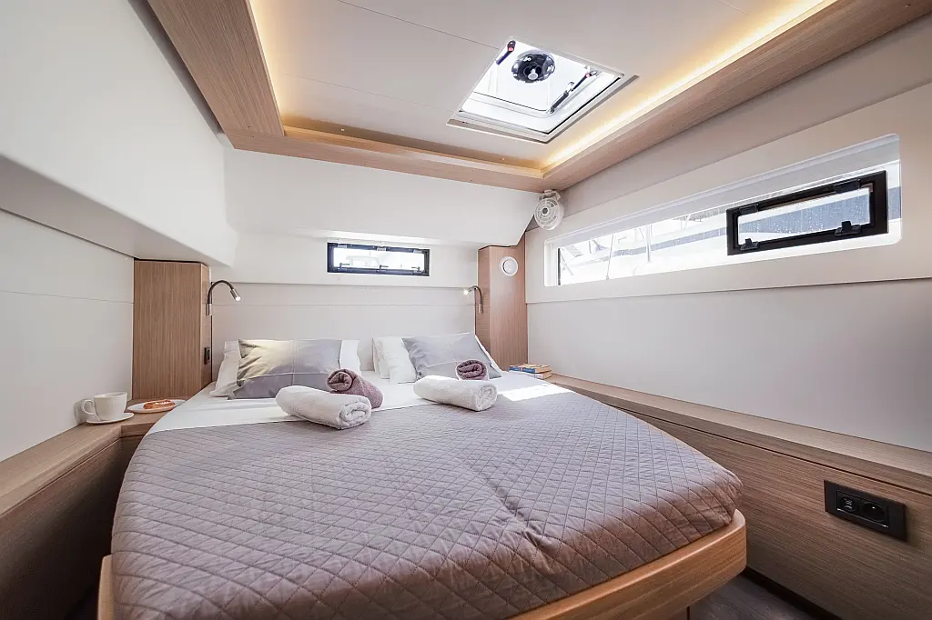 Nevera, Cafetera, Flybridge, Panel Solar, Generador, Calefacción, Aire acondicionado, Desalinizadora, Winches eléctricos, Bímini, Altavoces exteriores, Embarcación auxiliar