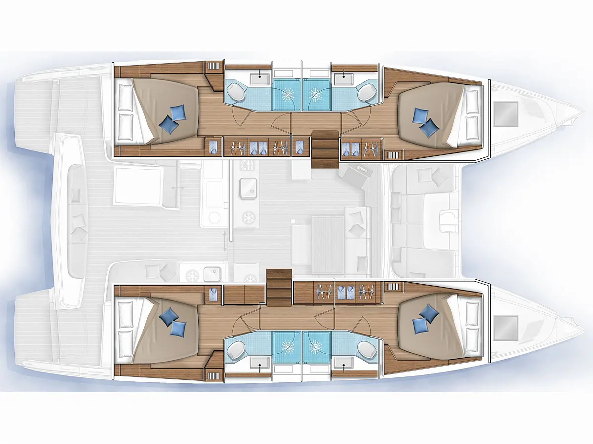 Aire acondicionado, Generador, Convertidor, Desalinizadora, Bímini, Cockpit cushions, Embarcación auxiliar, Nevera, Motor fueraborda, Capota antirociones