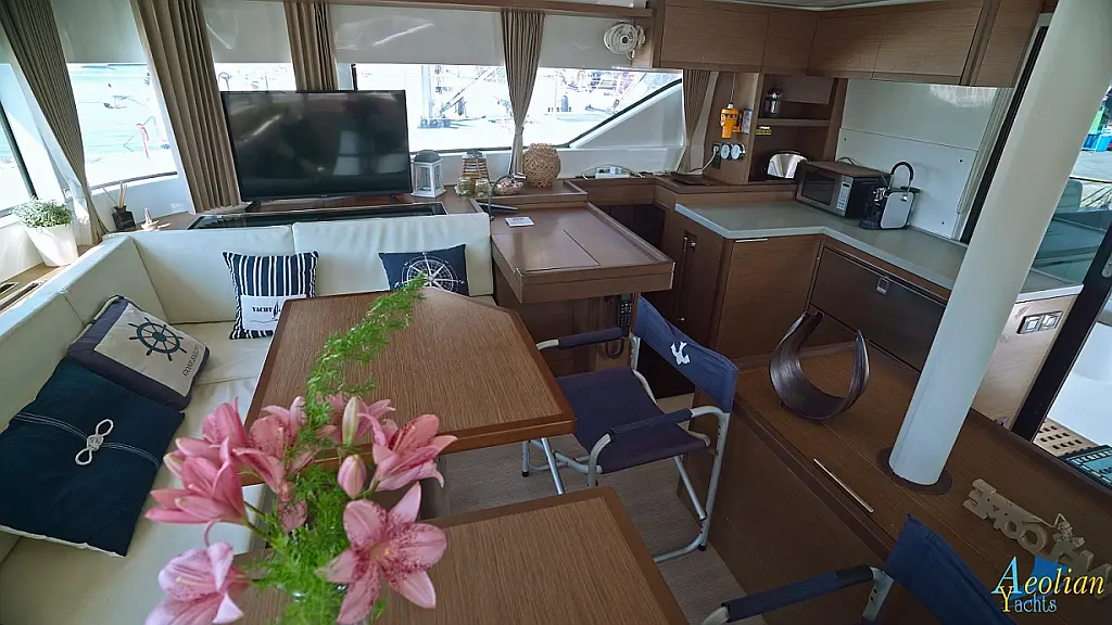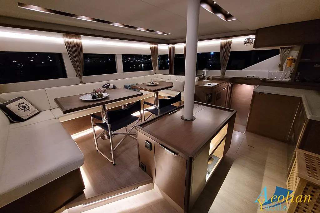 Nevera, Convertidor, Desalinizadora, WC eléctrico, Cafetera, Embarcación auxiliar, Aire acondicionado, Generador