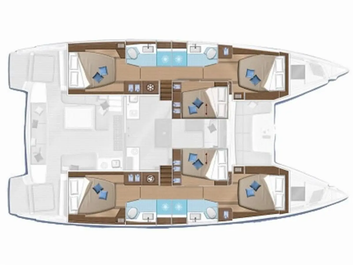6 6 double cabins + 2 single bow cabins