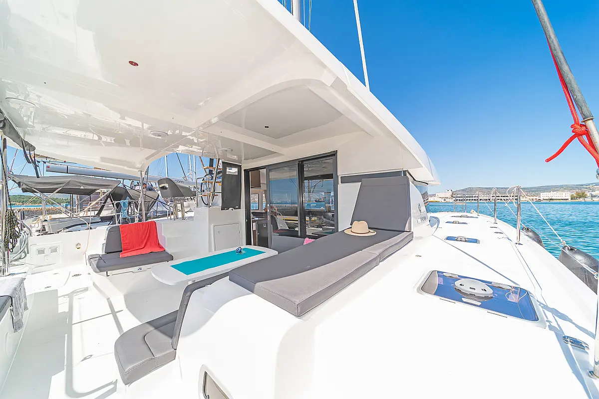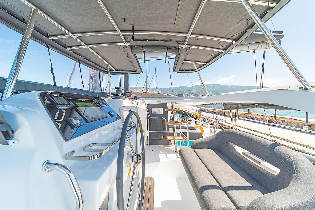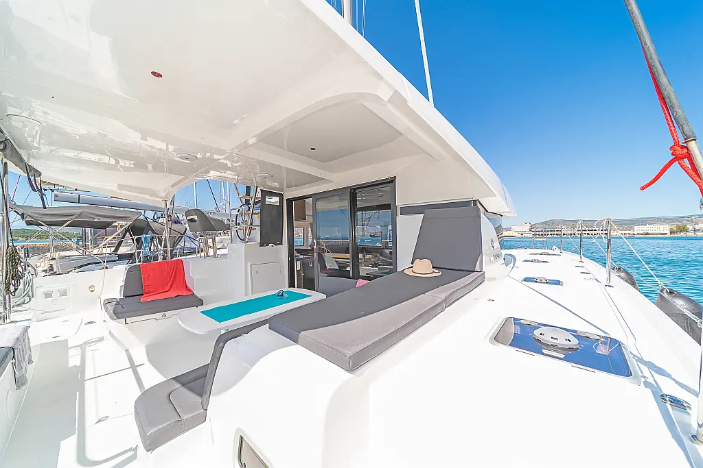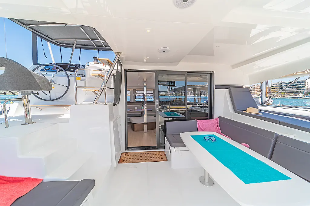 Capota antirociones, Bímini, Generador, Embarcación auxiliar, WC eléctrico, Nevera, Pasarela hidráulica, Cockpit cushions, Panel Solar, Altavoces exteriores