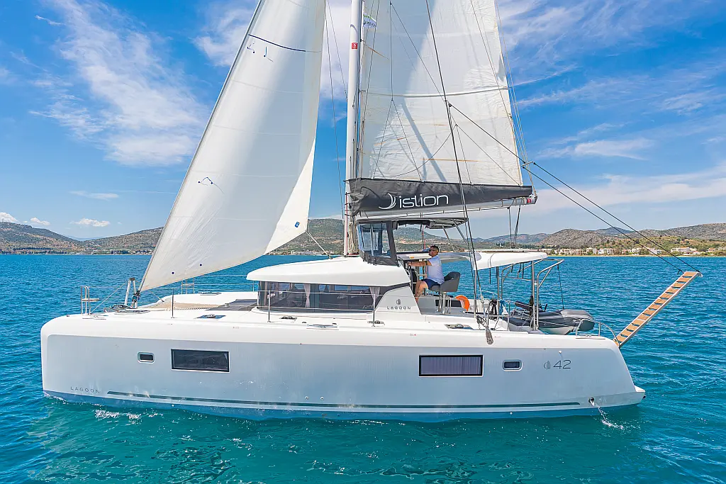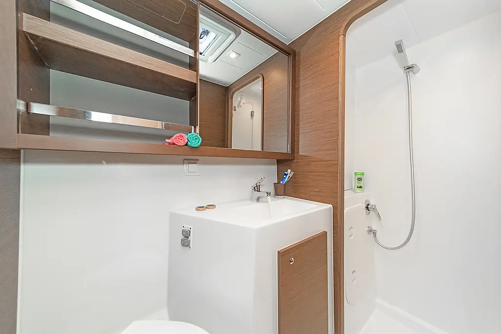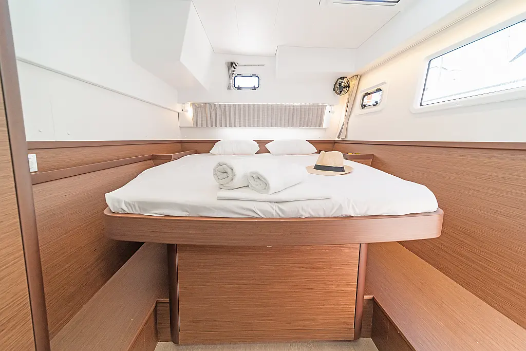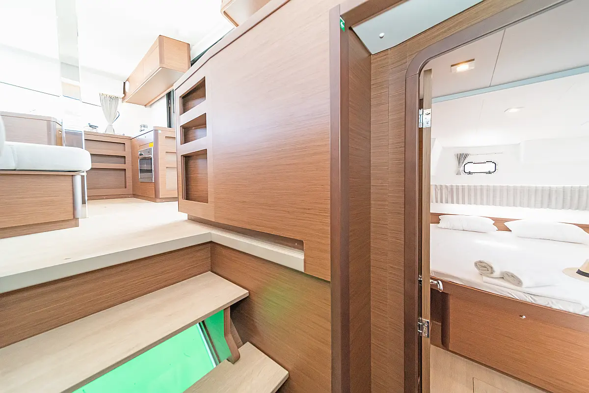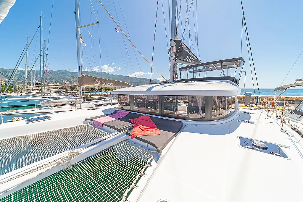 Capota antirociones, Bímini, Generador, Embarcación auxiliar, WC eléctrico, Nevera, Pasarela hidráulica, Cockpit cushions, Panel Solar, Altavoces exteriores