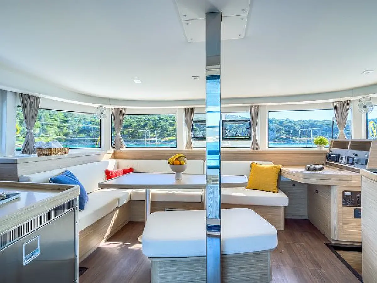 Winches eléctricos, Teak Cockpit, Embarcación auxiliar, Motor fueraborda, Panel Solar, Generador, Calefacción, Wi-Fi e Internet, Aire acondicionado, Nevera, Depósito de aguas residuales