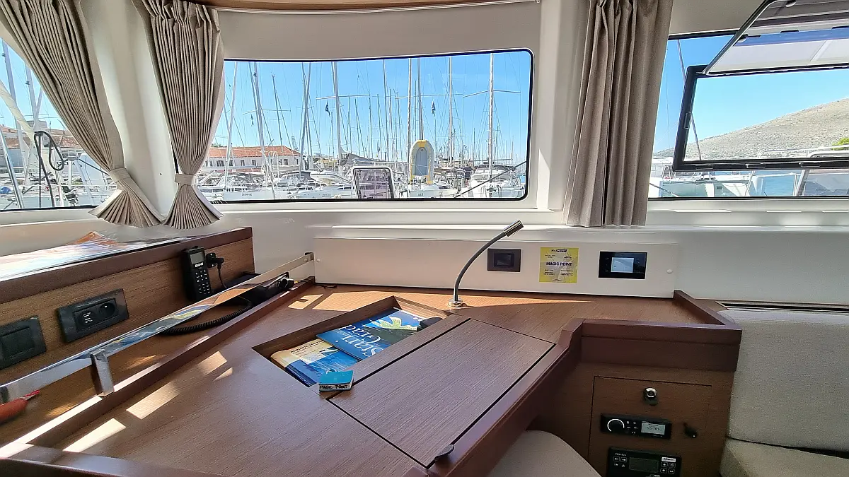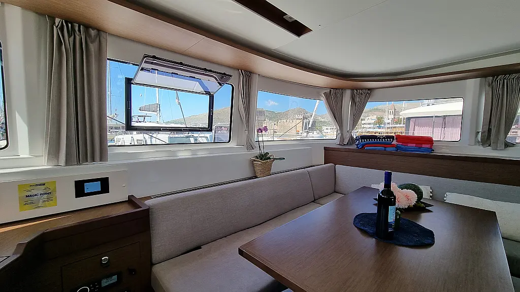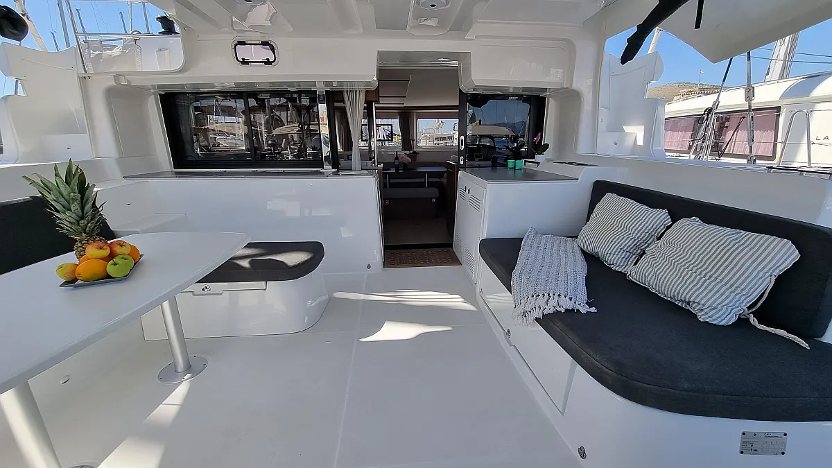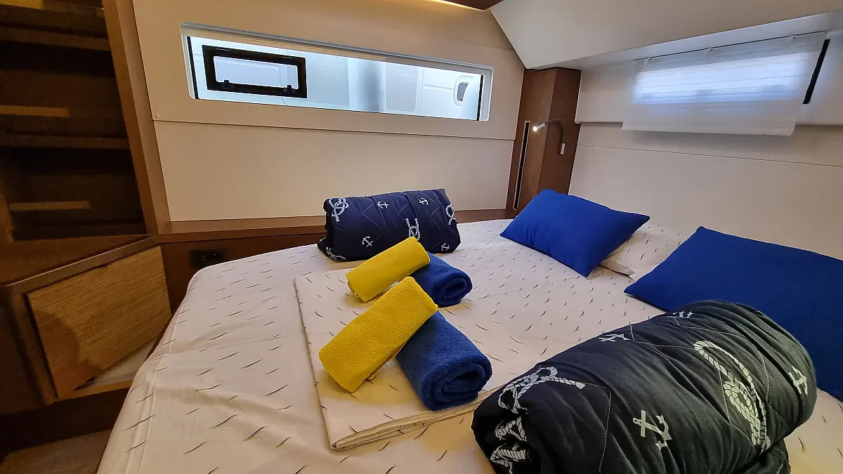 Motor fueraborda, Cafetera, Aire acondicionado, Generador, Cockpit cushions, WC eléctrico, Máquina de hielo, Winches eléctricos, Bímini, Nevera