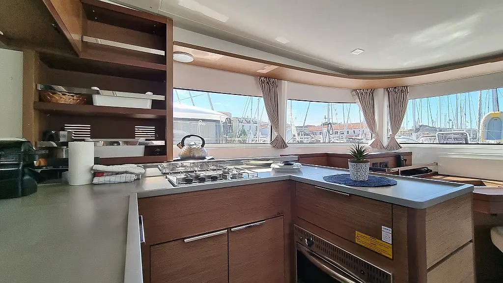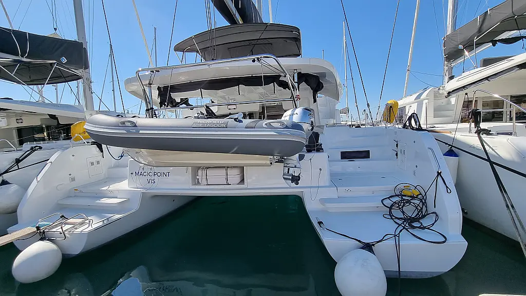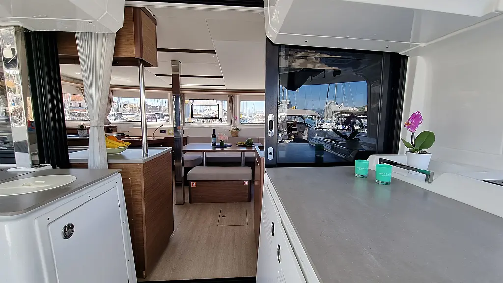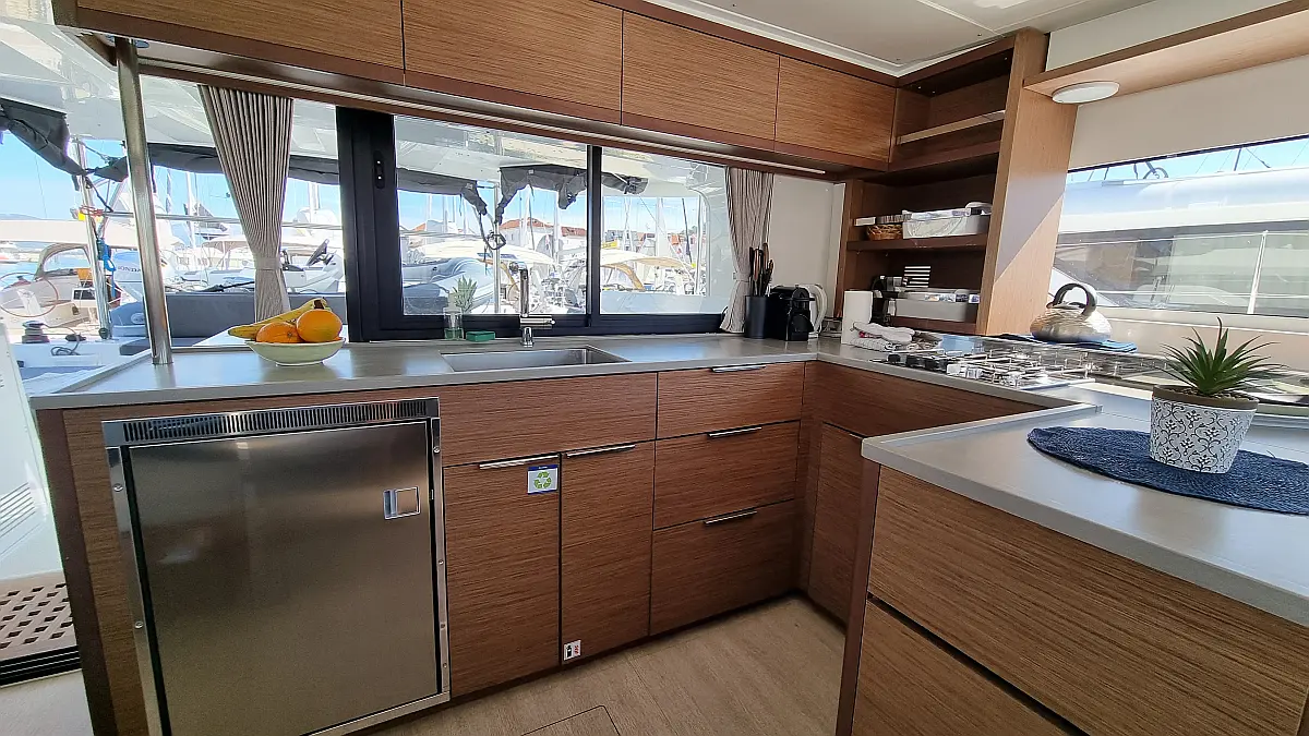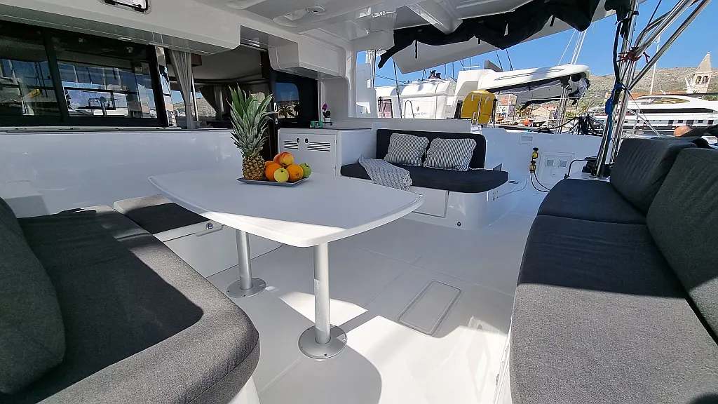Motor fueraborda, Cafetera, Aire acondicionado, Generador, Cockpit cushions, WC eléctrico, Máquina de hielo, Winches eléctricos, Bímini, Nevera