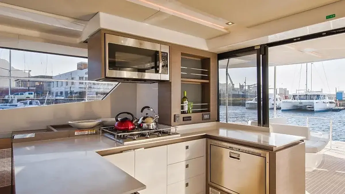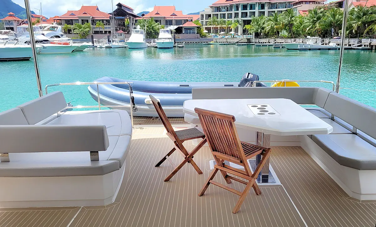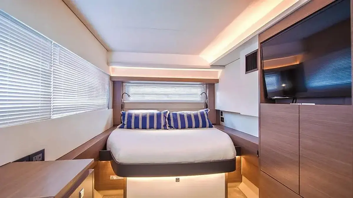 Aire acondicionado, Nevera, Máquina de hielo, Calefacción, Desalinizadora, Embarcación auxiliar, Bímini, Flybridge, Generador