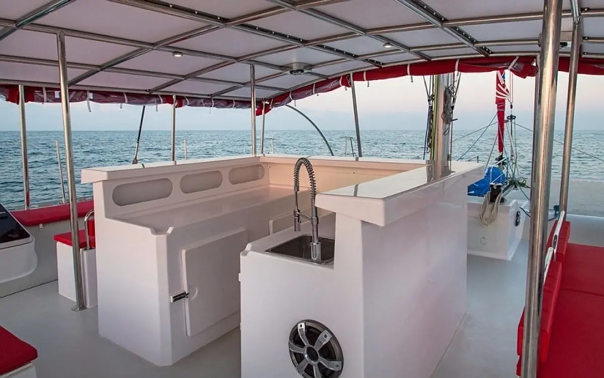 Parrilla en carlinga, Bímini, Nevera, Panel Solar, Desalinizadora