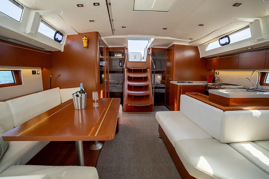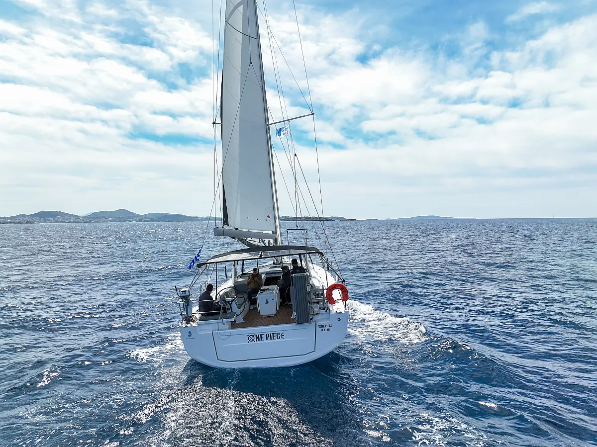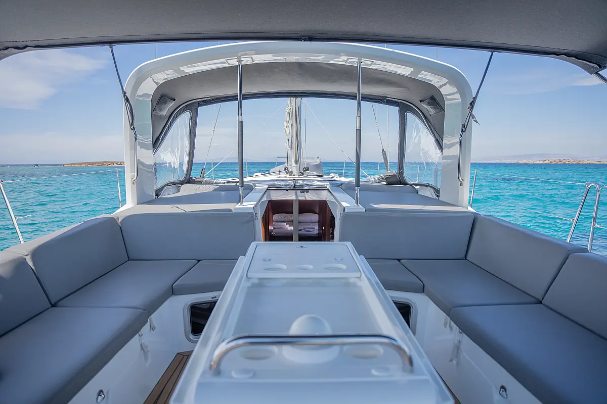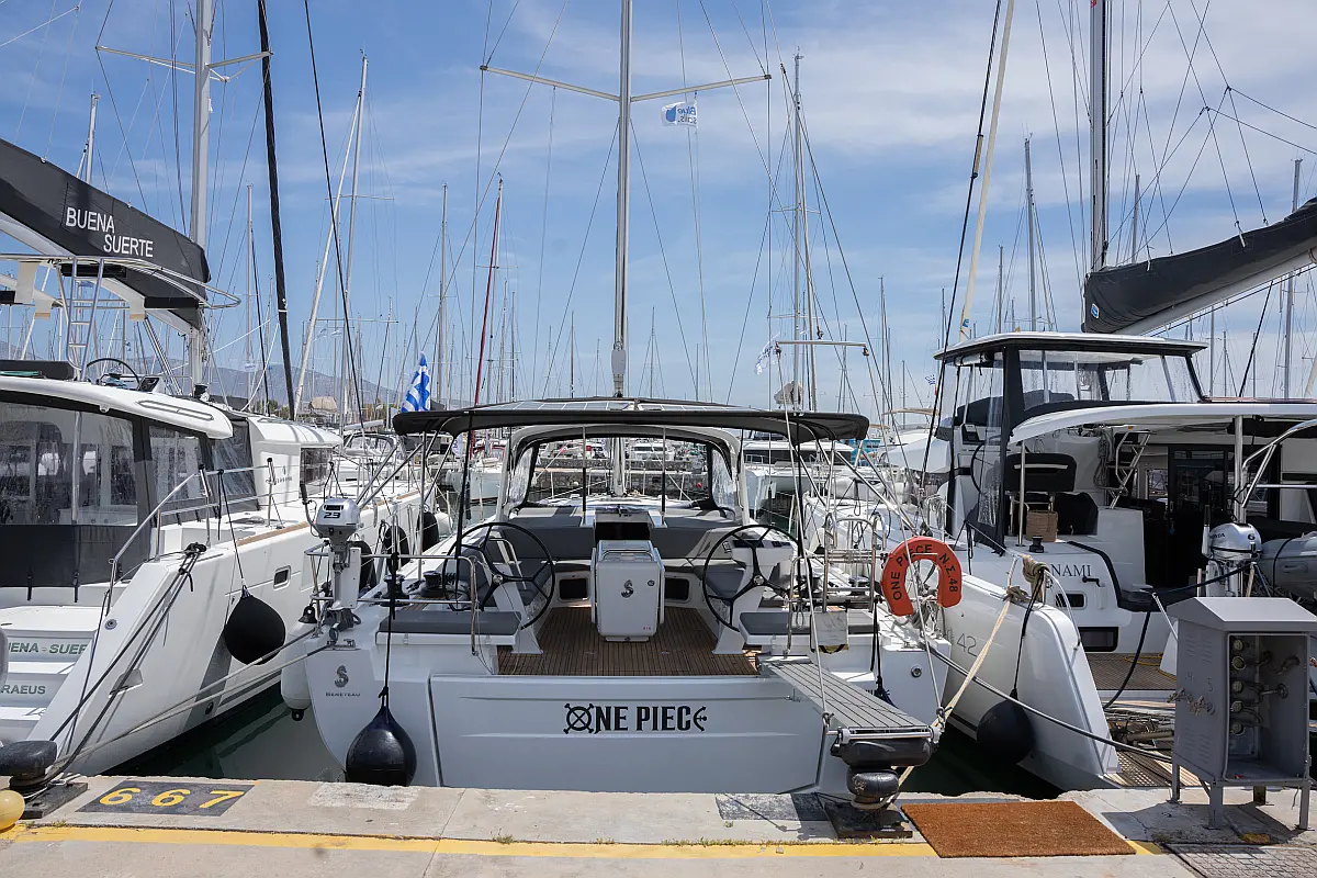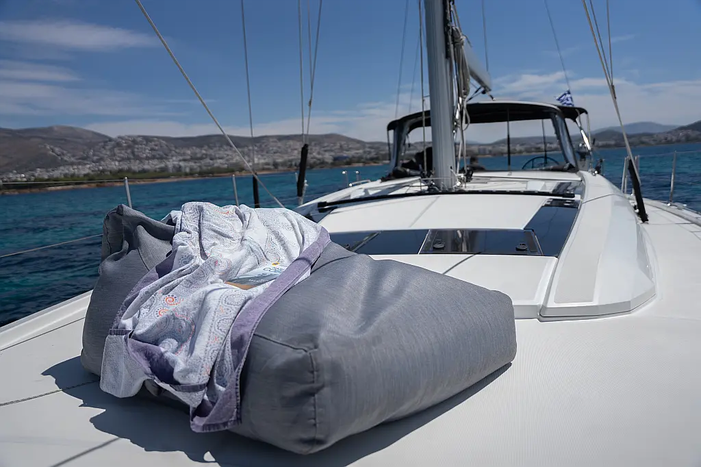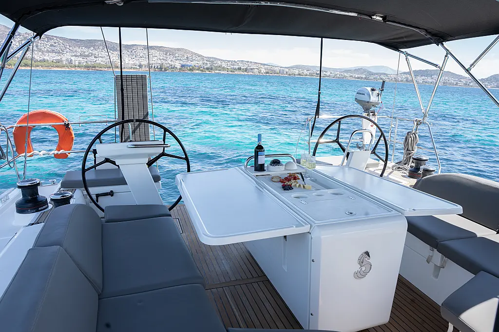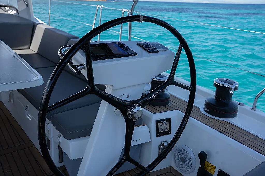 Aire acondicionado, WC eléctrico, Panel Solar, Motor fueraborda, Embarcación auxiliar, Cubierta de teca, Altavoces exteriores, Cockpit cushions