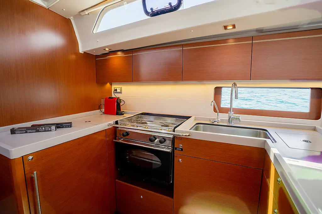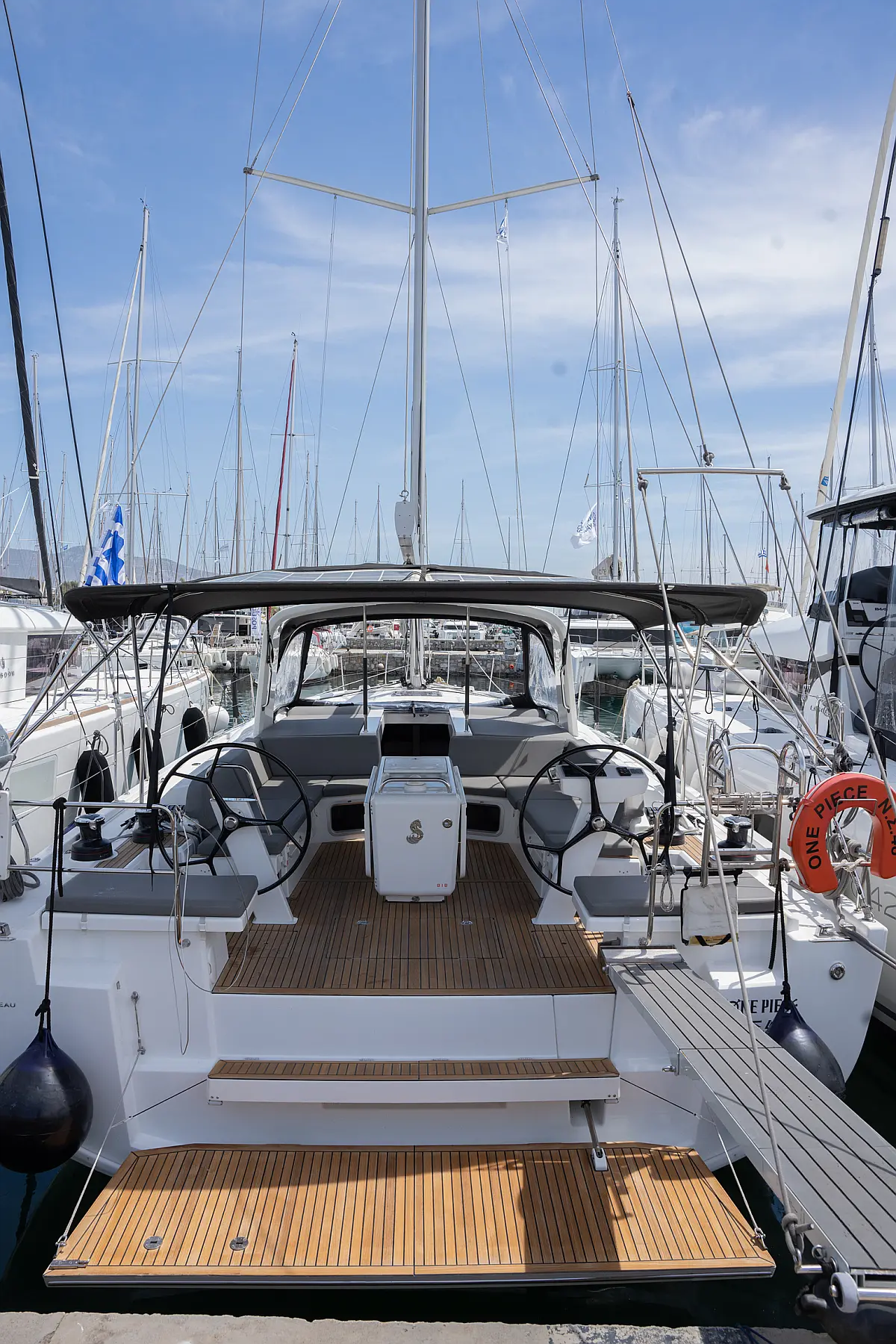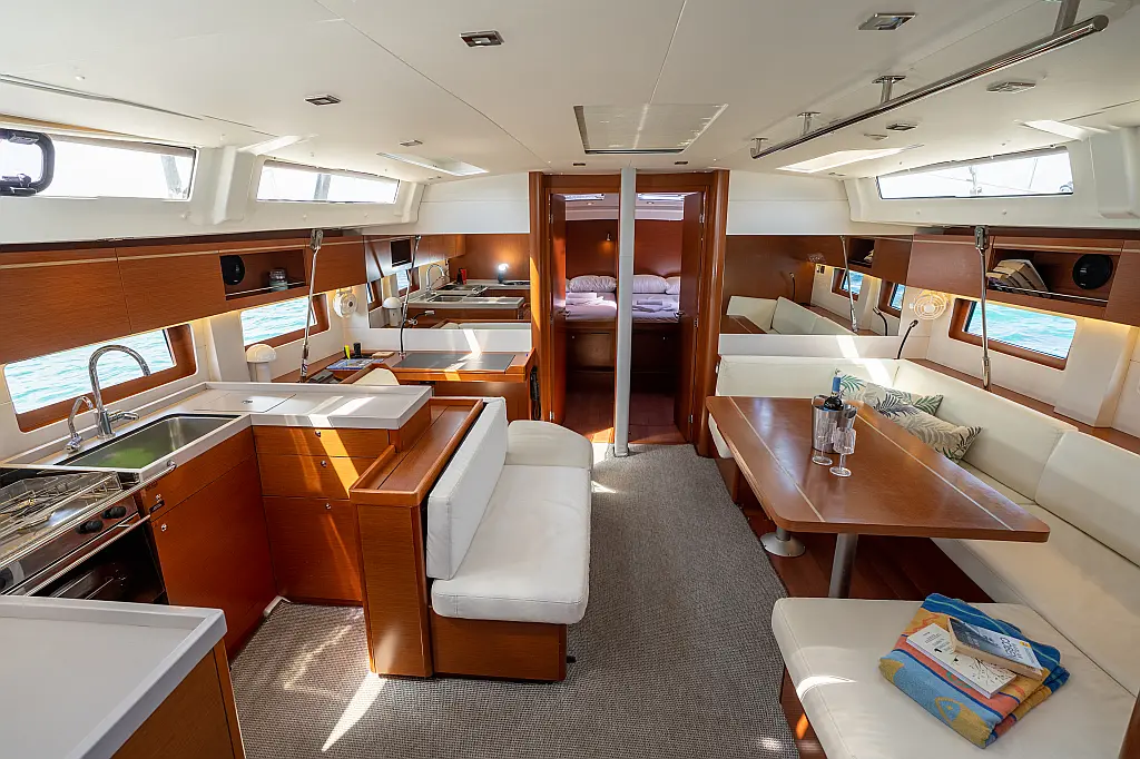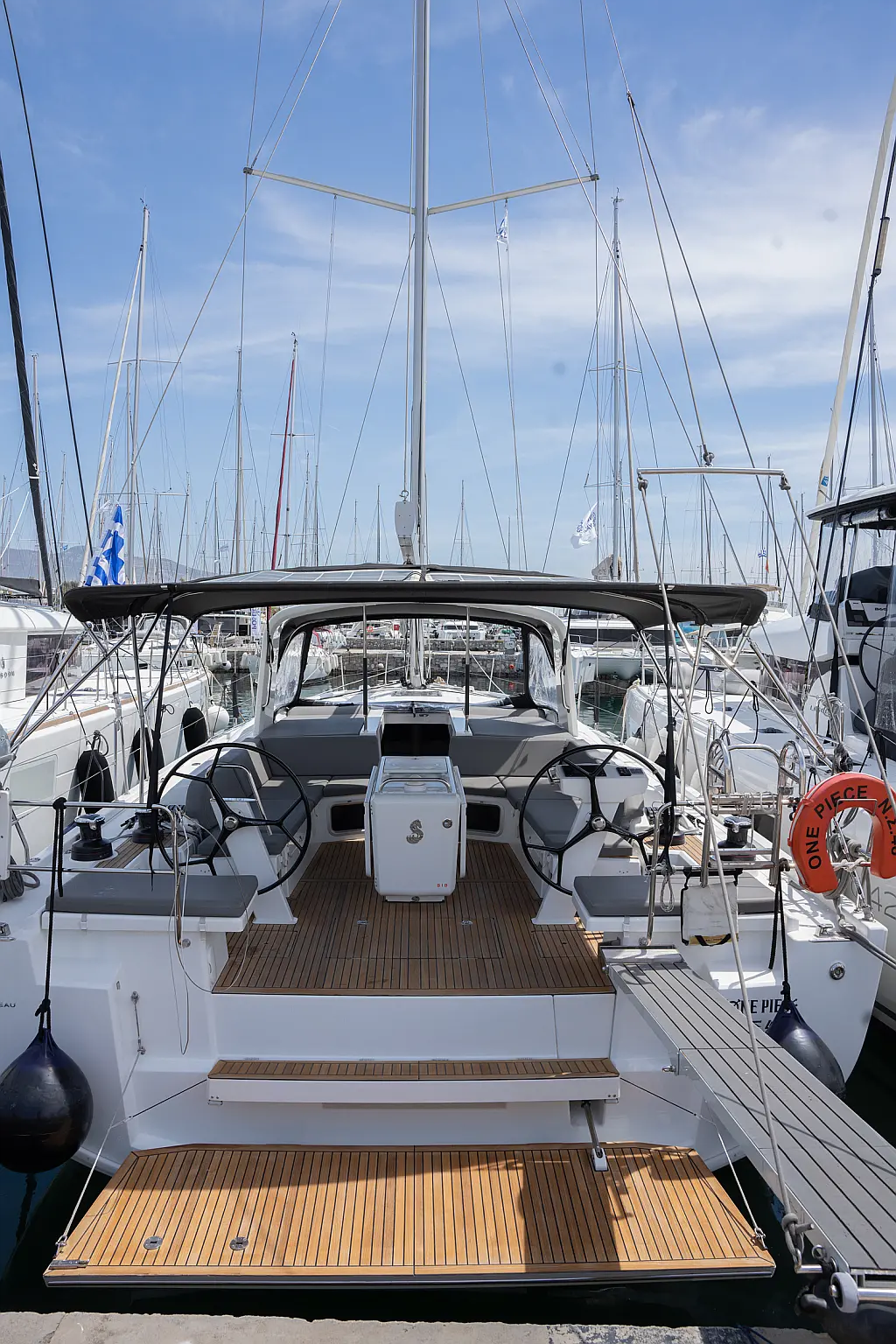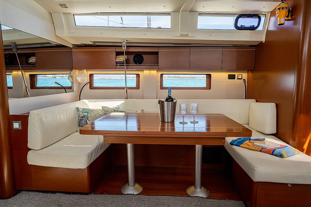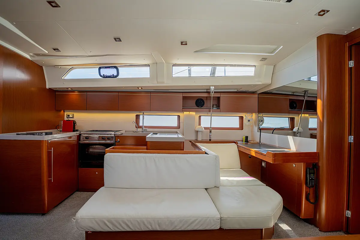 Aire acondicionado, WC eléctrico, Panel Solar, Motor fueraborda, Embarcación auxiliar, Cubierta de teca, Altavoces exteriores, Cockpit cushions