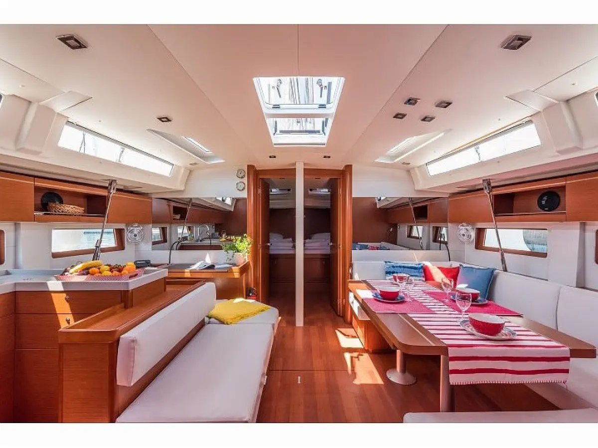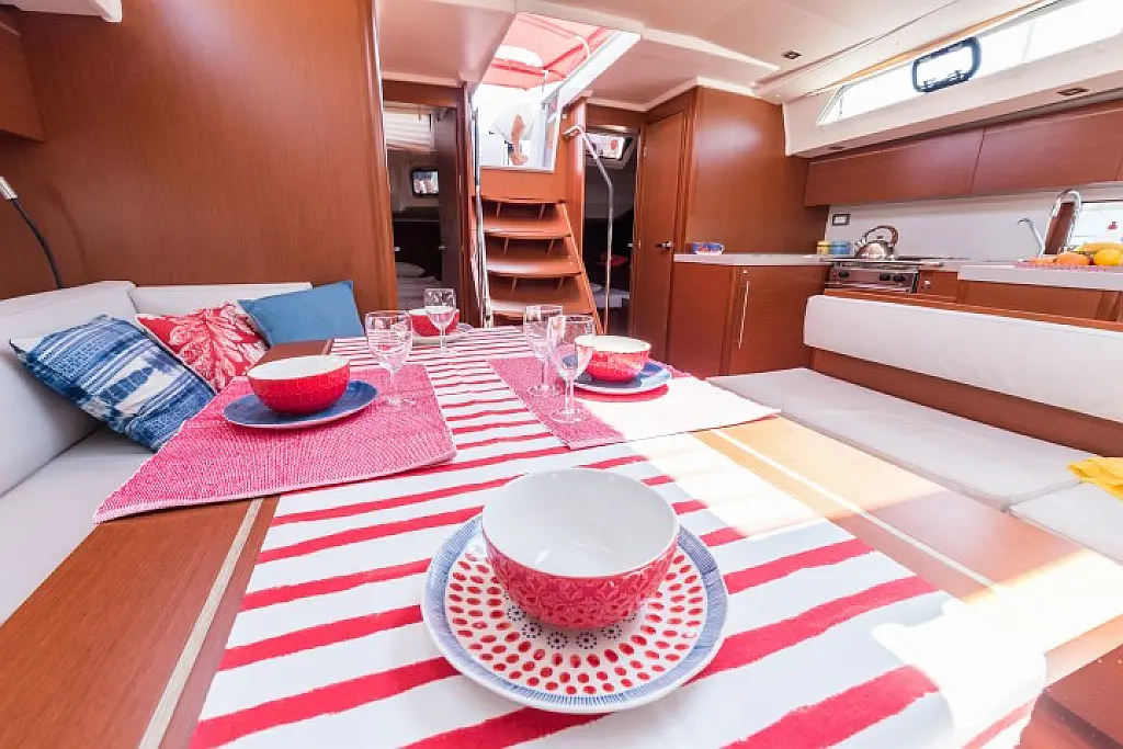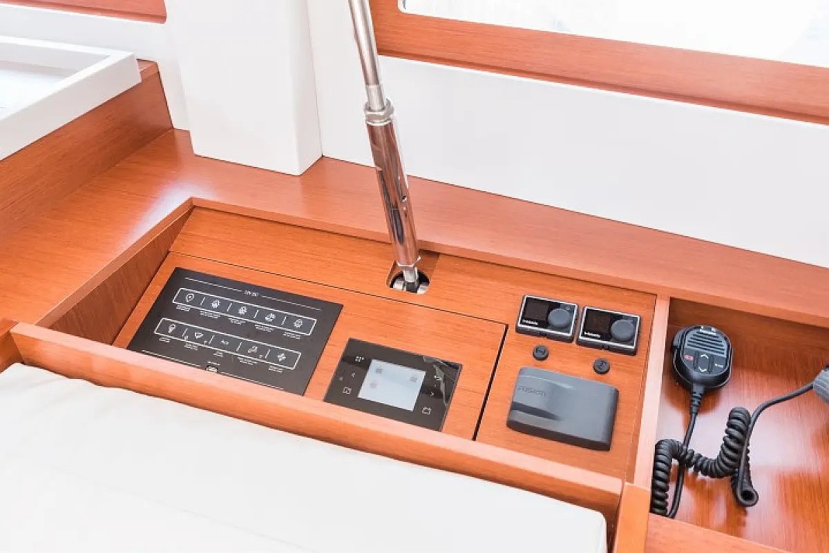 Máquina de hielo, Nevera, Bímini, Capota antirociones, Motor fueraborda, Cafetera, Aire acondicionado, Generador, Teak Cockpit, WC eléctrico, Calefacción, Cockpit cushions