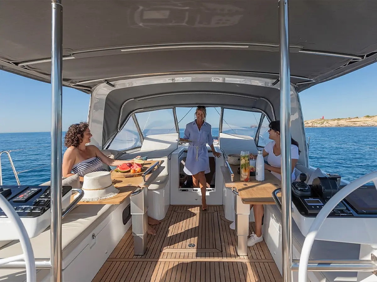 Nevera, Bímini, Cockpit cushions, Capota antirociones, Teak Cockpit, Winches eléctricos, Aire acondicionado, Generador, Convertidor, Embarcación auxiliar, Motor fueraborda