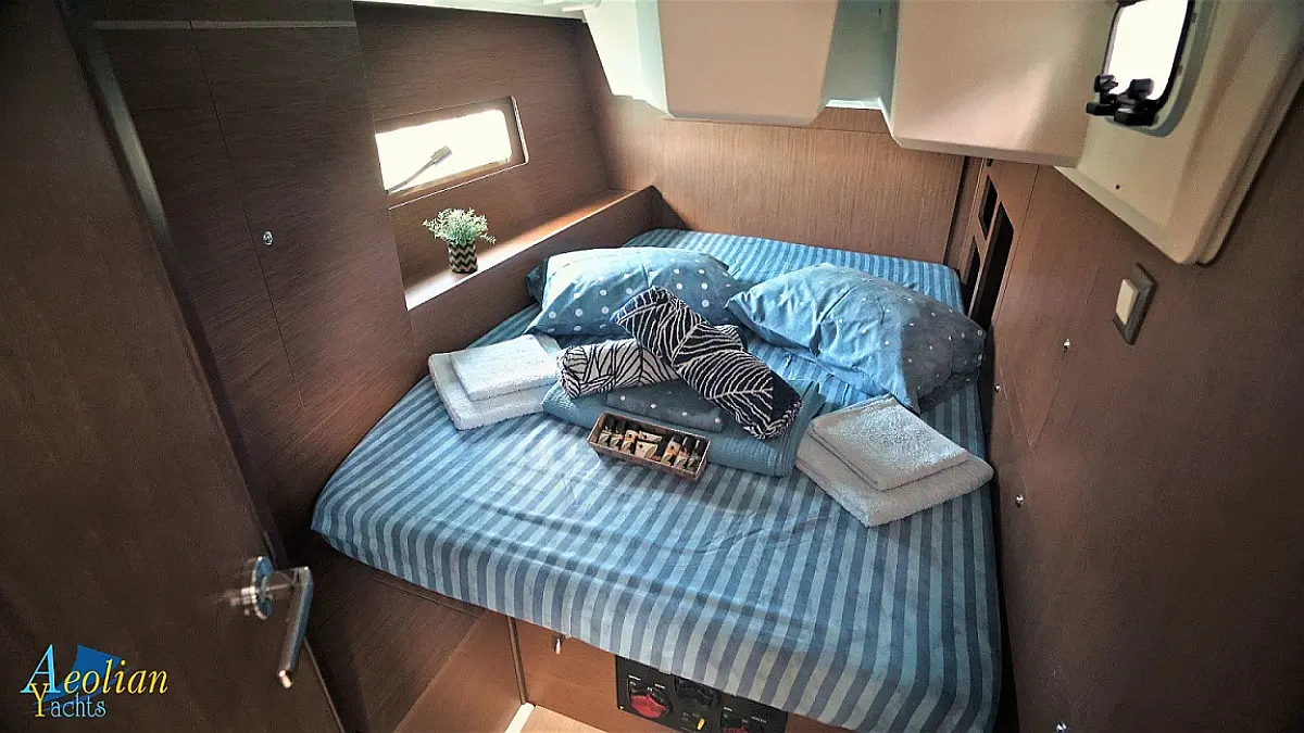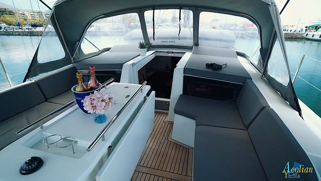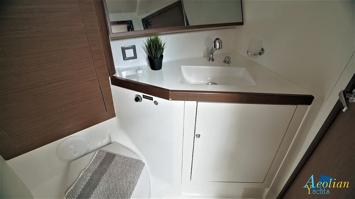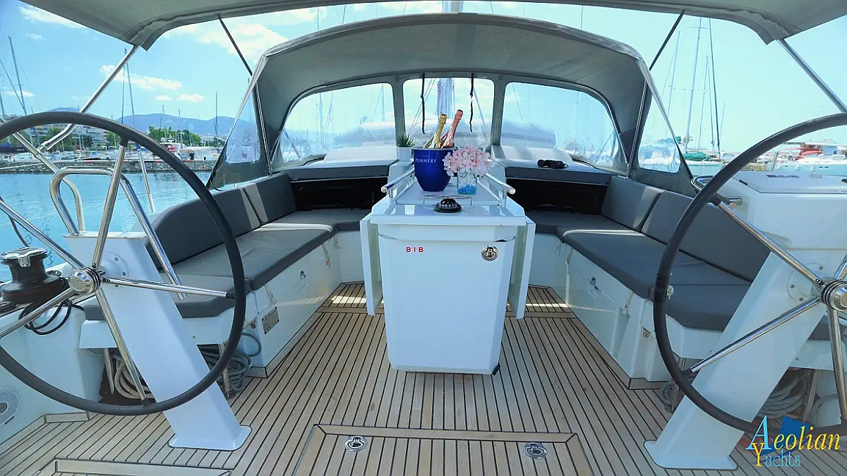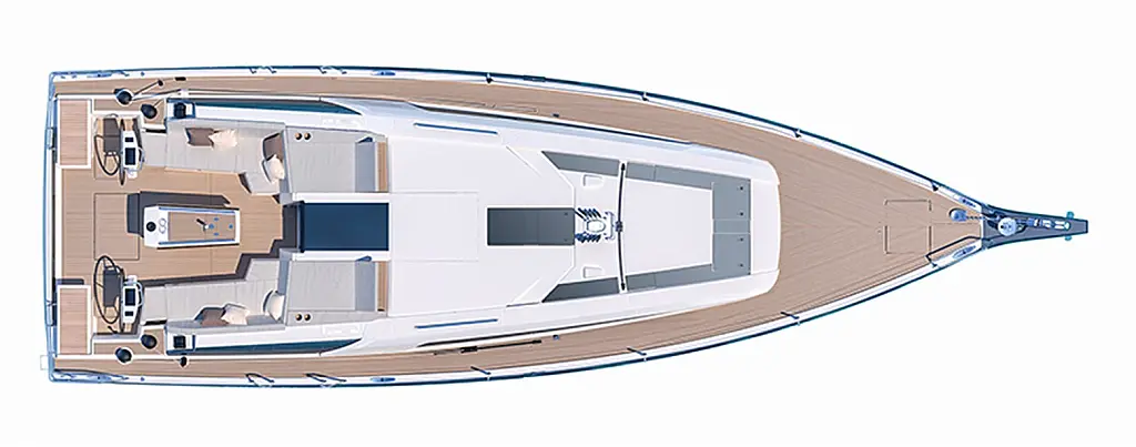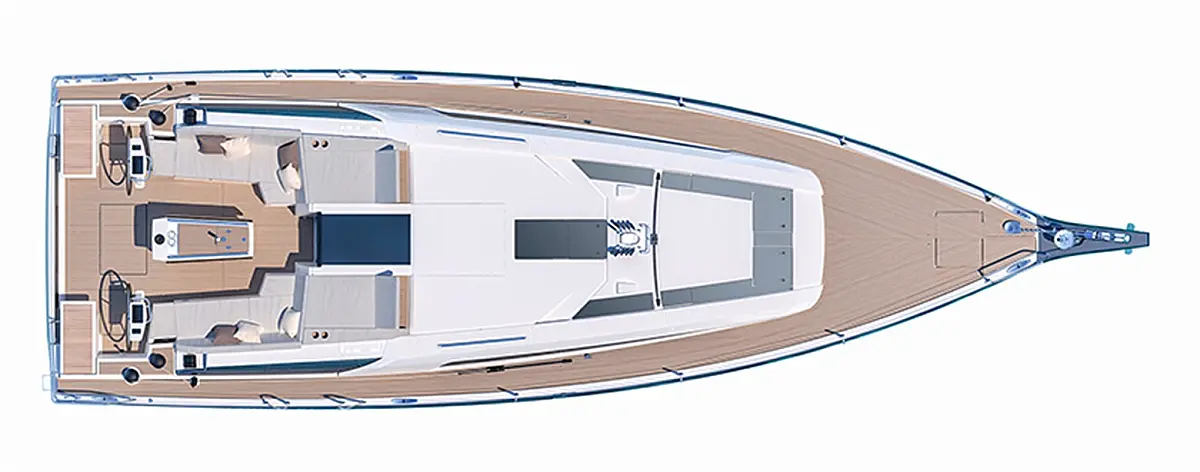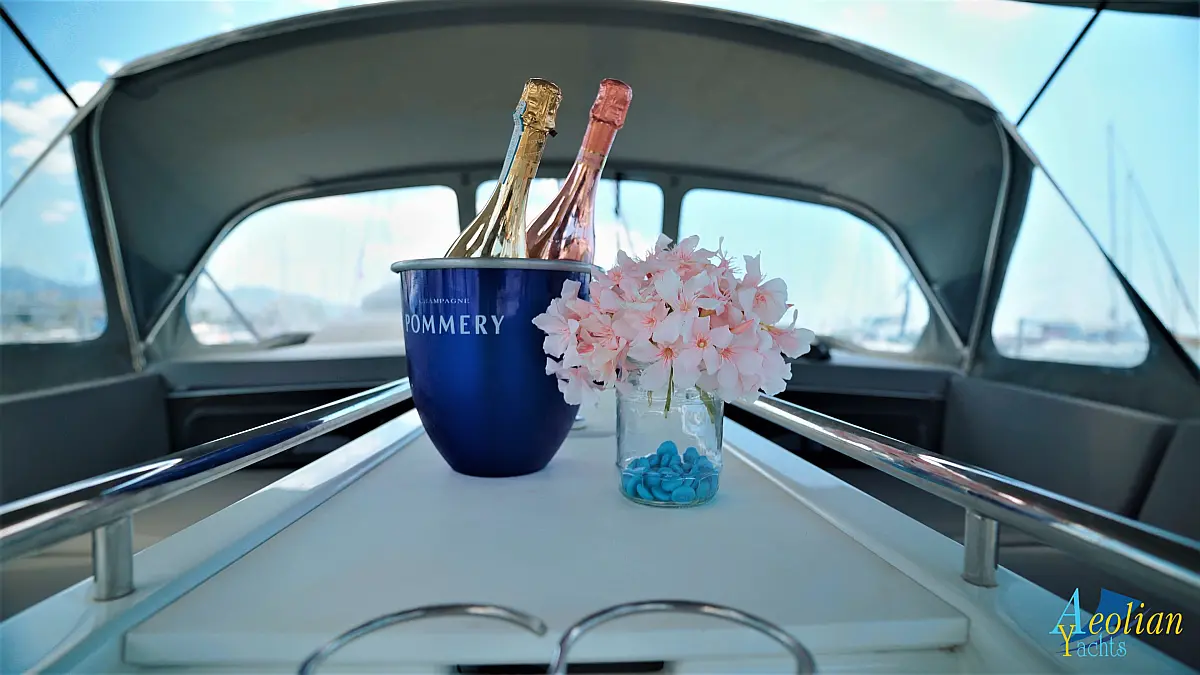 Nevera, Máquina de hielo, Desalinizadora, Altavoces exteriores, WC eléctrico, Cafetera, Embarcación auxiliar, Teak Cockpit, Winches eléctricos, Capota antirociones, Aire acondicionado, Generador