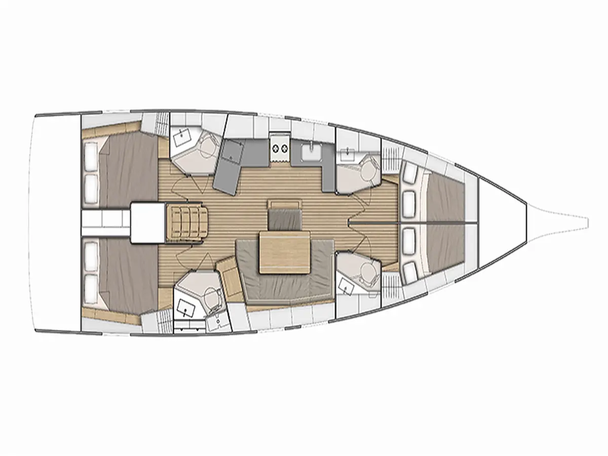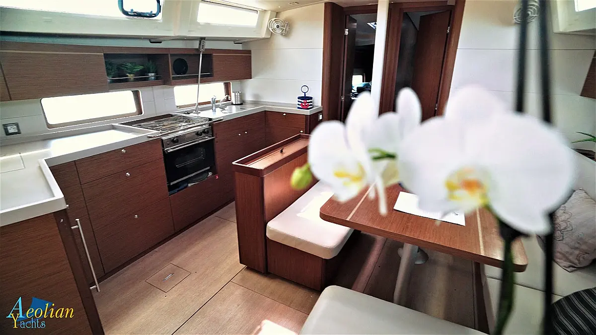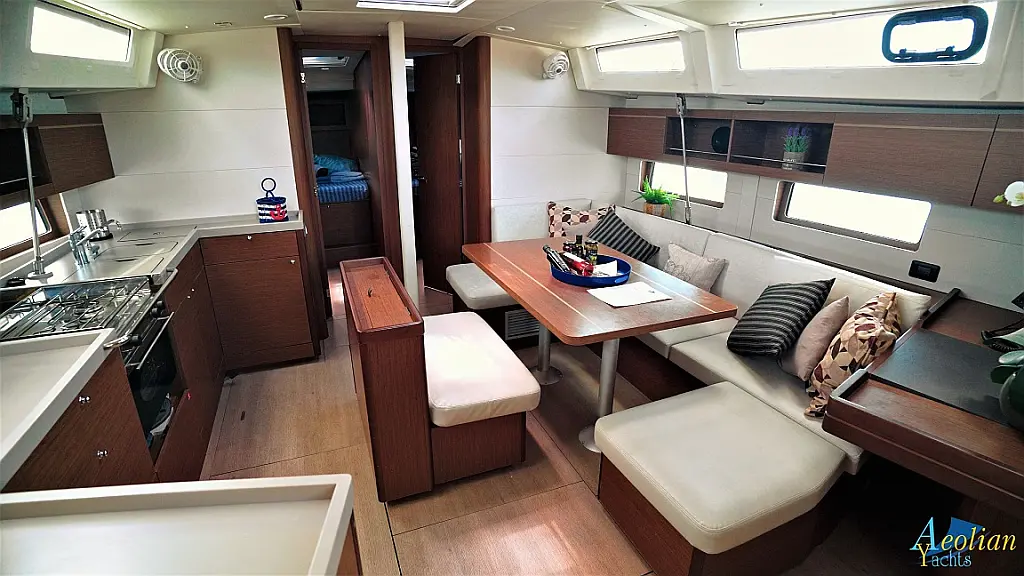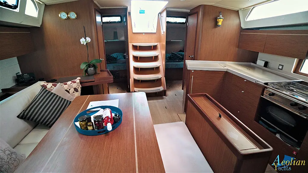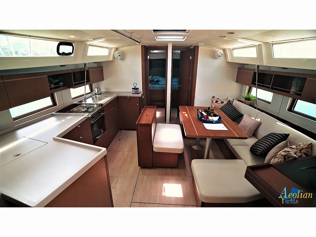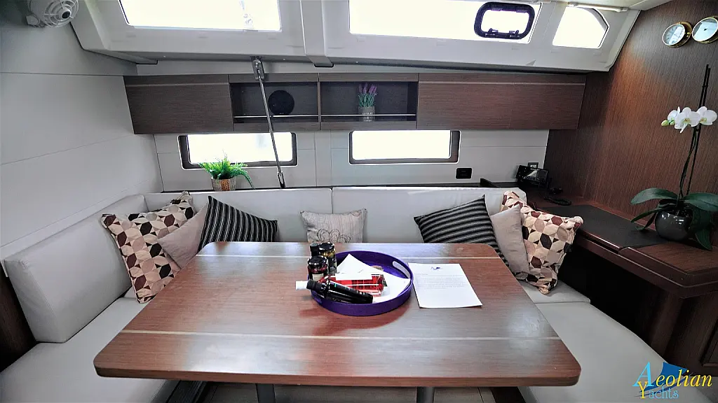 Nevera, Máquina de hielo, Desalinizadora, Altavoces exteriores, WC eléctrico, Cafetera, Embarcación auxiliar, Teak Cockpit, Winches eléctricos, Capota antirociones, Aire acondicionado, Generador