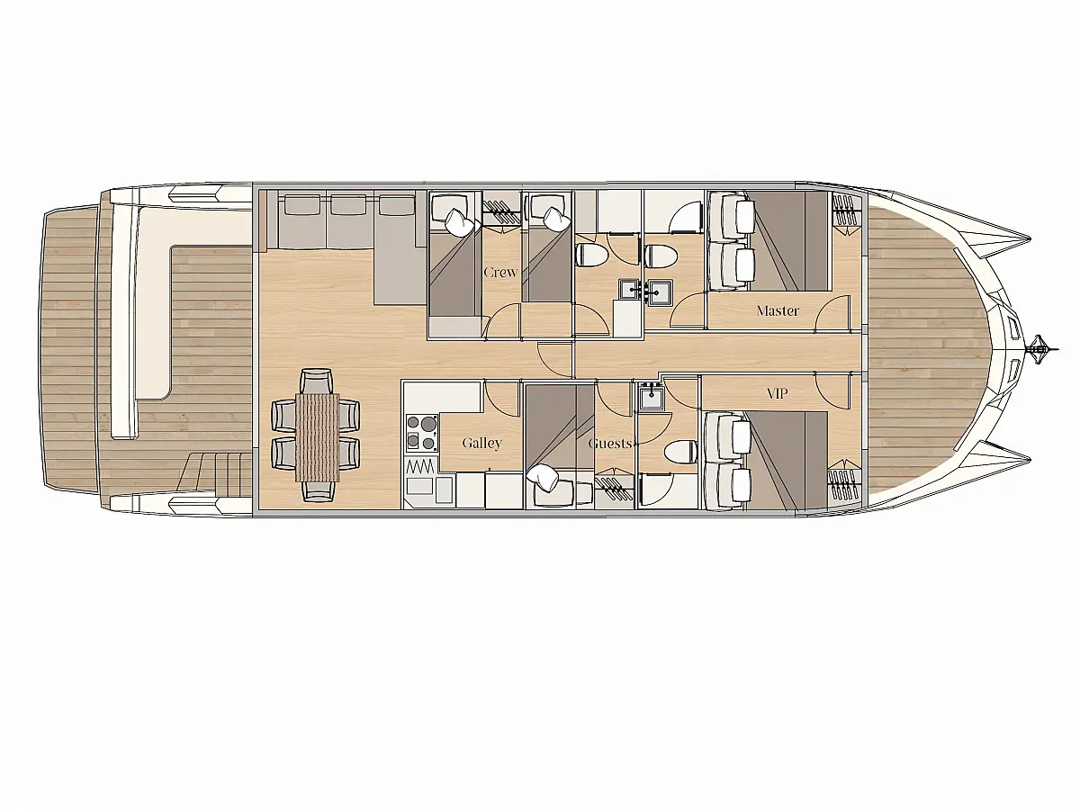 Bímini, Generador, Convertidor, Parrilla en carlinga, Wi-Fi e Internet, Aire acondicionado, Cockpit cushions, Altavoces exteriores, Cafetera, Pasarela hidráulica, Embarcación auxiliar, Panel Solar, Desalinizadora, Plataforma de baño