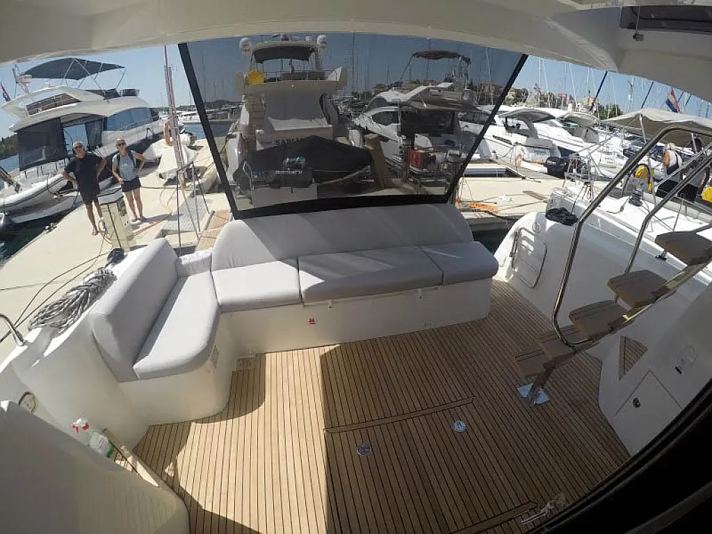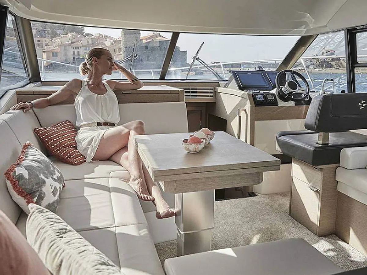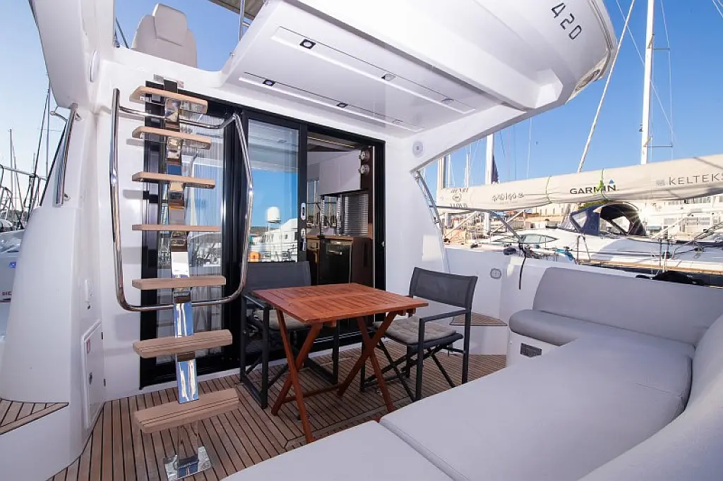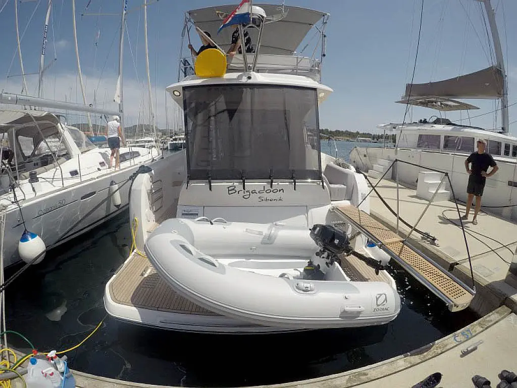 Generador, Calefacción, Aire acondicionado, Cockpit cushions, Motor fueraborda, Embarcación auxiliar, Pasarela hidráulica, Flybridge, Wi-Fi e Internet