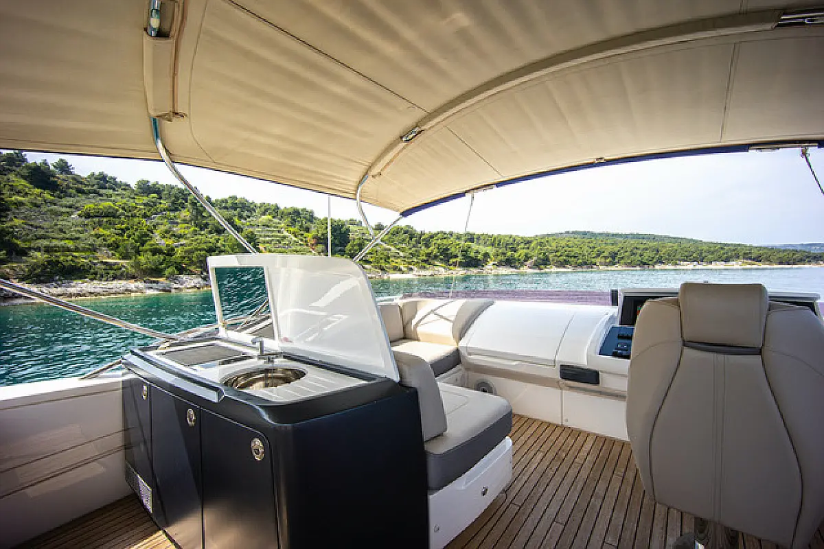 Convertidor, Máquina de hielo, WC eléctrico, Cafetera, Nevera, Desalinizadora, Calefacción, Aire acondicionado, Generador, Motor fueraborda, Pasarela hidráulica